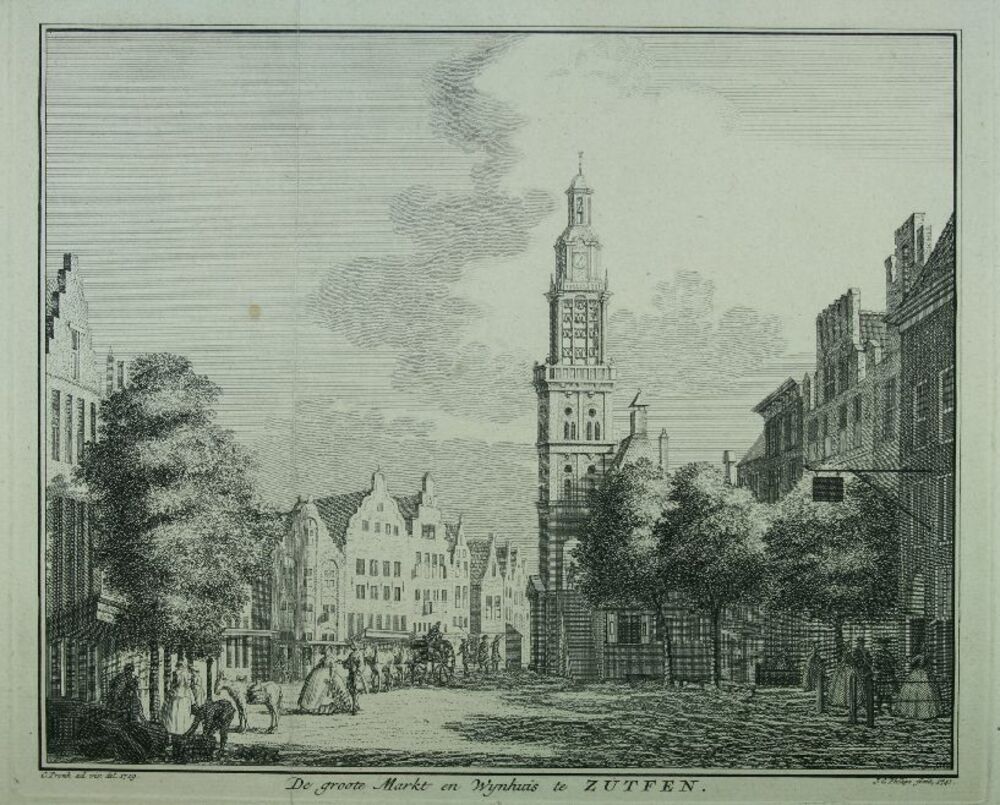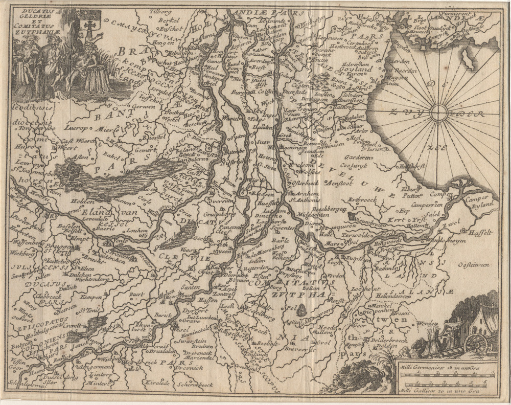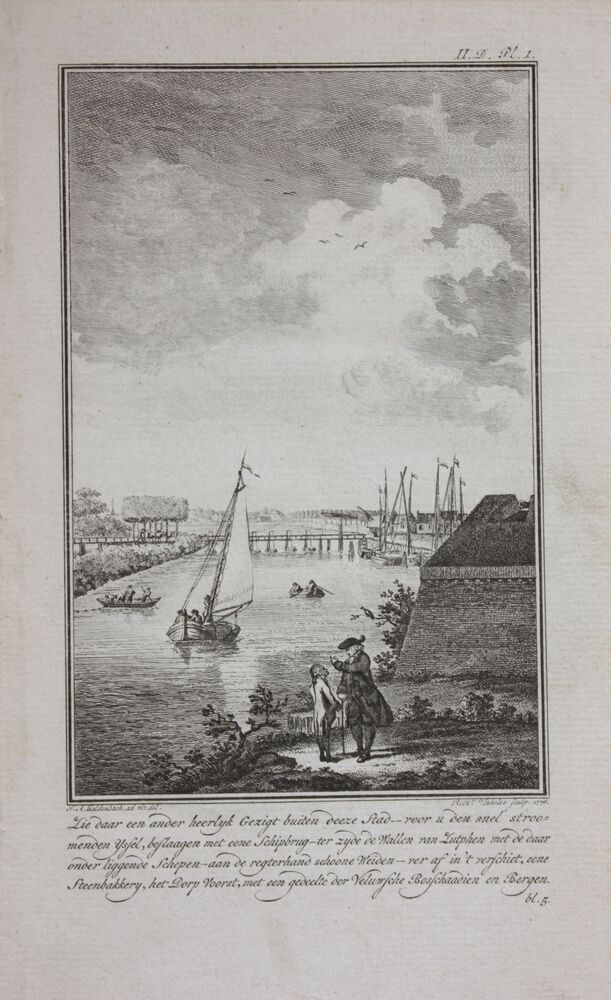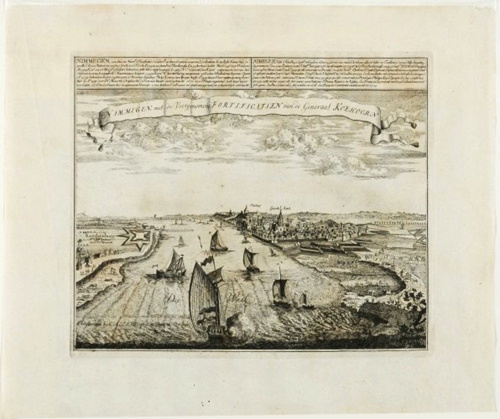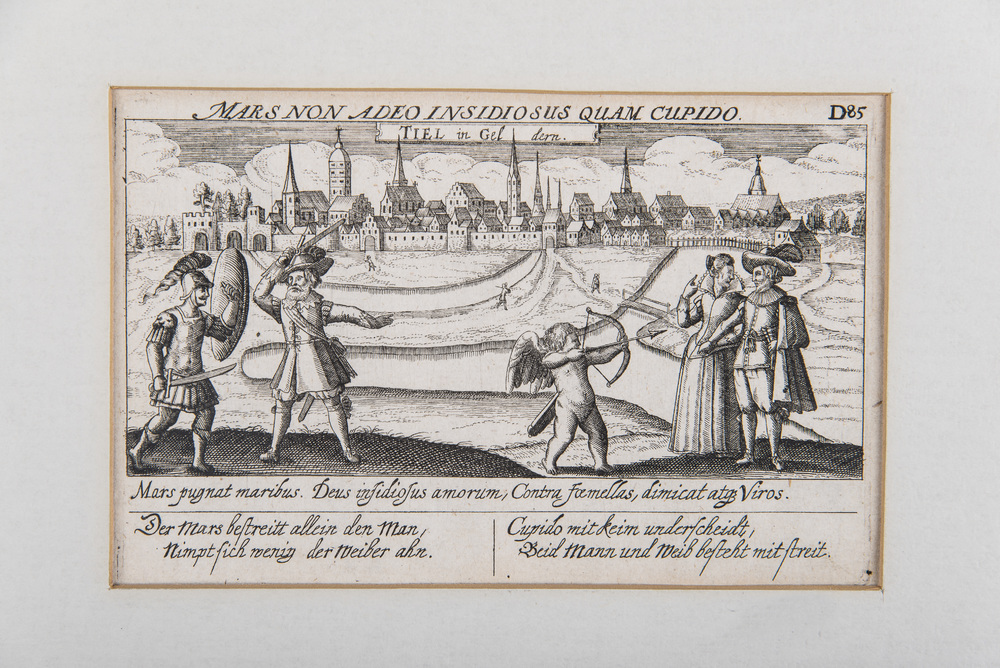 Gravure, voorstellende een gezicht op Tiel met zinne...