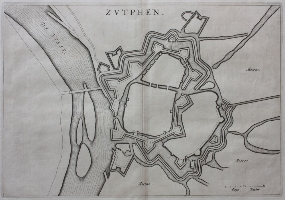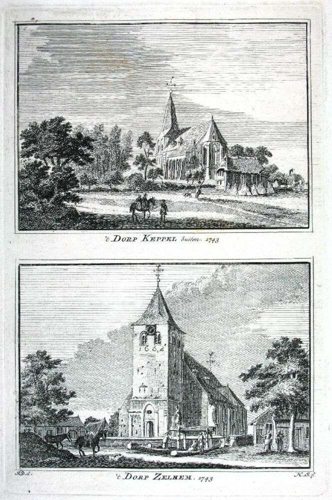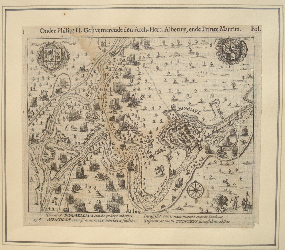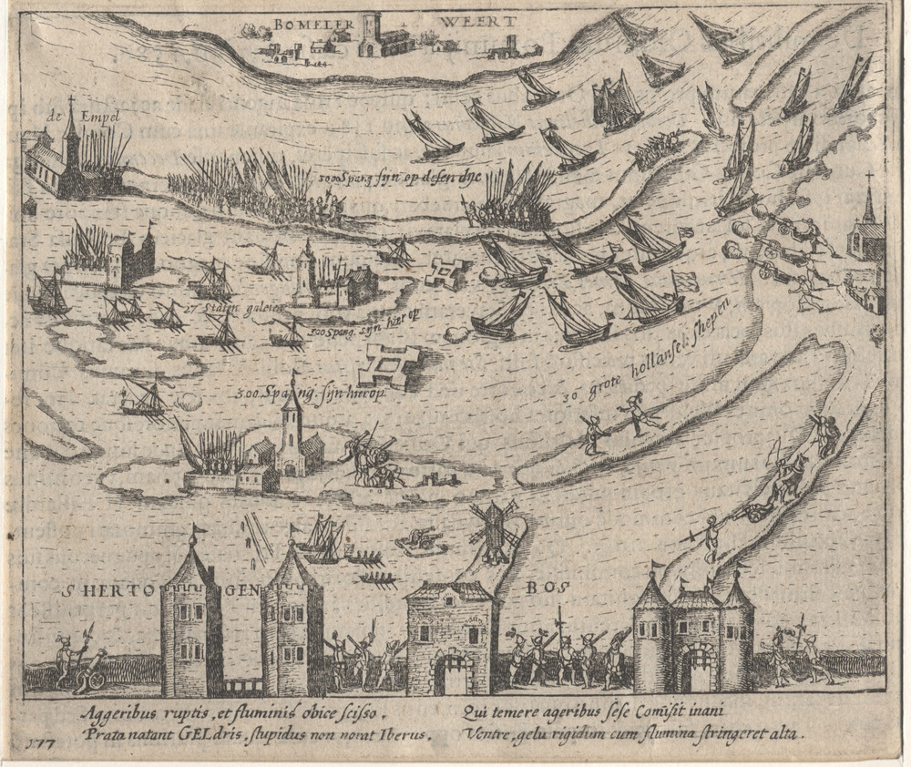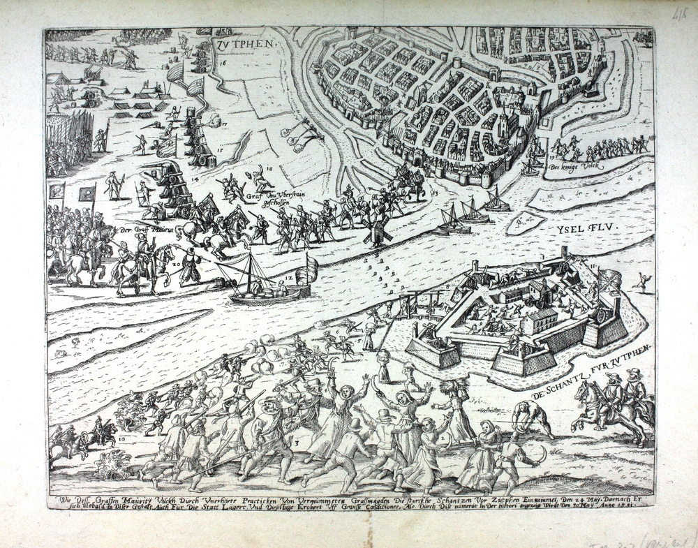 Gravure, voorstellende een gezicht op Tiel met zinne...