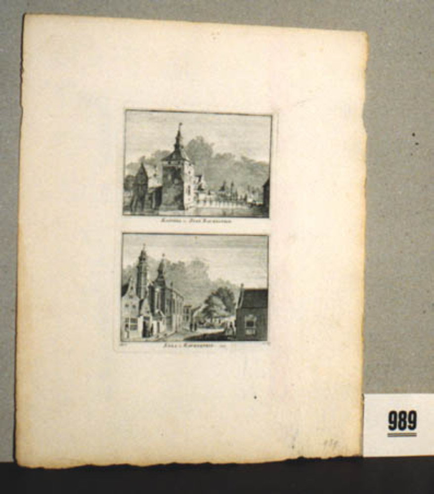 Gravure "Kasteel en Stad Ravenstein. Kerk te Ravenst...