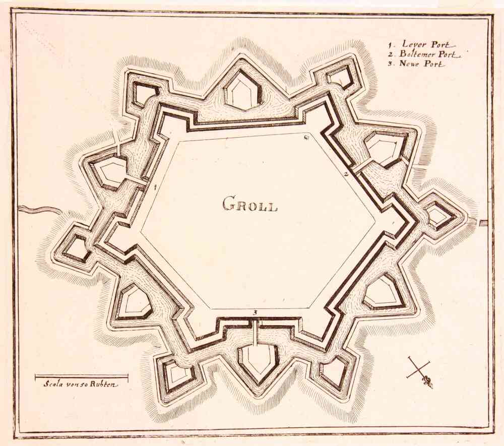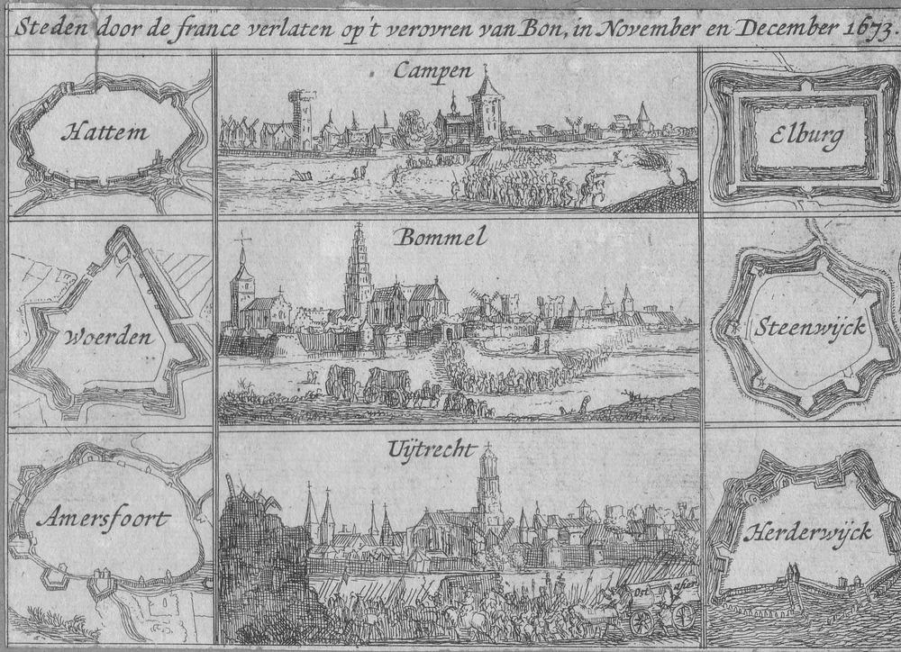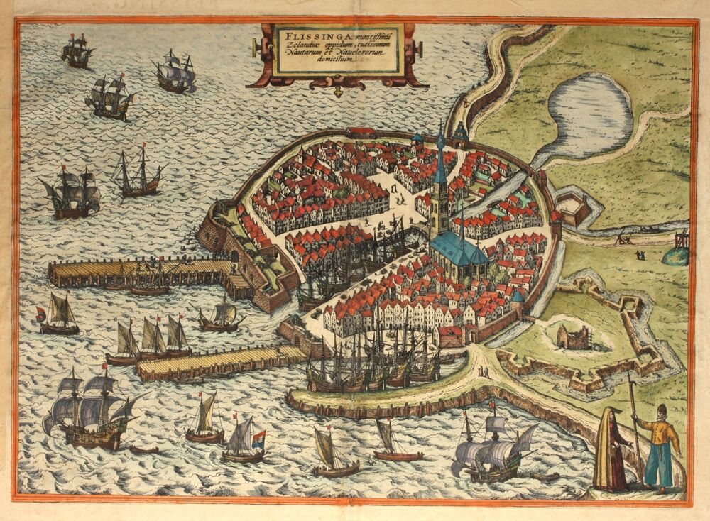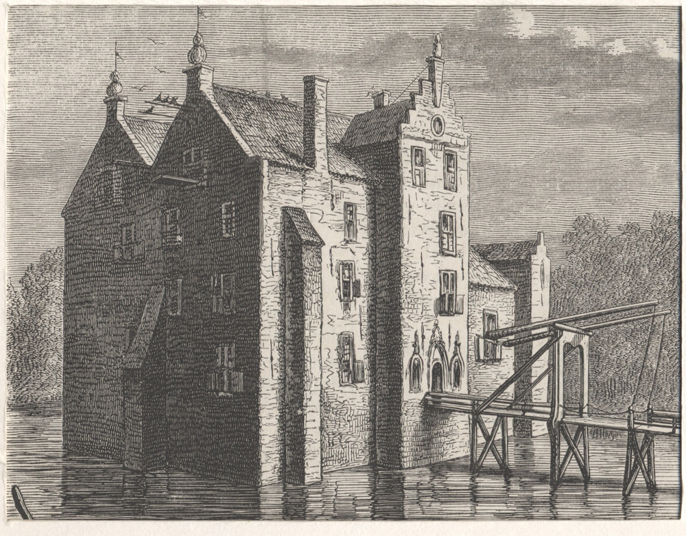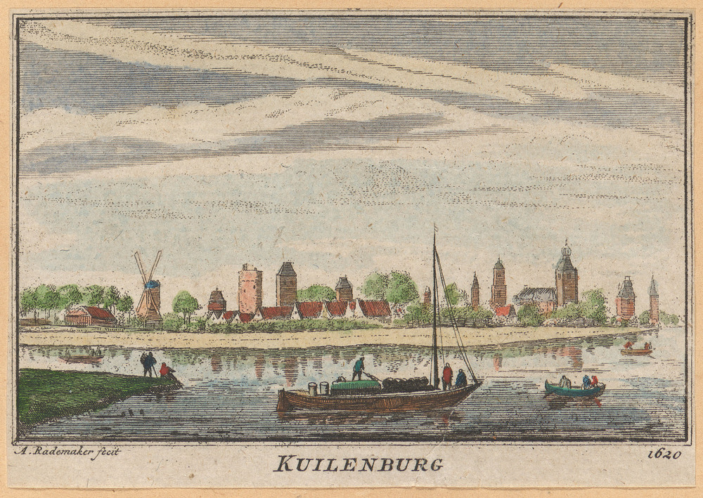 Ingekleurde gravure, voorstellende gezicht op Culemb...