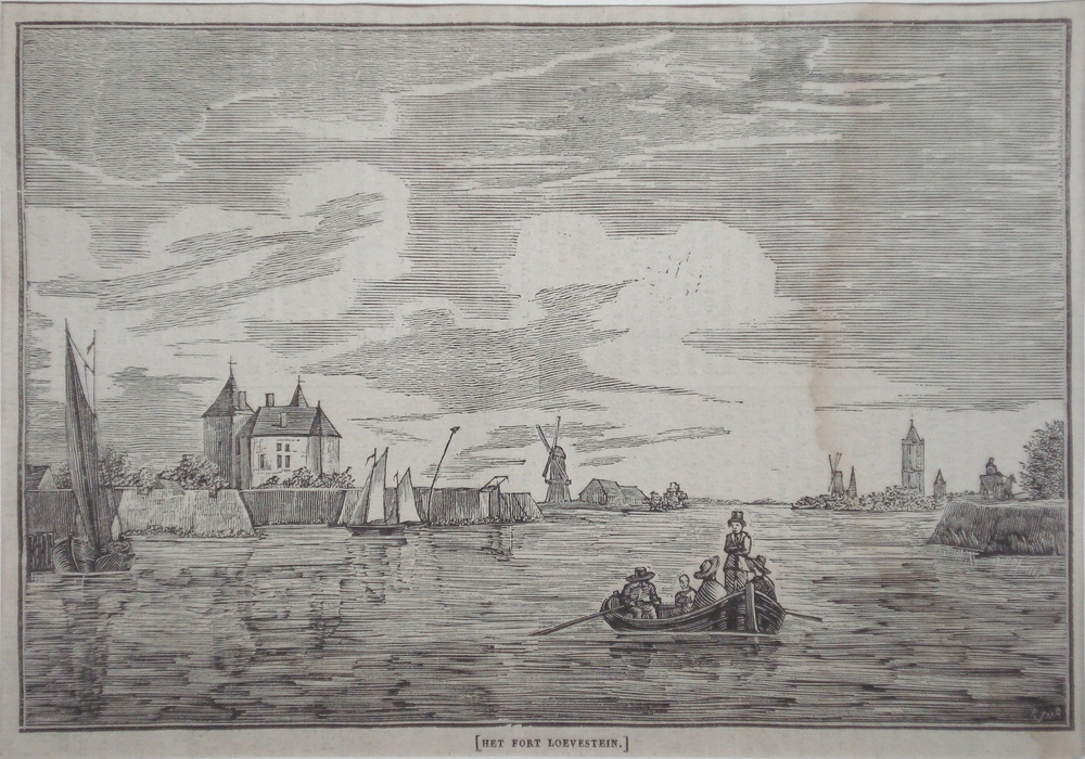 Gezicht op het fort Loevestein vanaf de rivier. Hout...