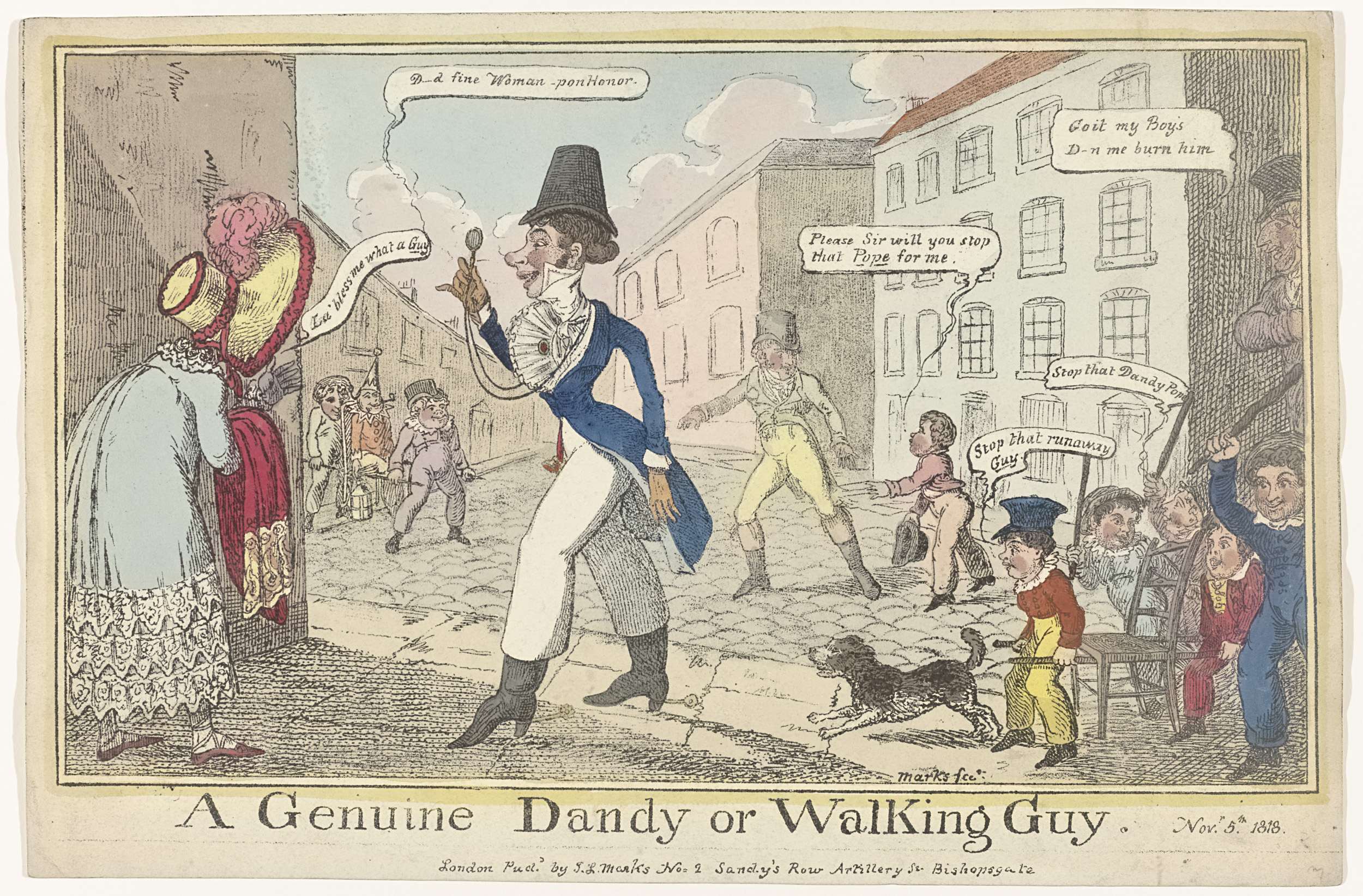 Spotprent op de dandy op Guy Fawkes Day