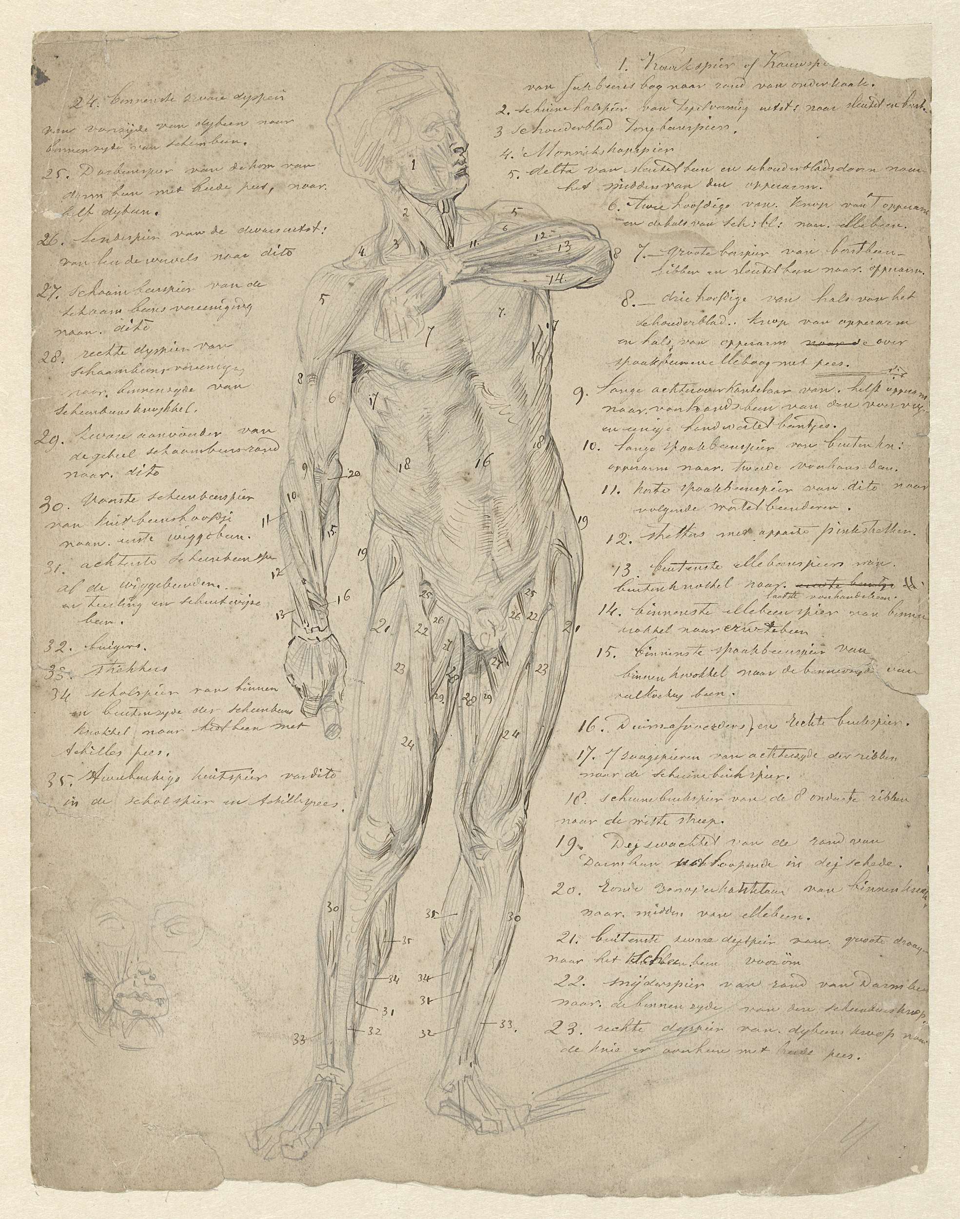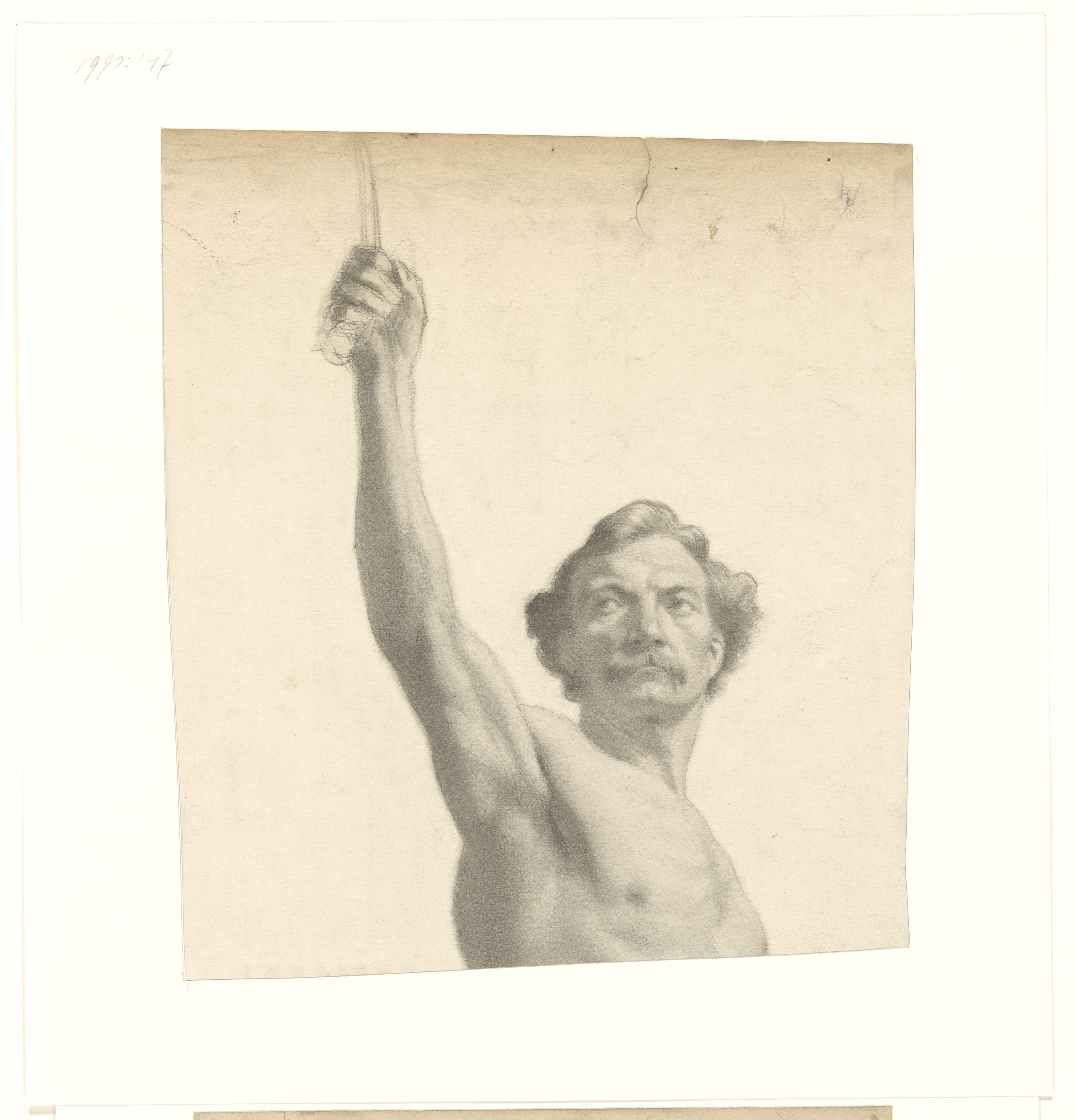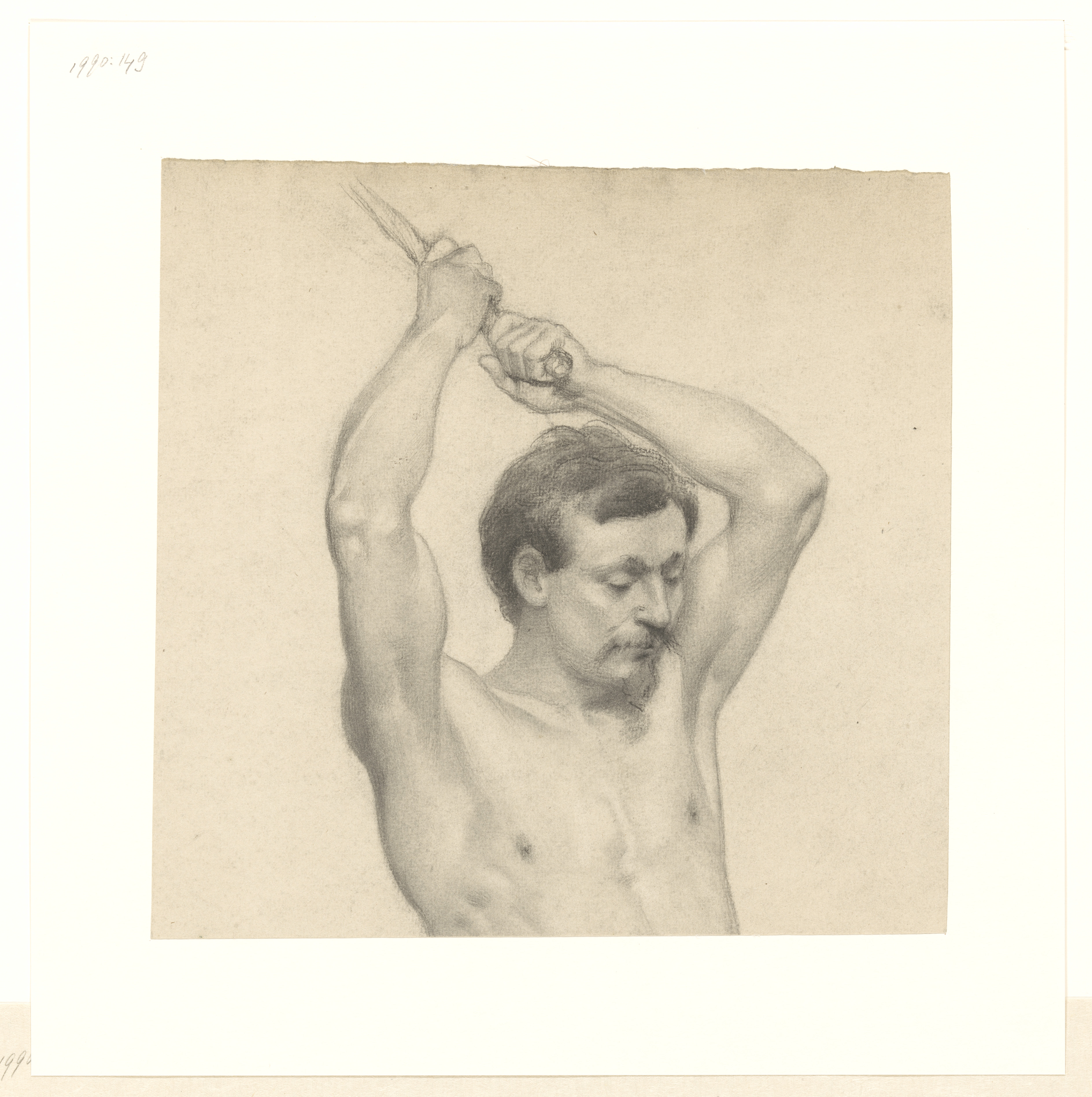 Buste van mannelijk naakt met opgeheven rechterarm