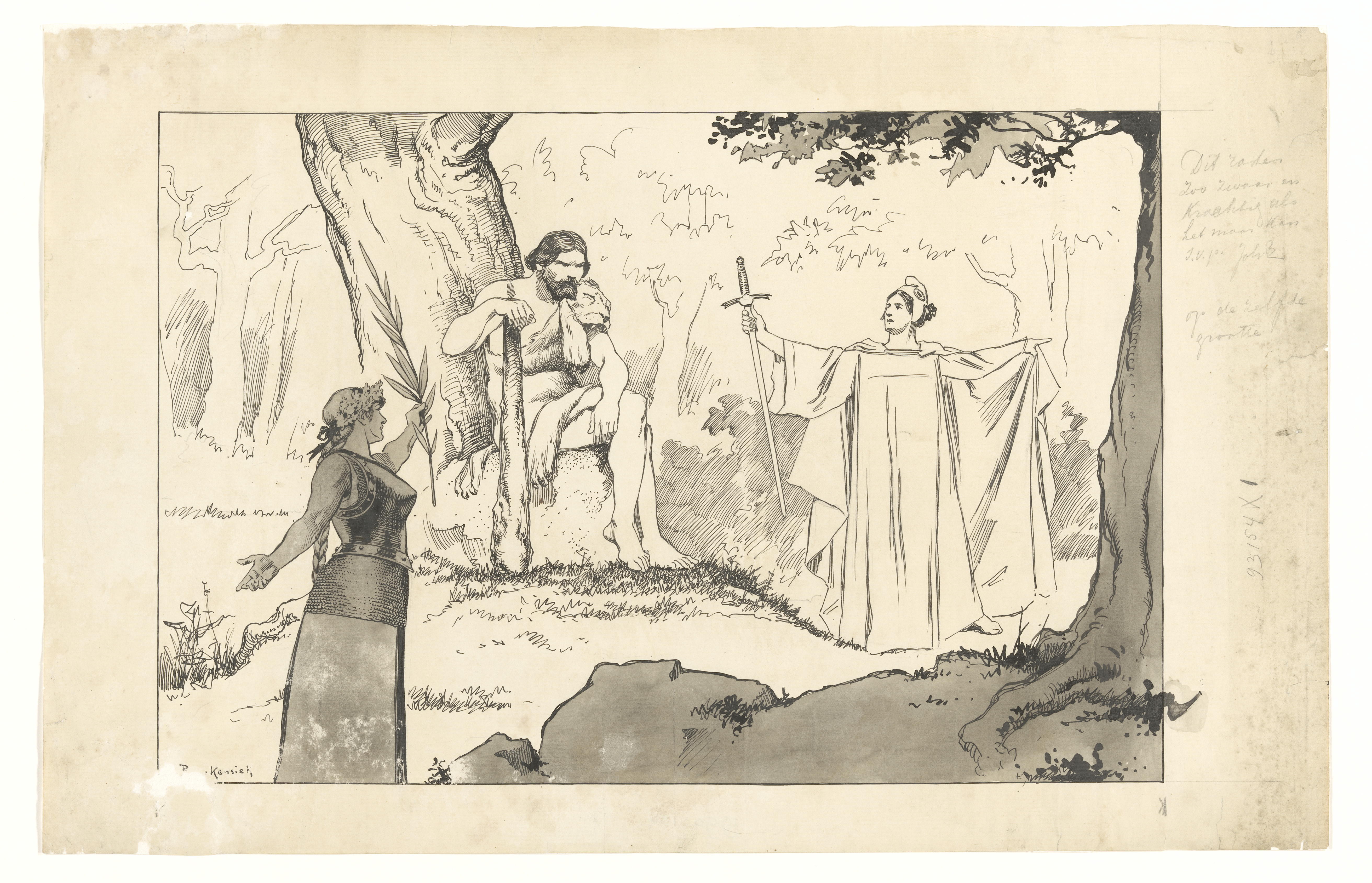 Ontwerp voor illustratie in De Amsterdammer: Hercule...