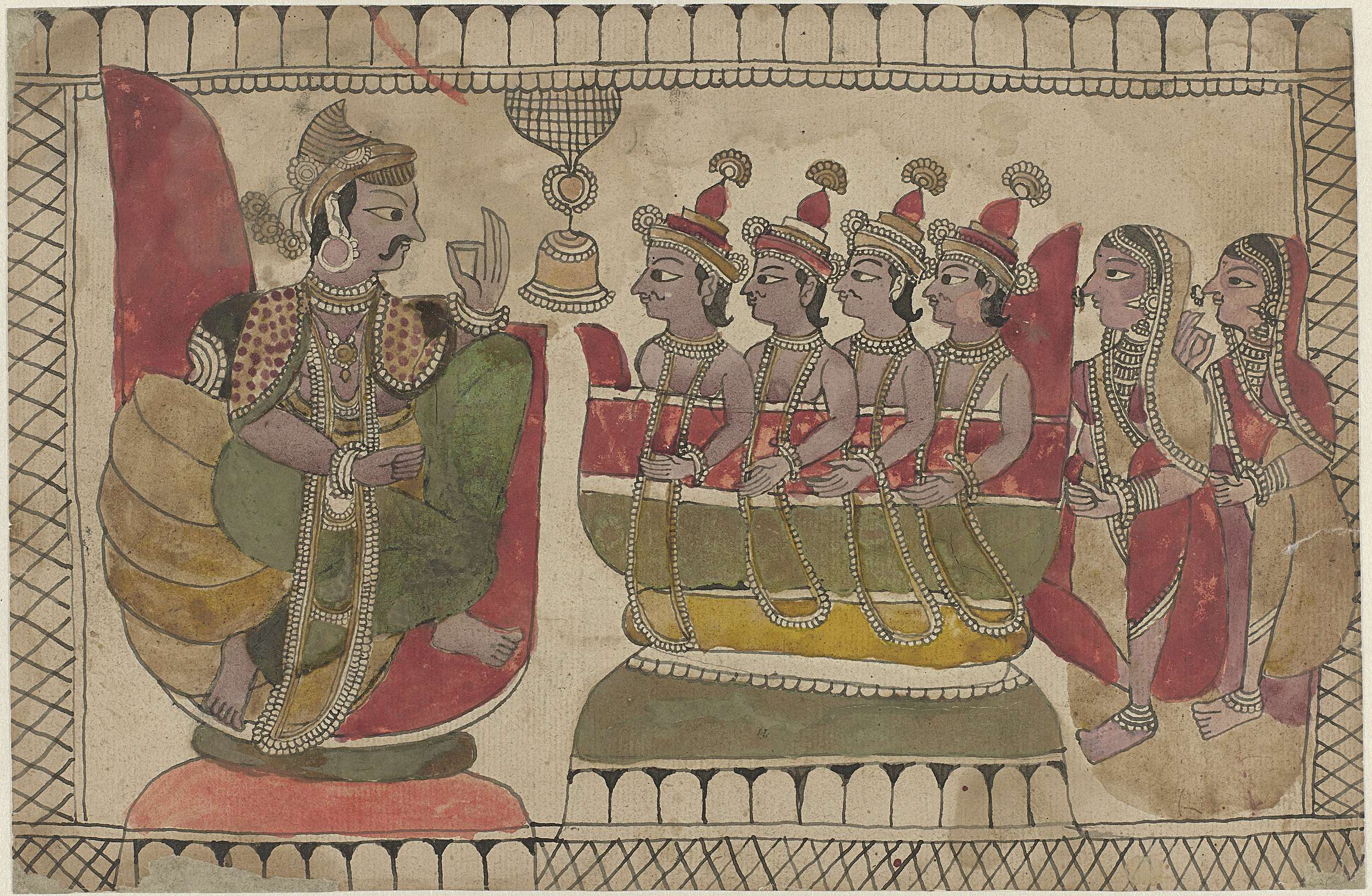 Staande en zittende figuren rond een kampvuur