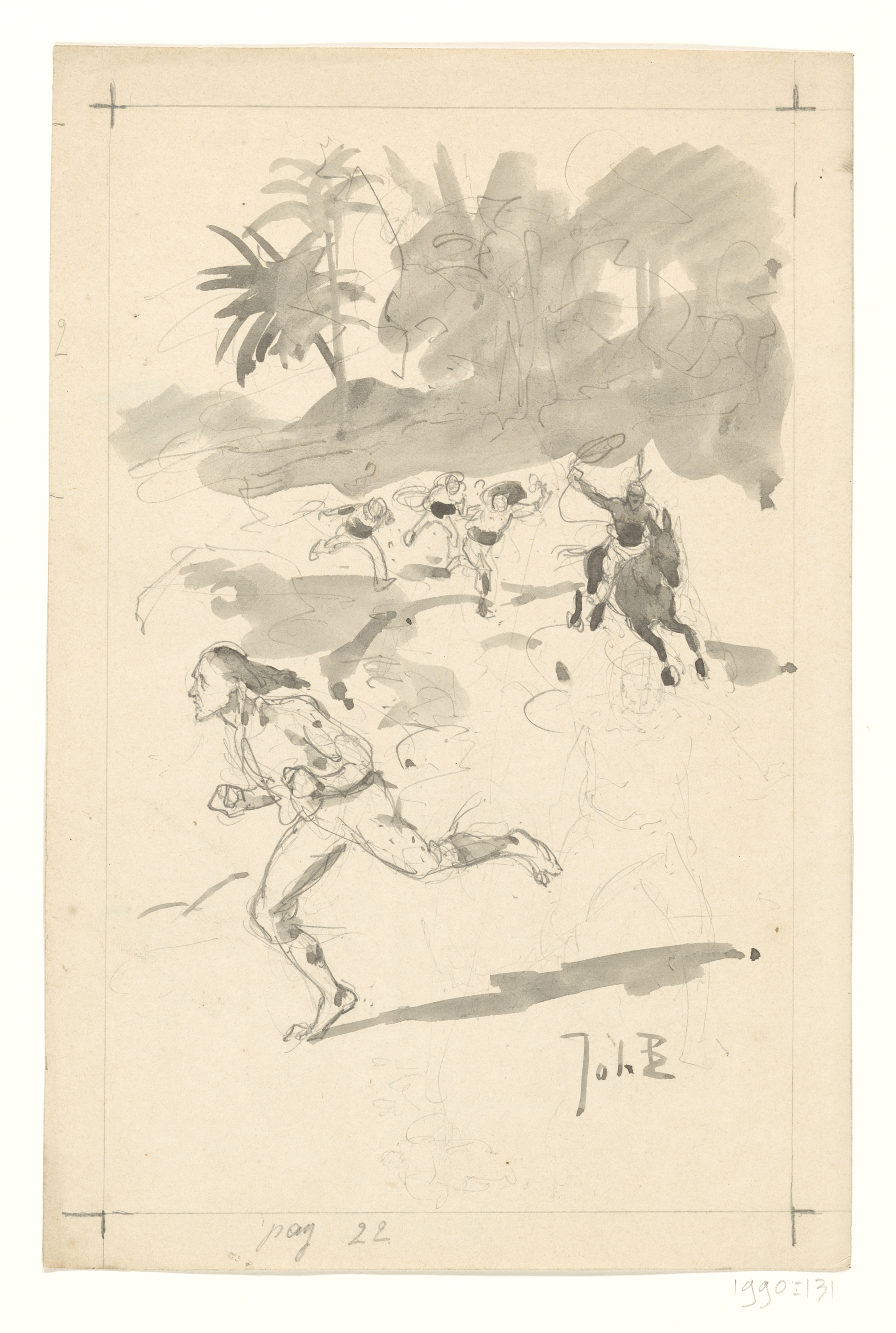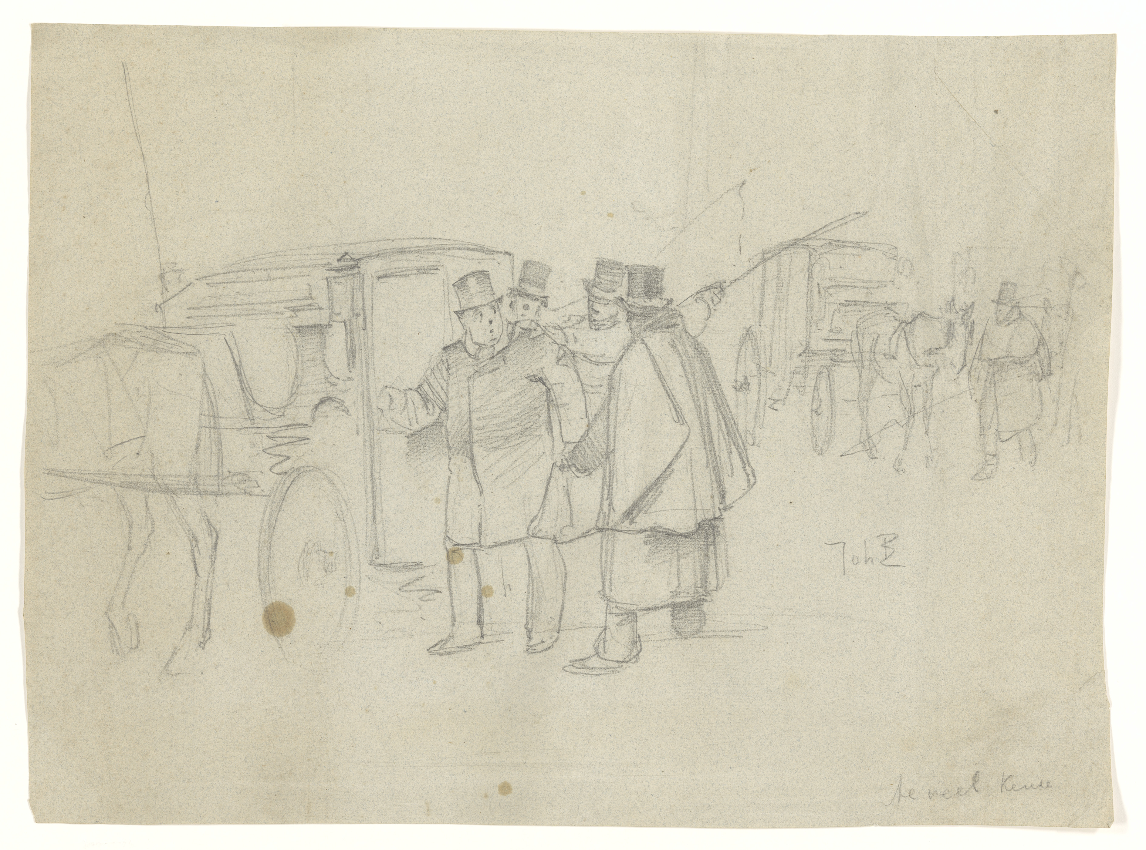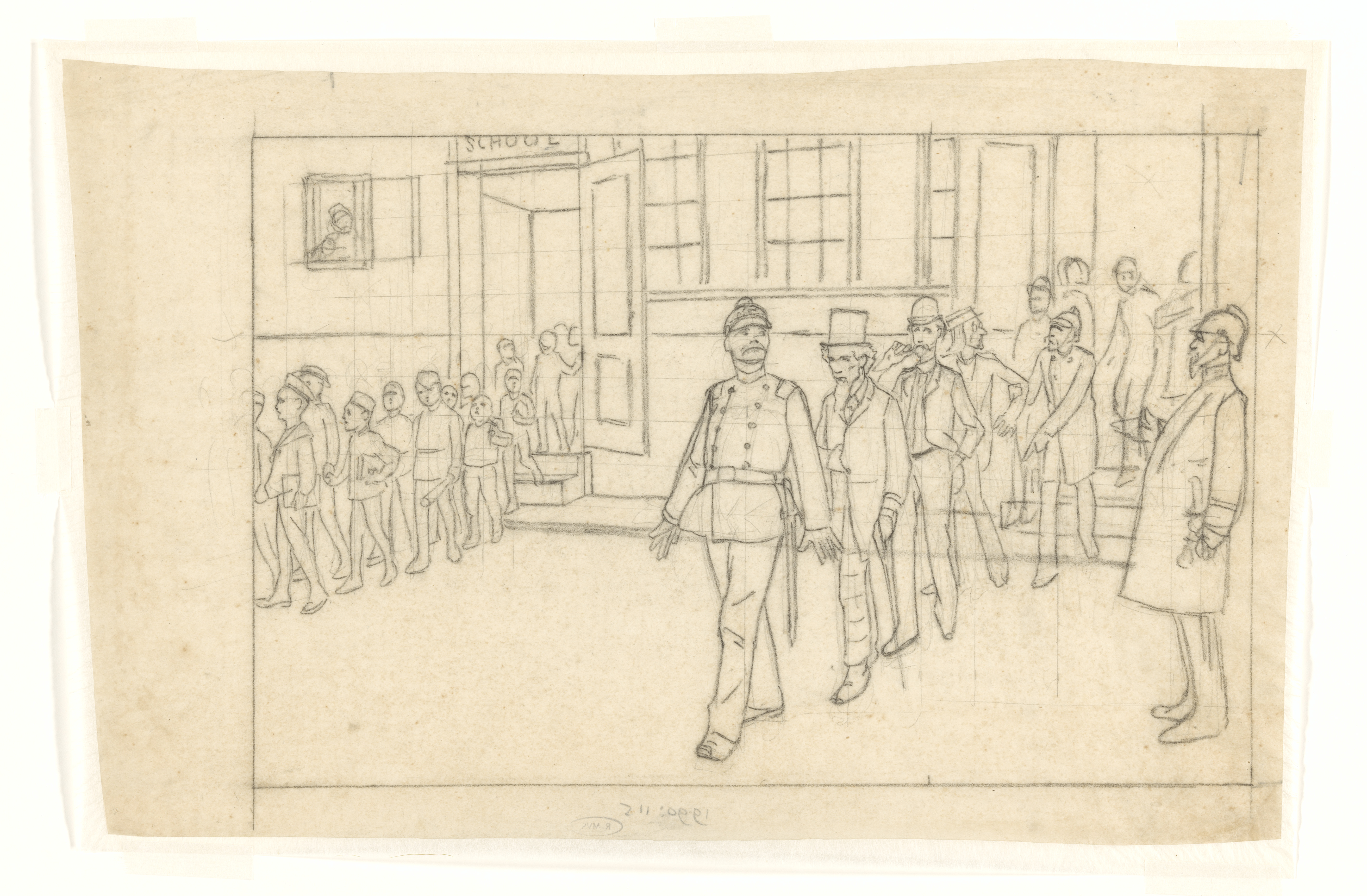Ontwerp voor illustratie in De Amsterdammer: drommen...