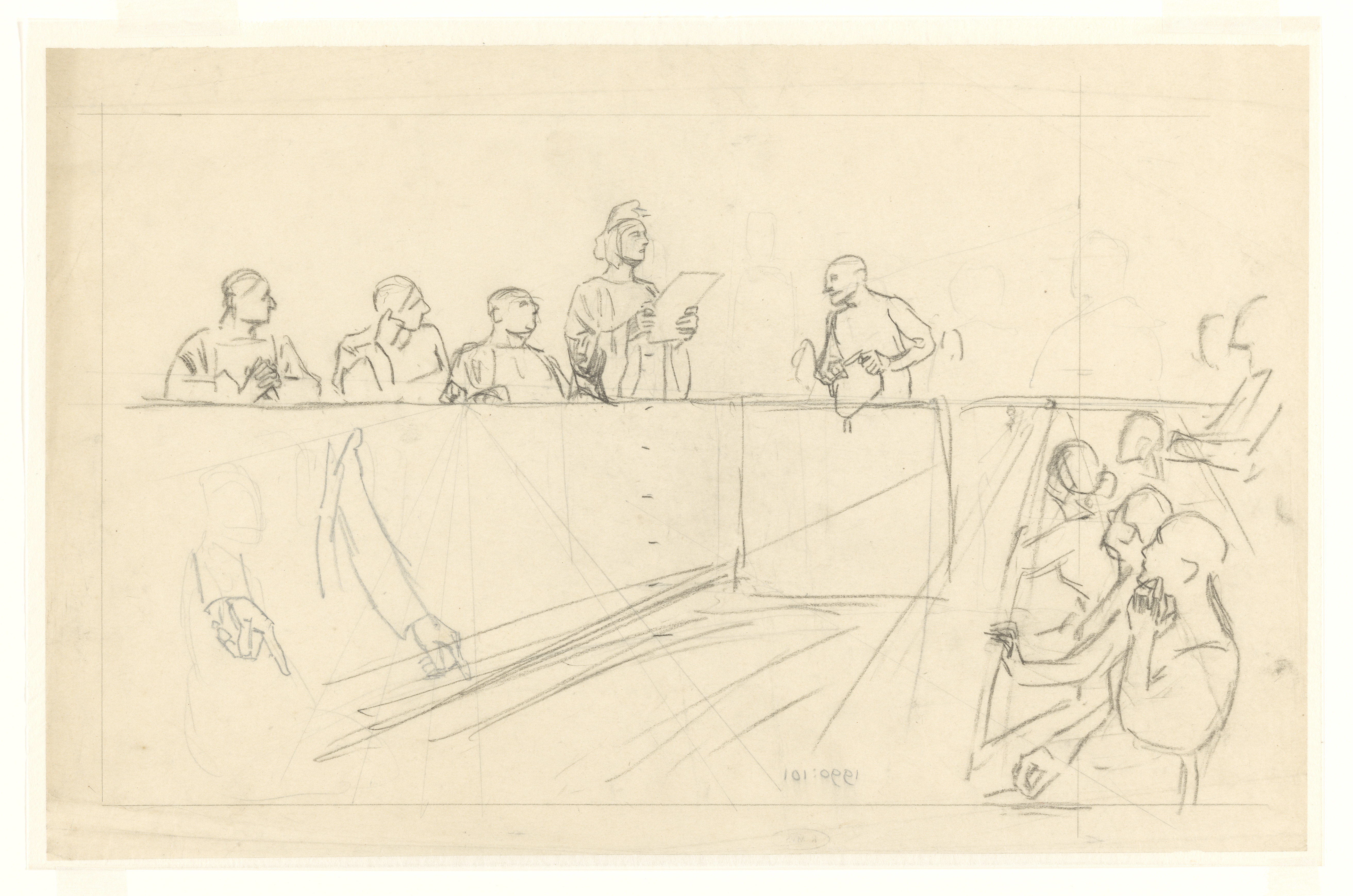 Ontwerp voor illustratie in De Amsterdammer: vier vr...