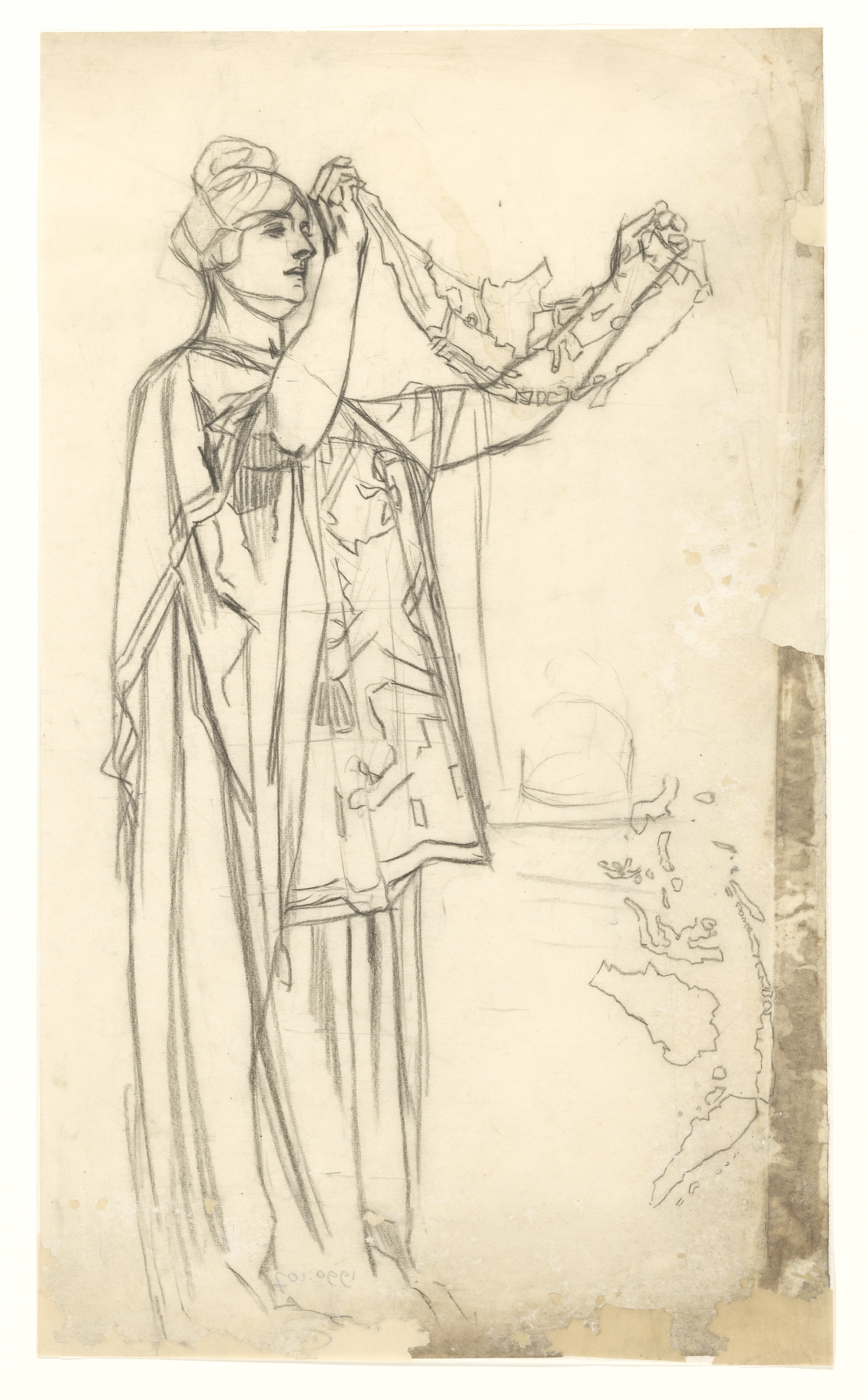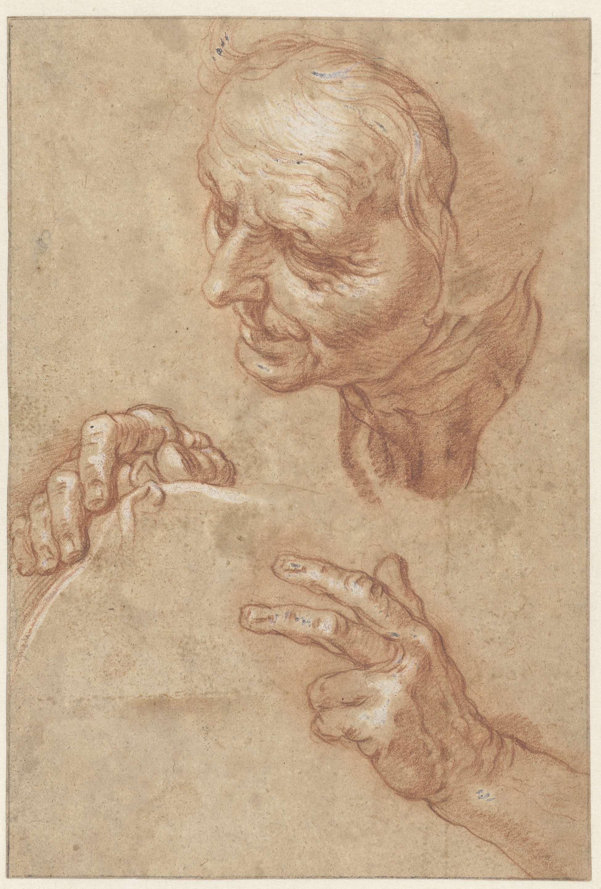 Studieblad met het hoofd van een oude vrouw en twee ...