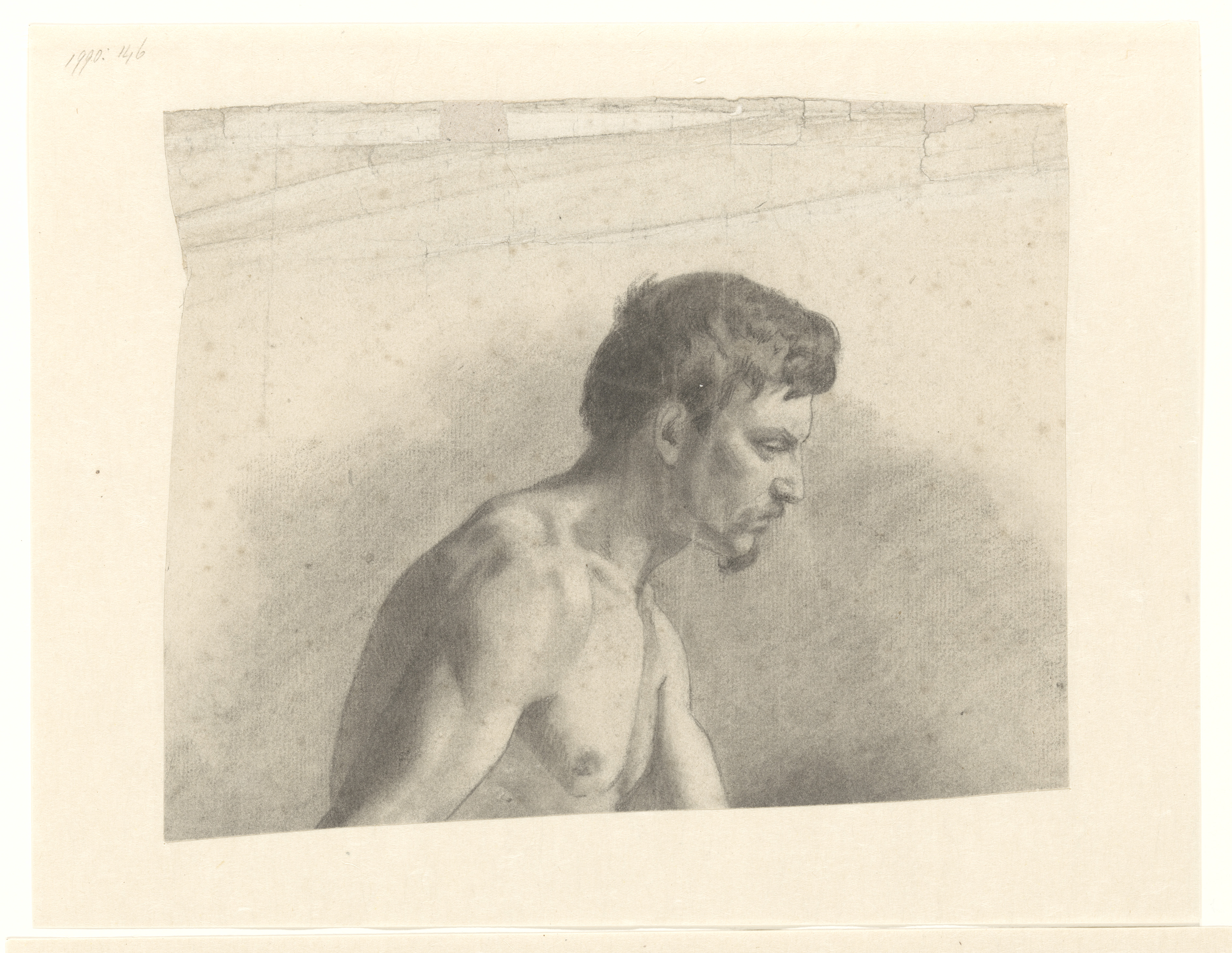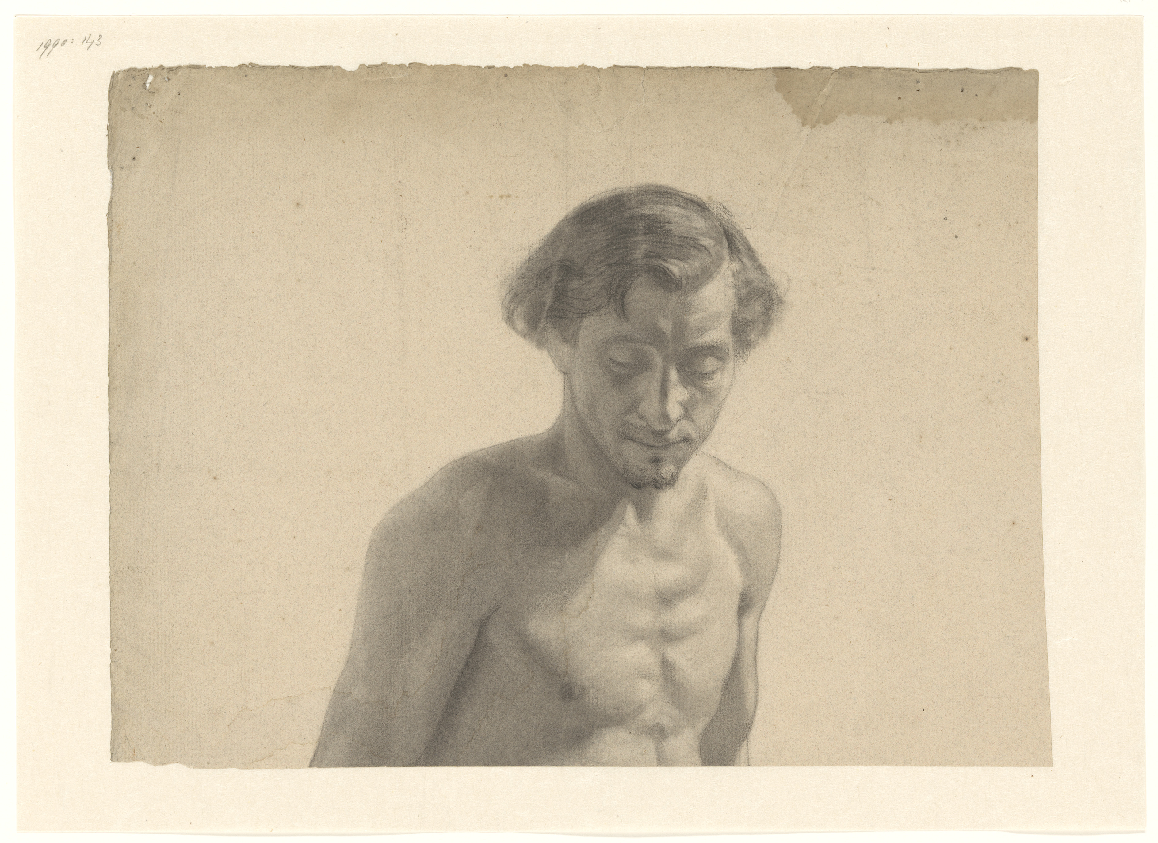 Mannelijk naakt, ten halven lijve, neerziend