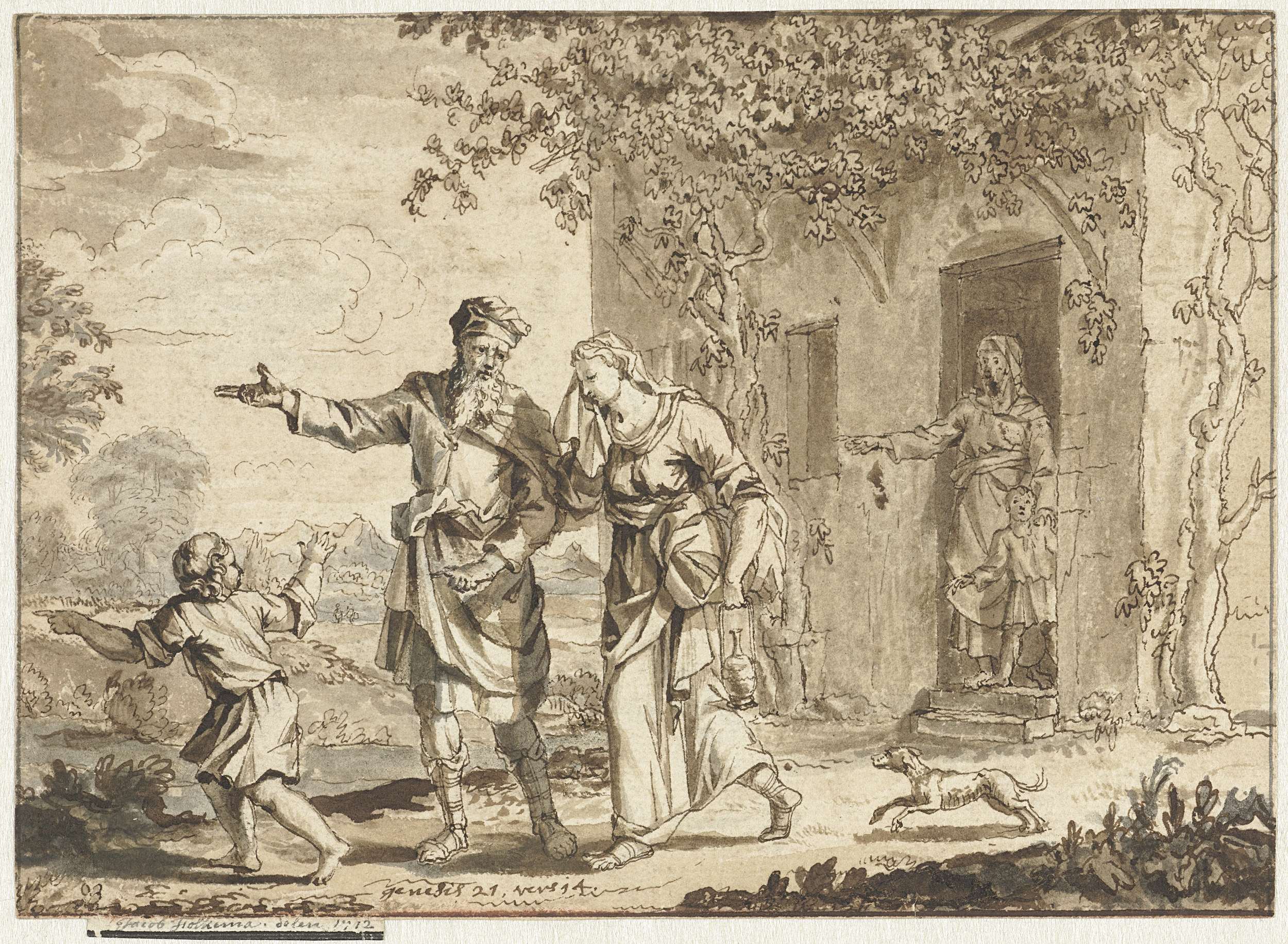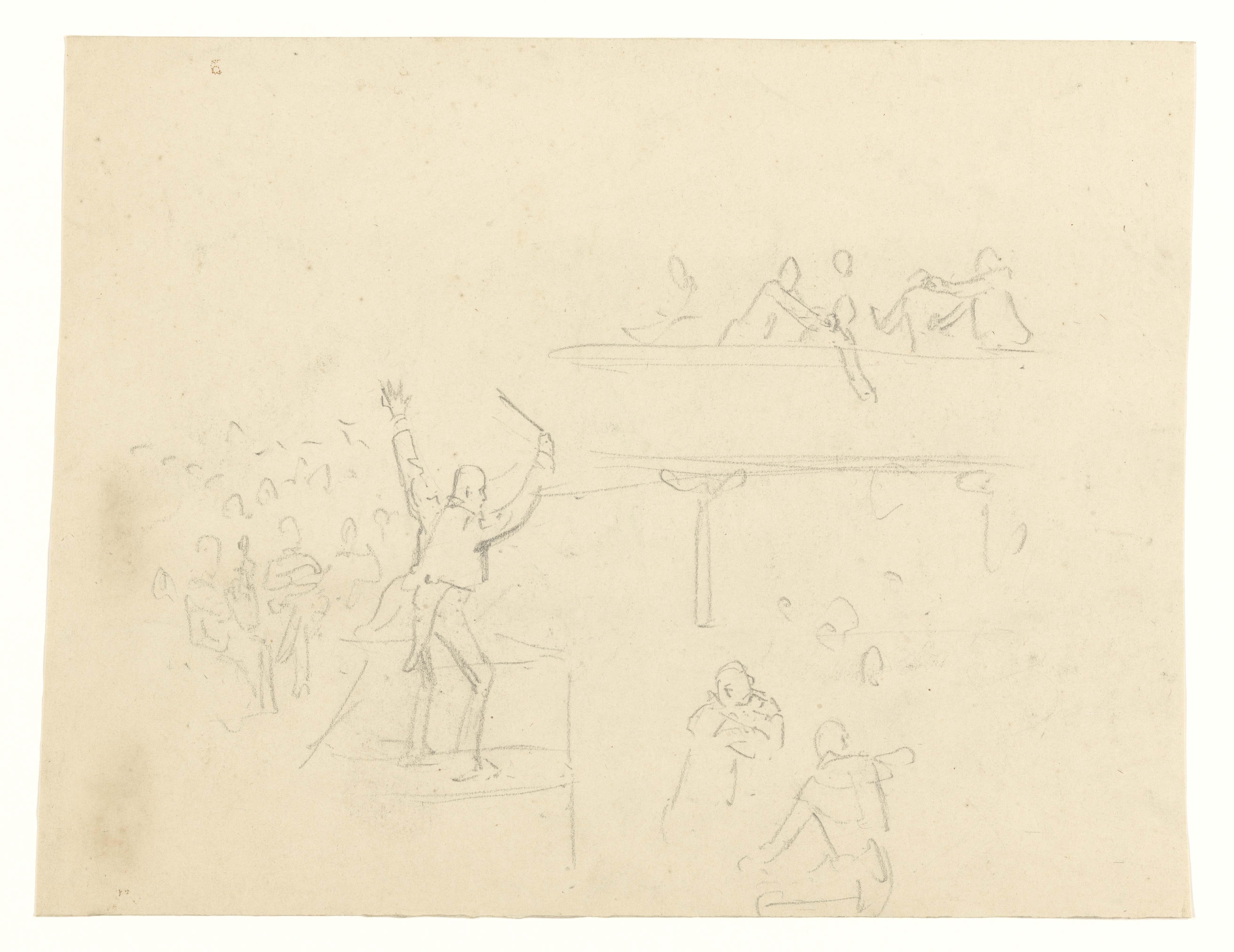Enkele figuren, waarvan één met opgeheven armen
