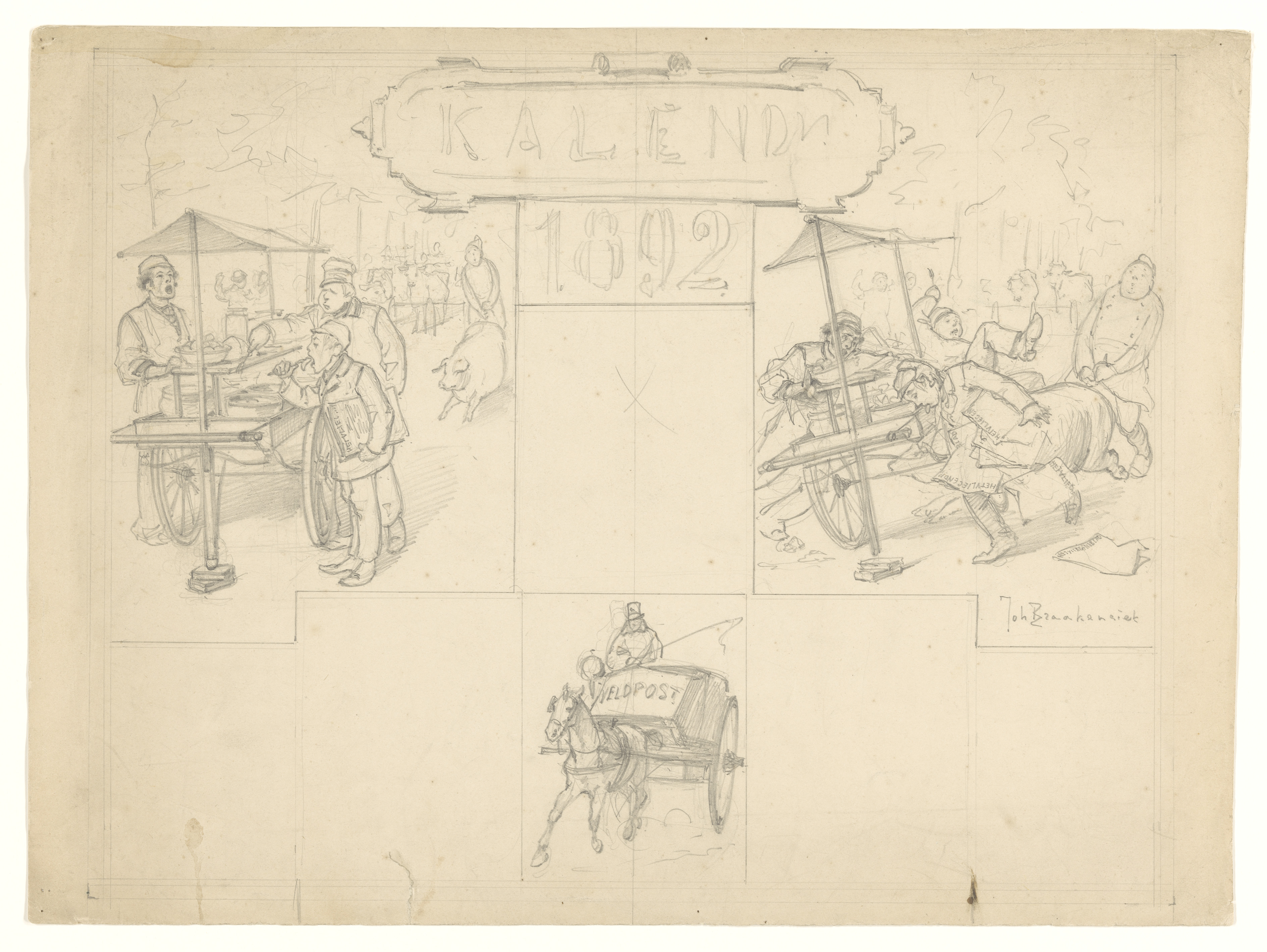 Ontwerp voor illustratie in De Amsterdammer: Uit een...