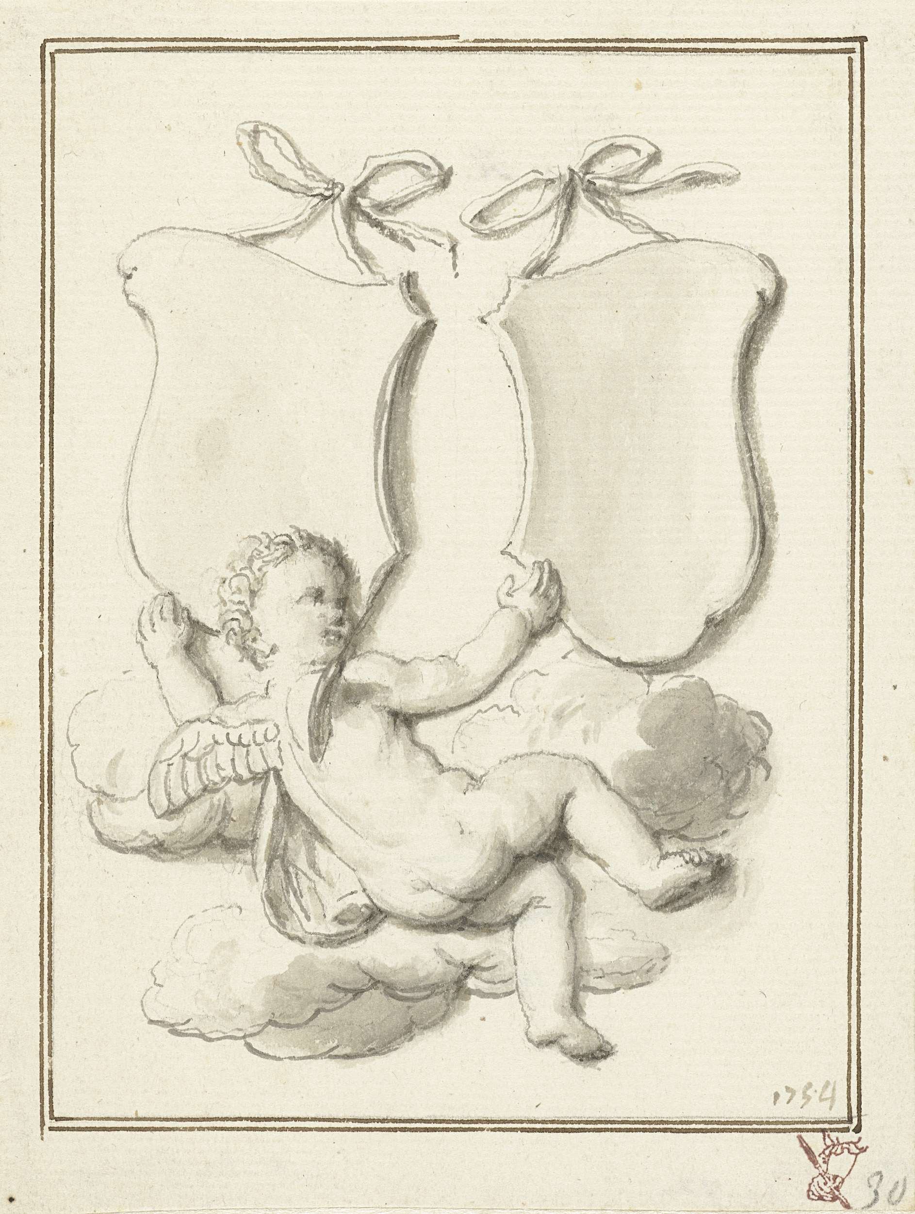 Cartouche met Fama en de Goddelijke en Menselijke Wi...
