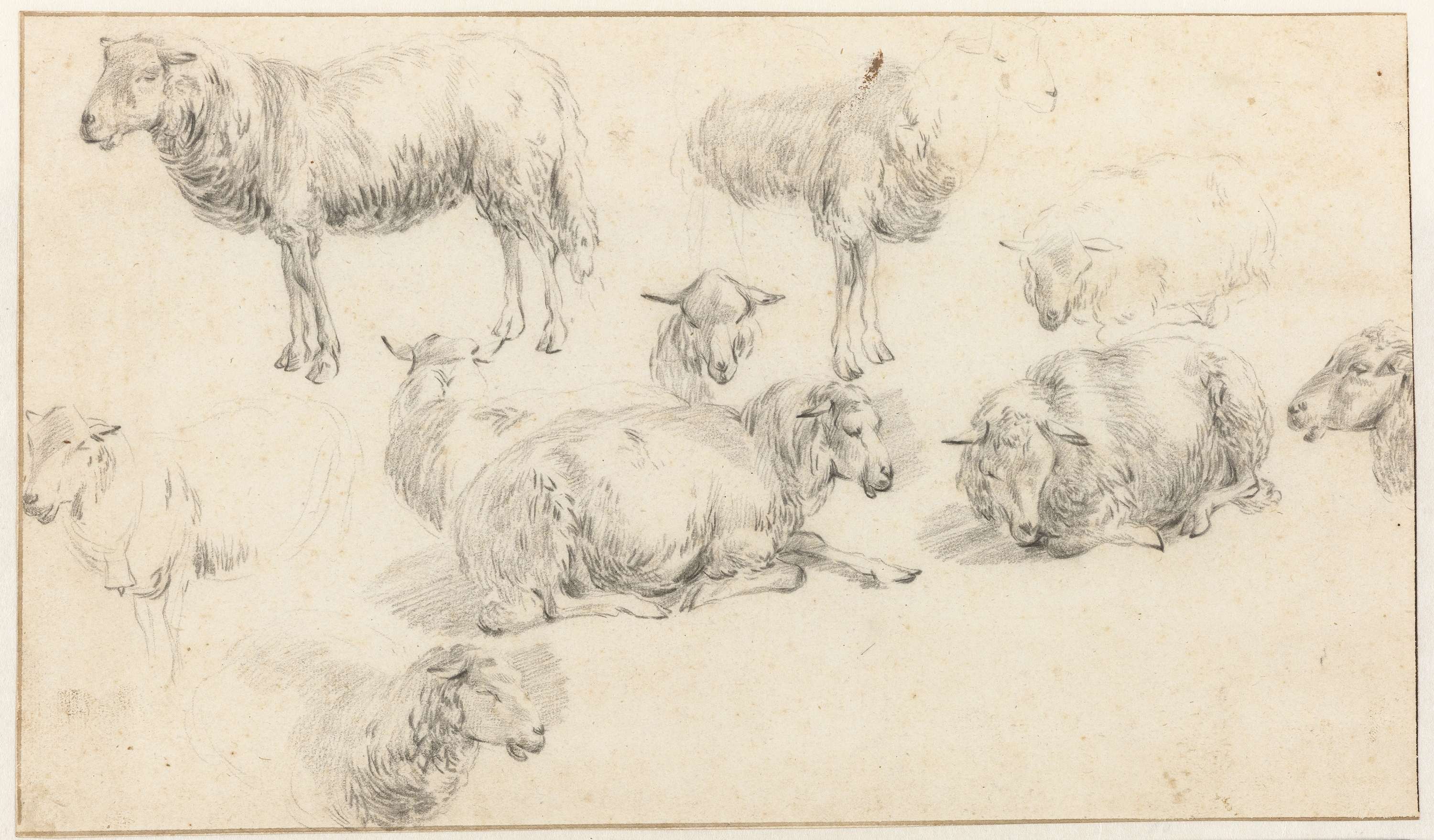Studieblad met staande en liggende schapen