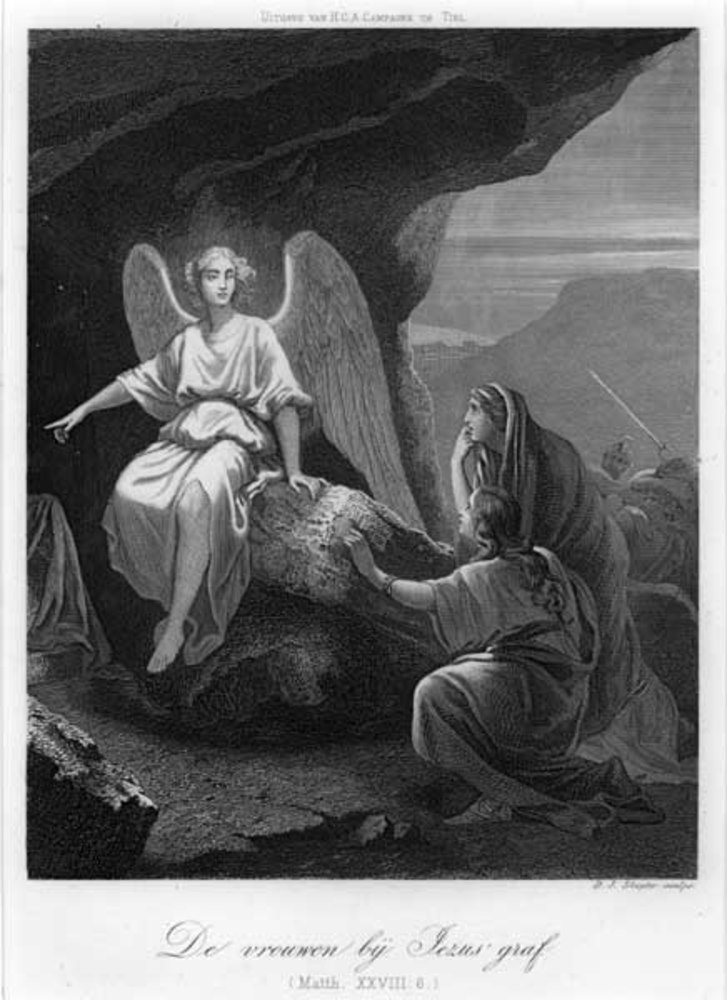 Gravure, voorstellende de vrouwen bij Jezus' graf, v...