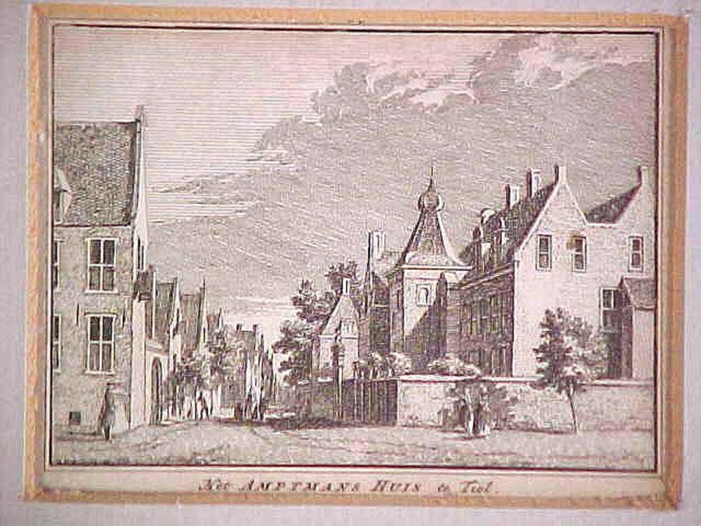 Gravure, voorstellende het Ambtmanshuis en de Ambtma...