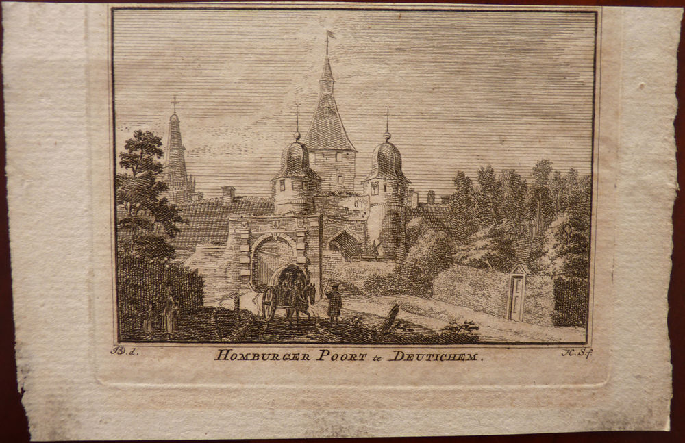 Gravure "Homburger poort te Deutichem" op papier, 1743