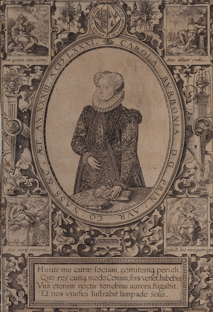 Gravure voorstellende Charlotte van Bourbon, gedatee...