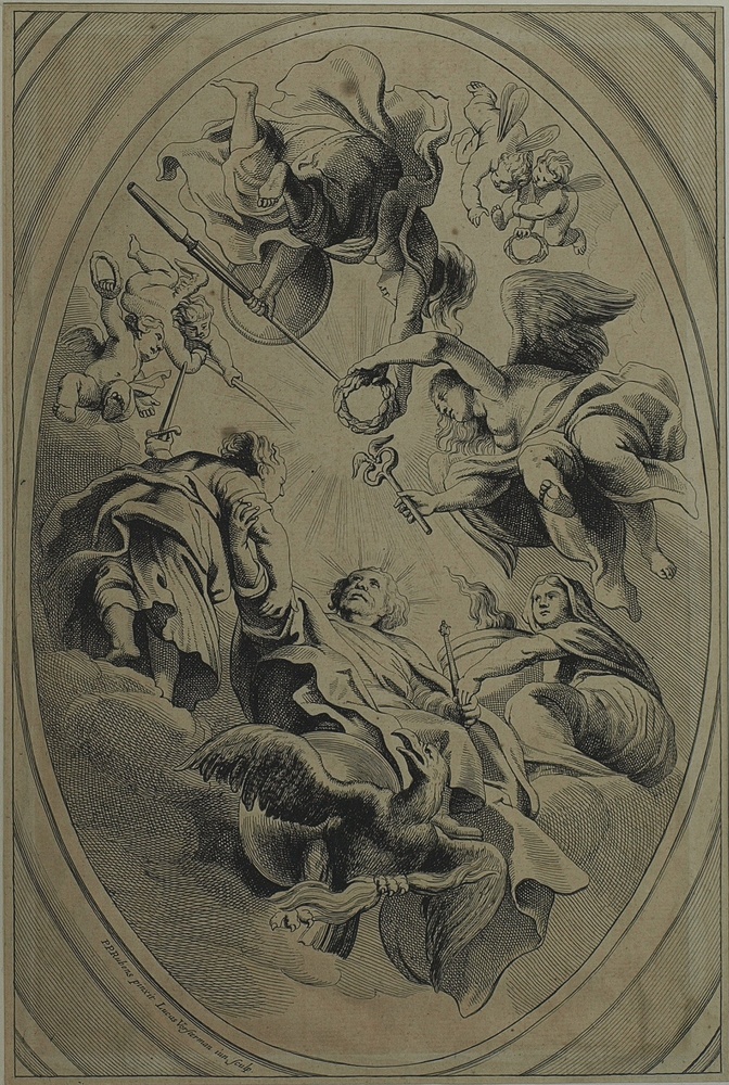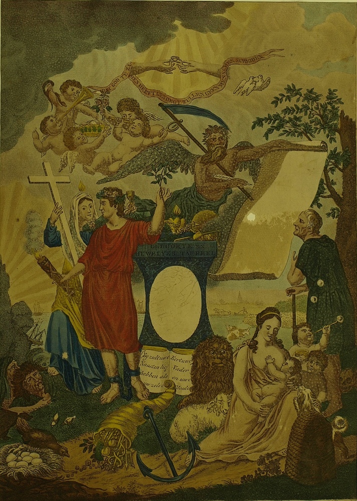 Allegorie. Binnen ovaal breken lichtstralen door de ...