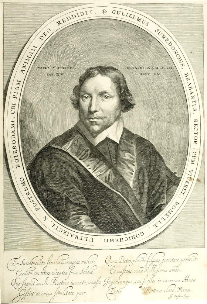 borststuk in ovaal van Gulielmus Suredoncius, rector...