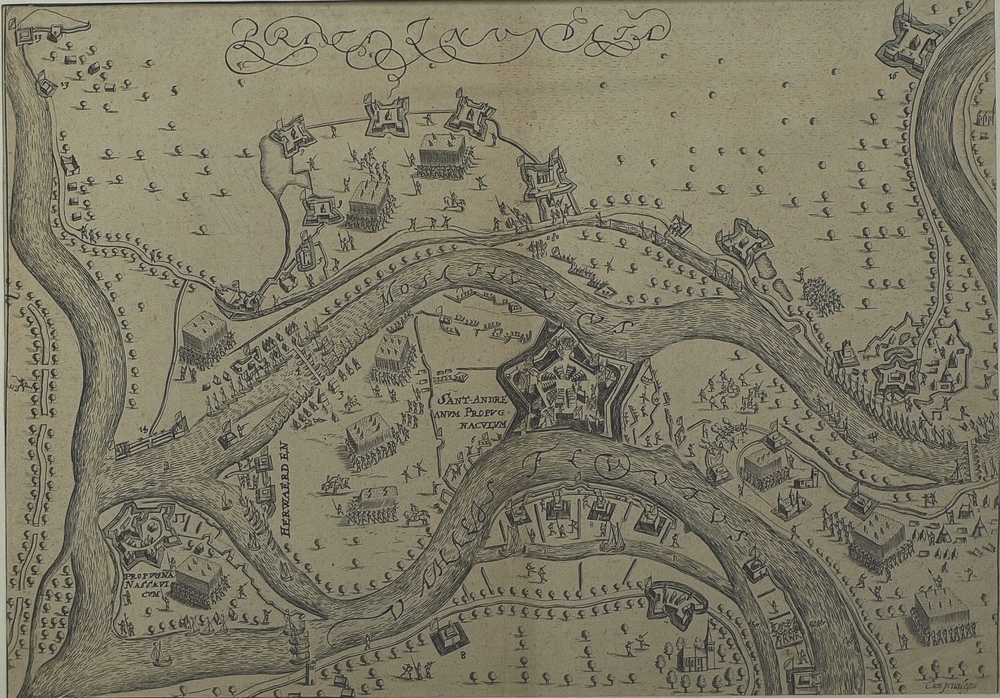 Topografische aanduidingen van het beleg in 1599 Bom...