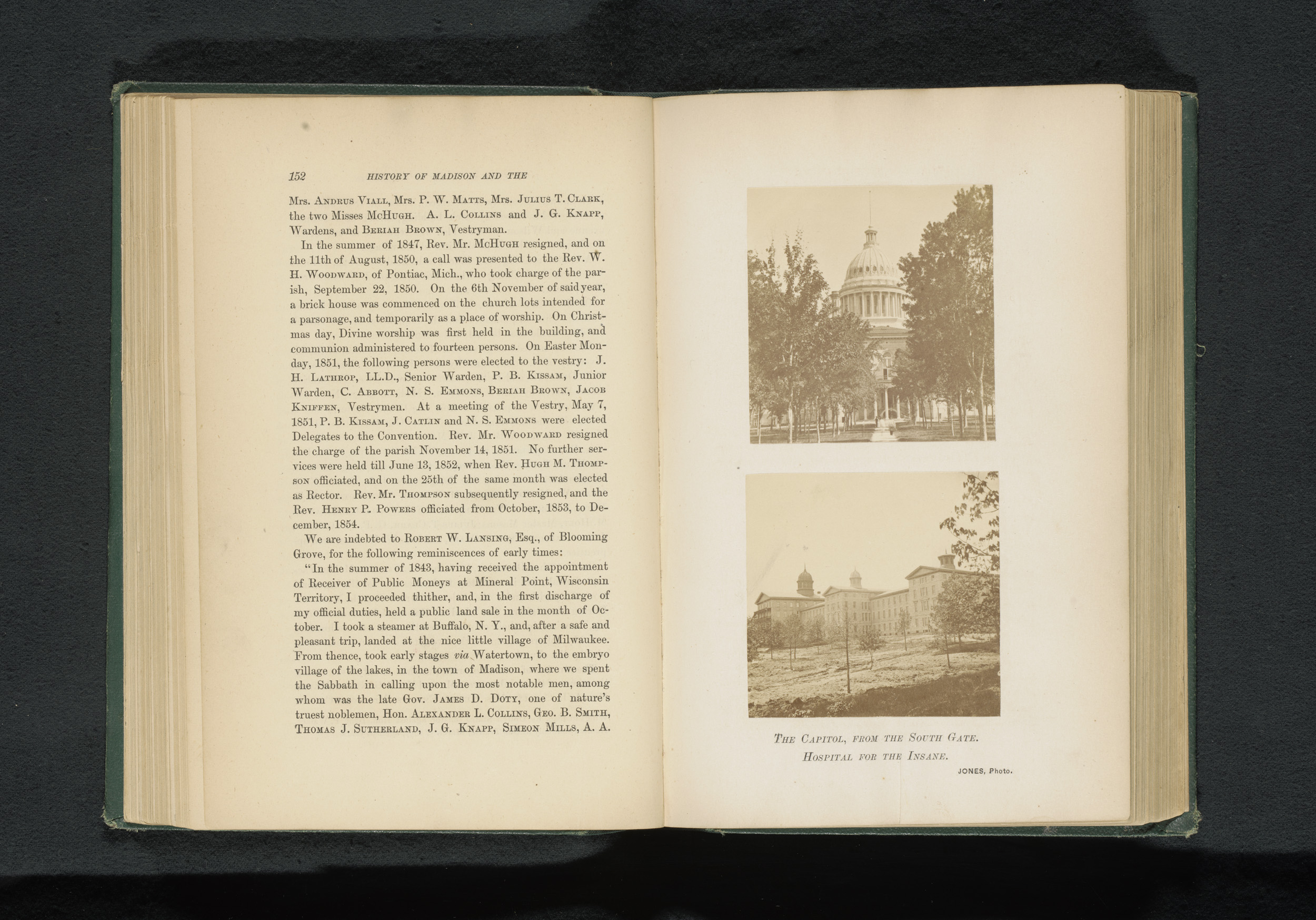 Gezicht op het Wisconsin State Capitol en een psychi...
