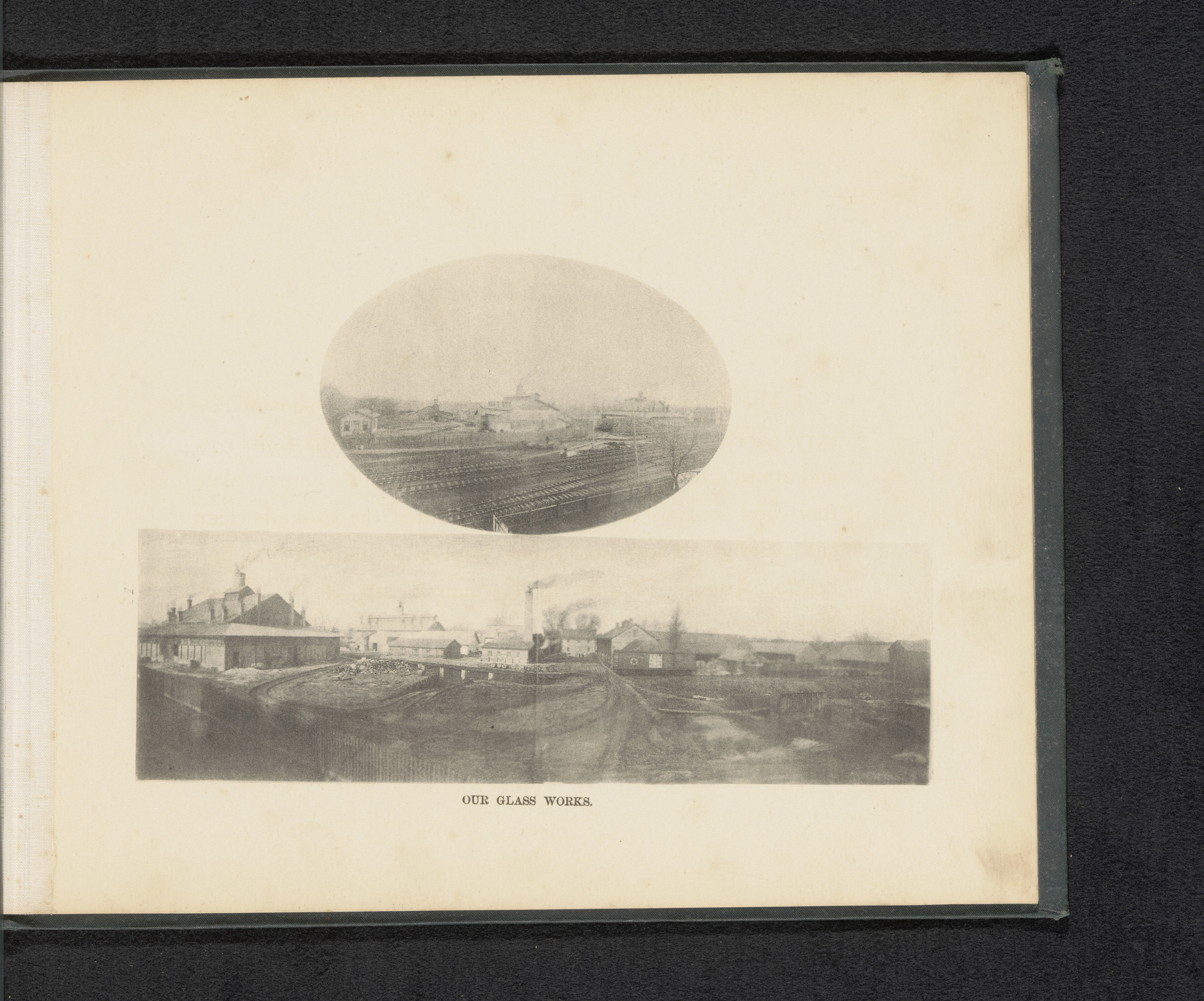 Gezicht op de machinehal en het administratiegebouw ...