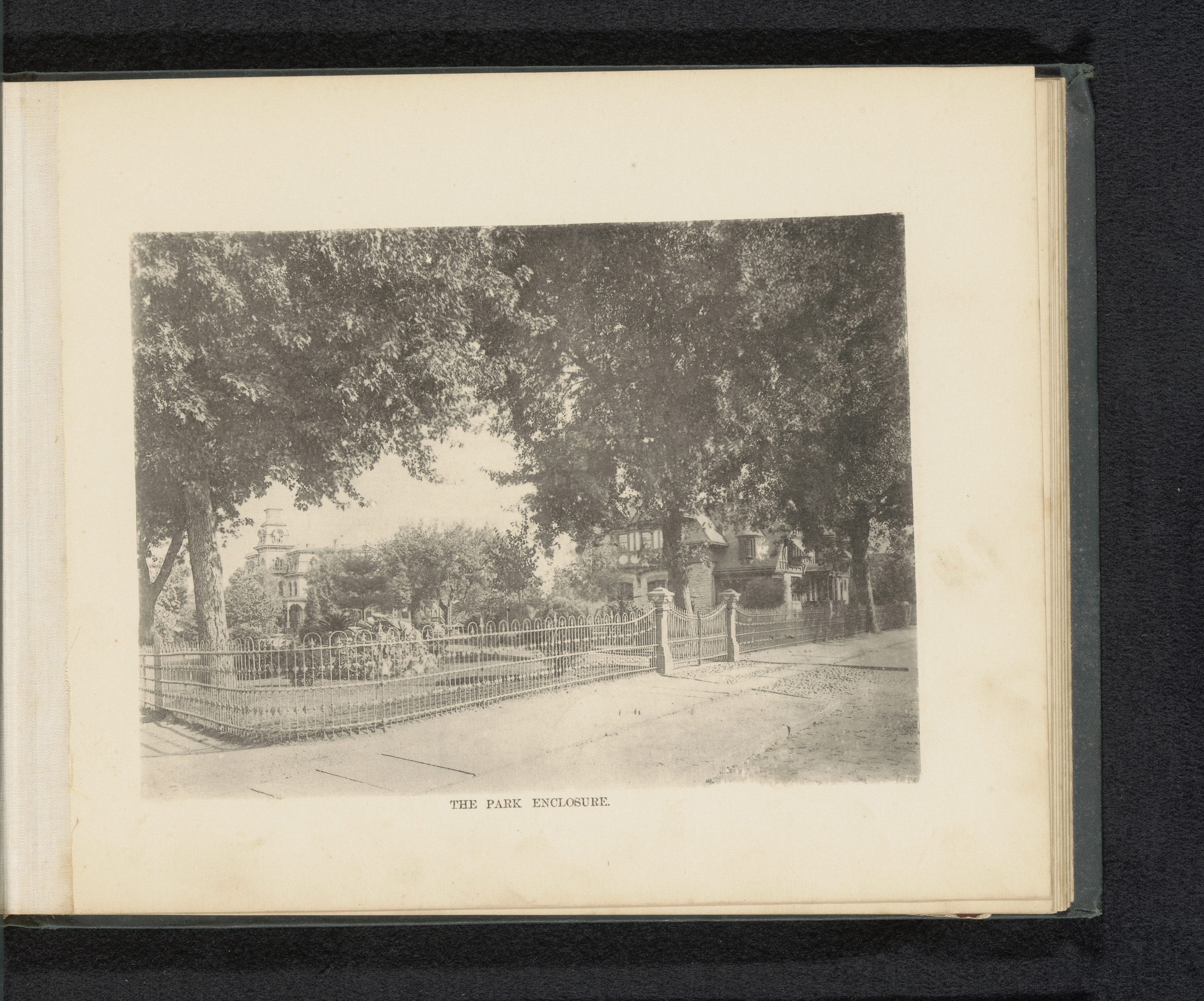 Gezicht op het hek rond het landgoed van George Gill...