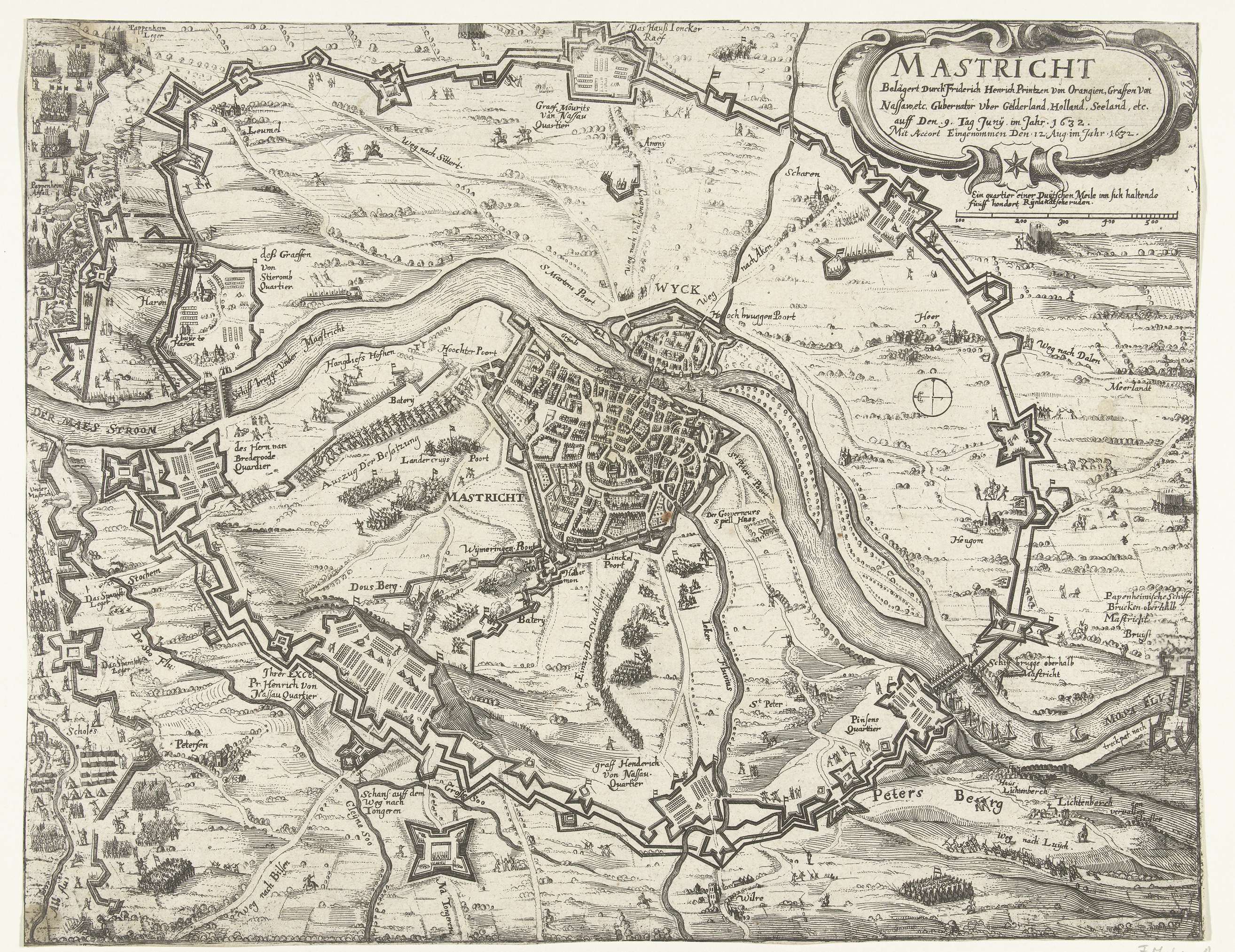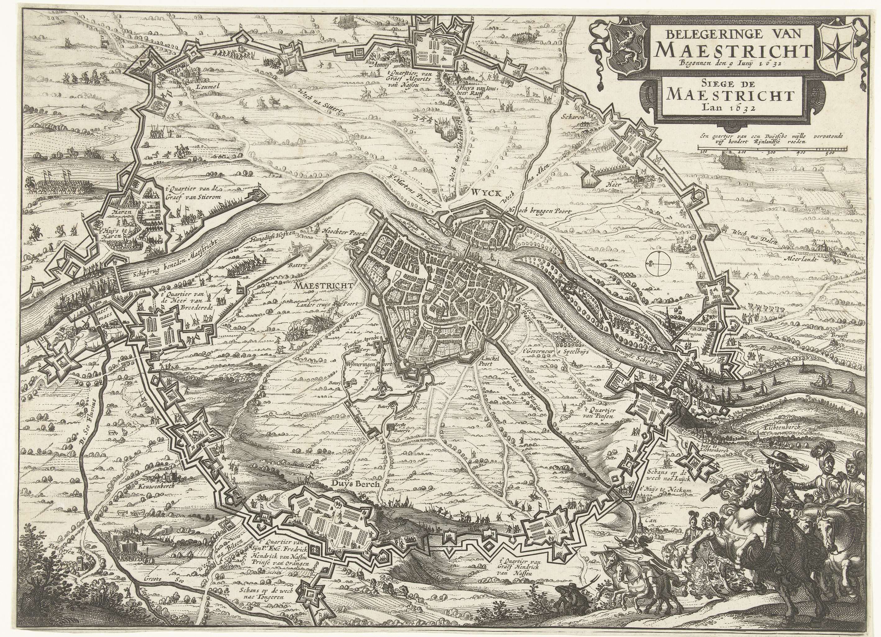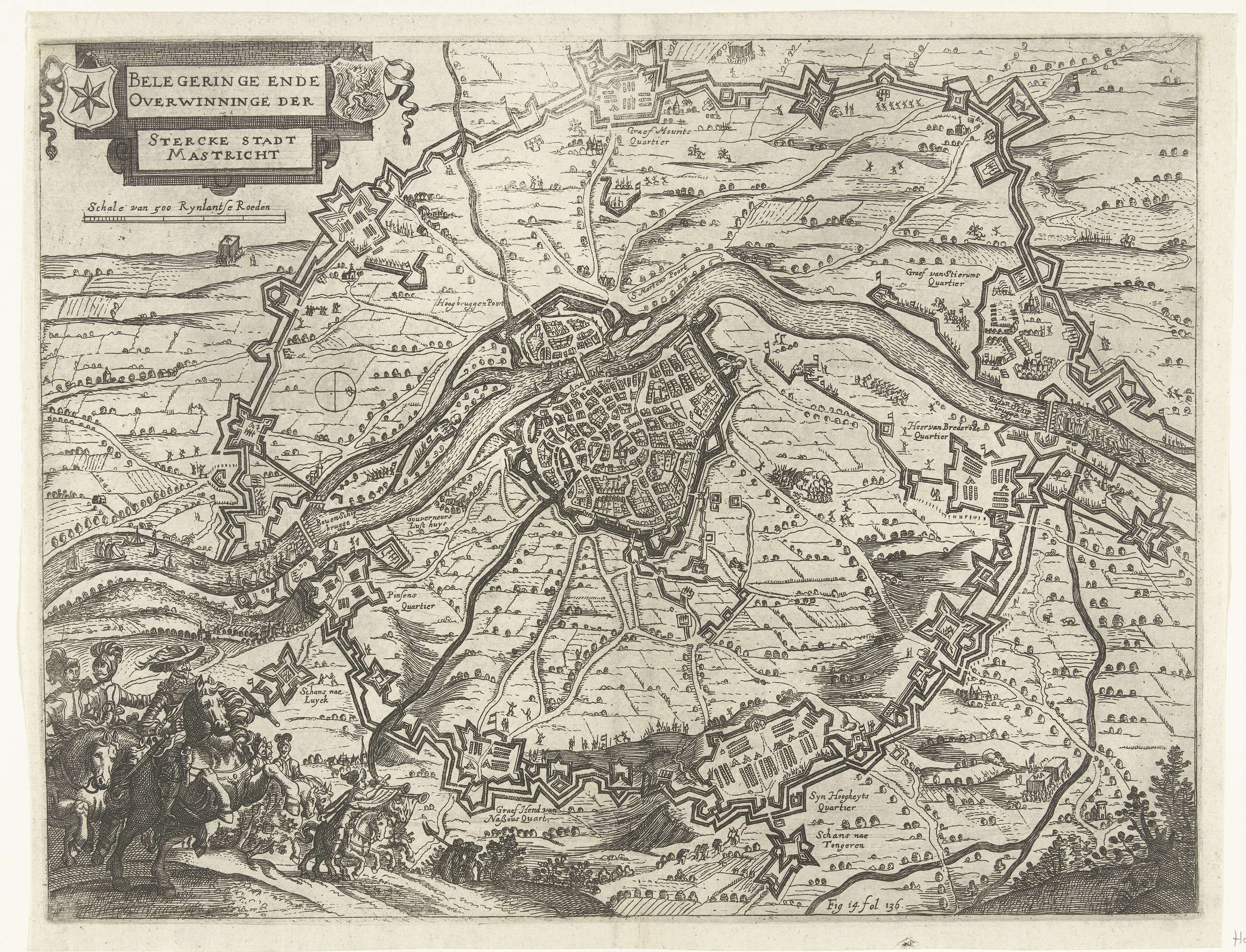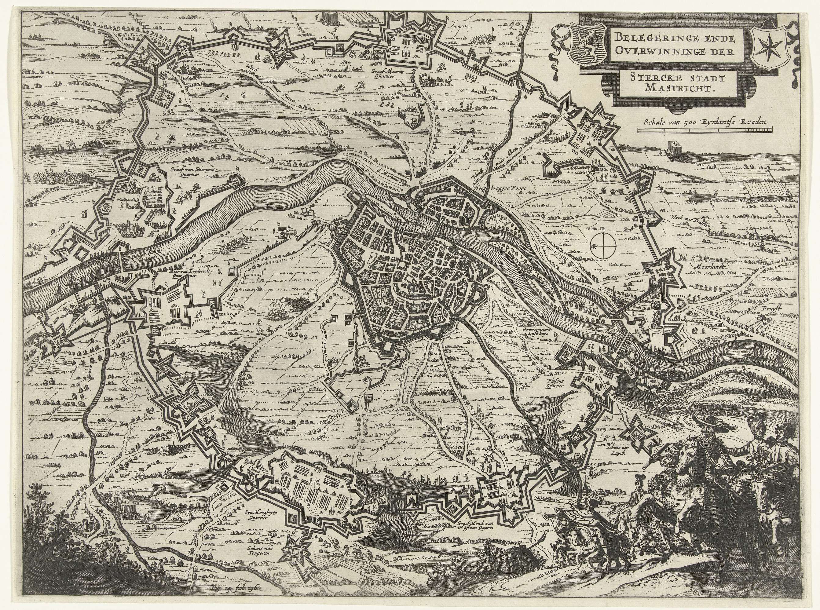 Grote kaart van het beleg van Maastricht, 1632, plaat 1