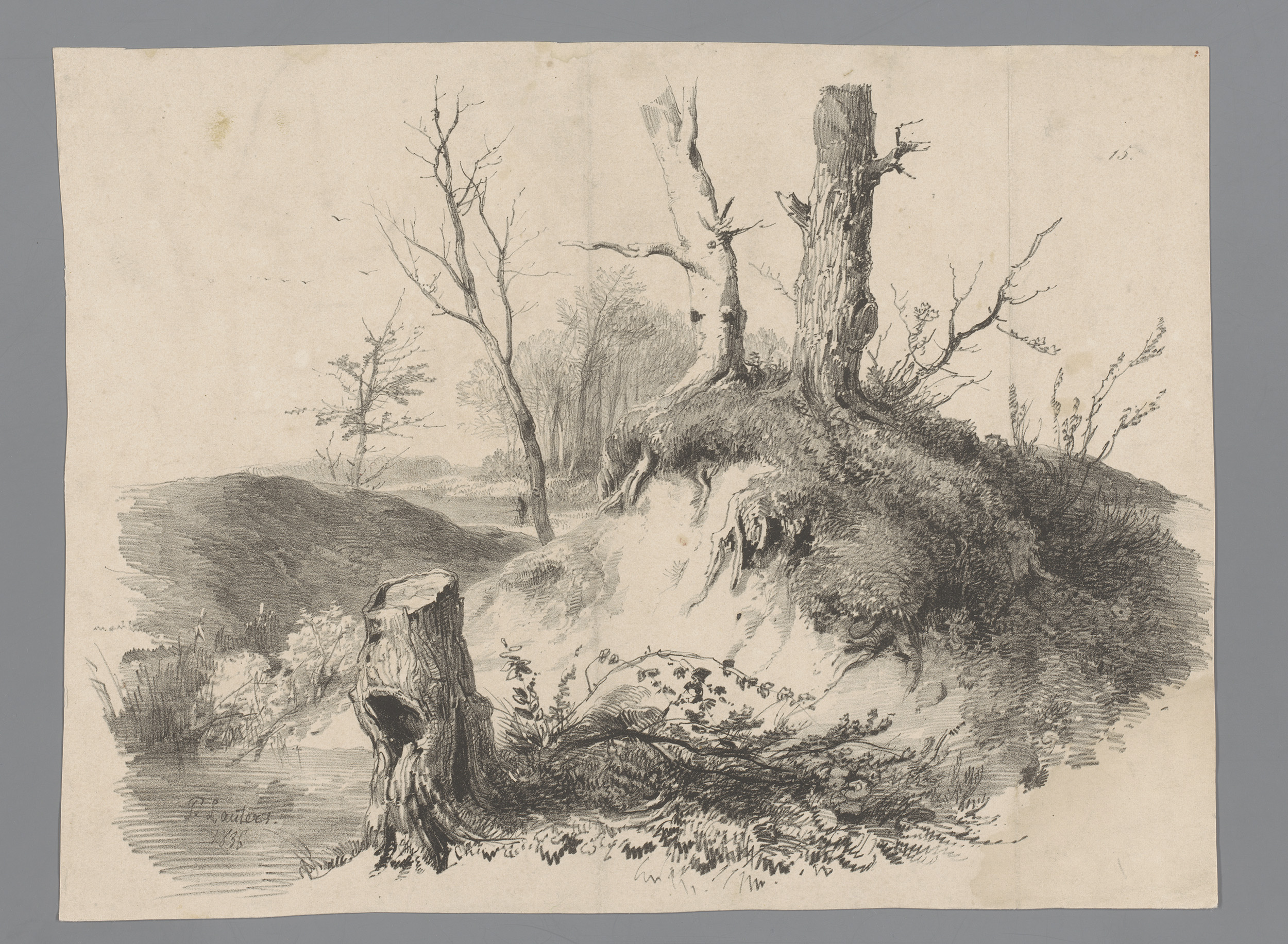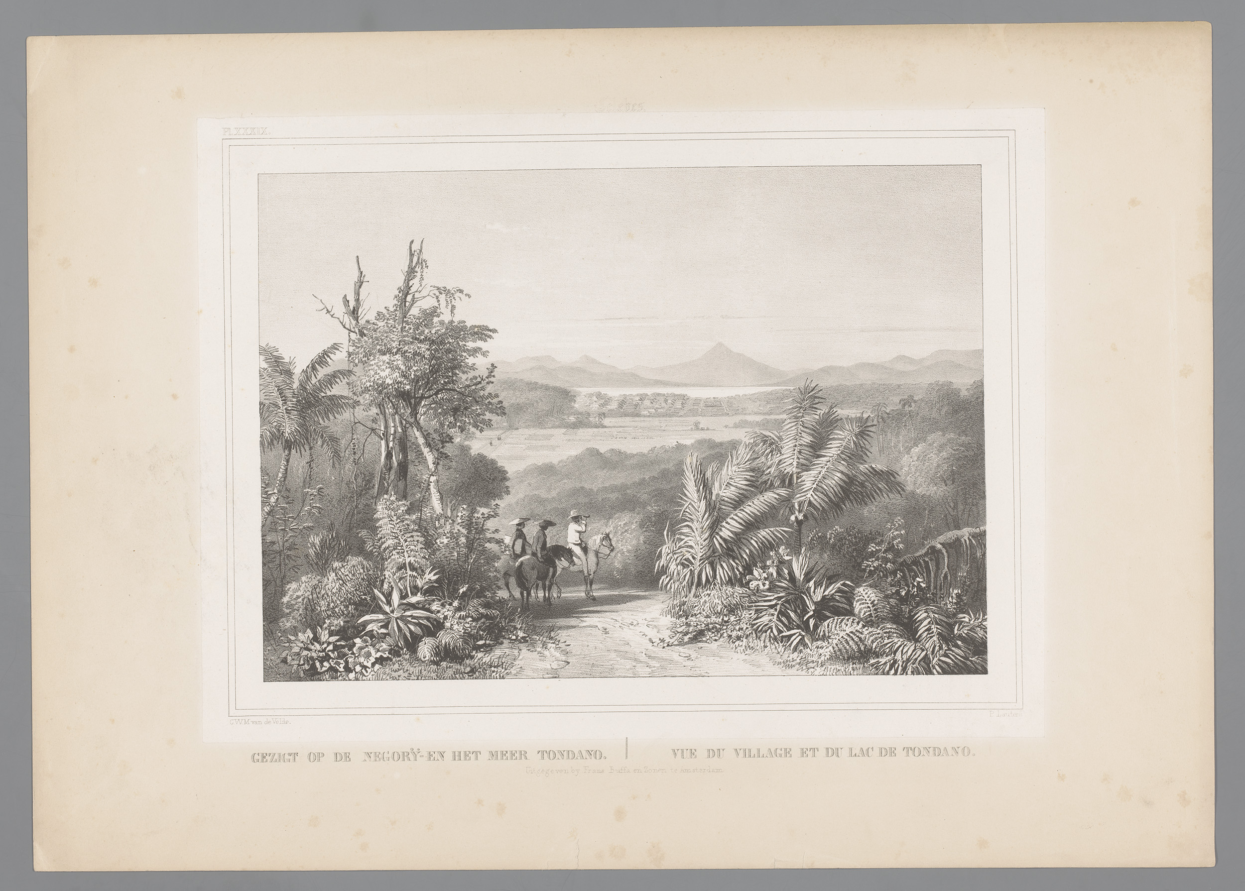 Landschap met figuren bij een meer en de vulkanen Gu...
