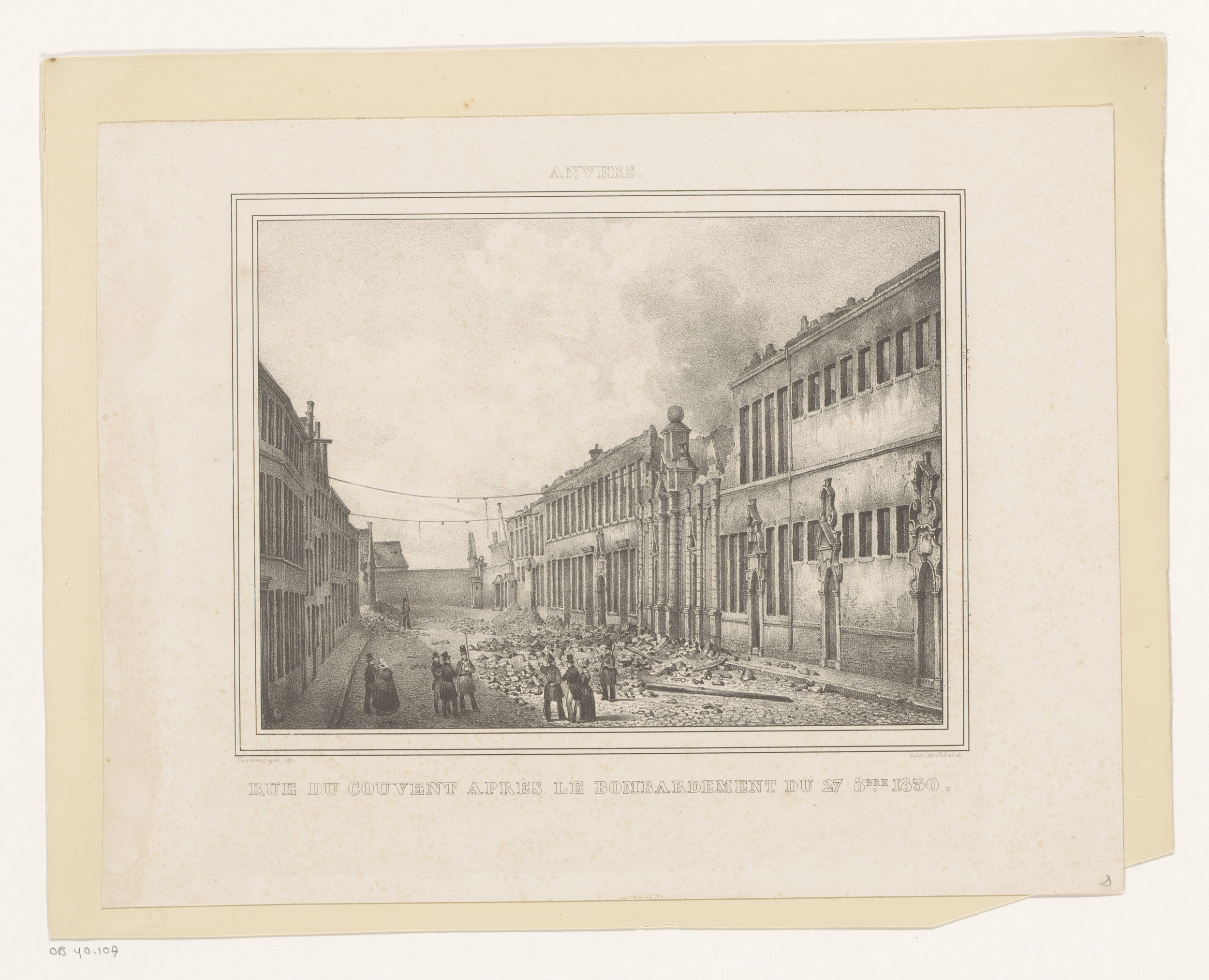 Ruïnes in de Kloosterstraat na het bombardement van ...