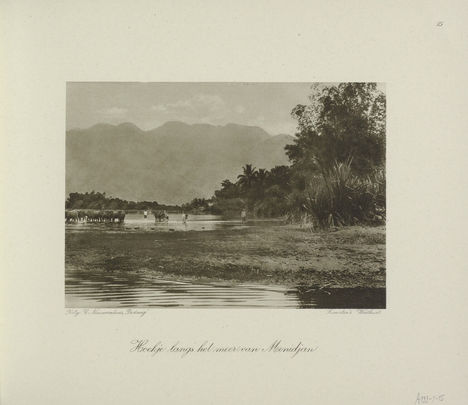 Vissers in boten op het meer van Menidjan aan Sumtra...