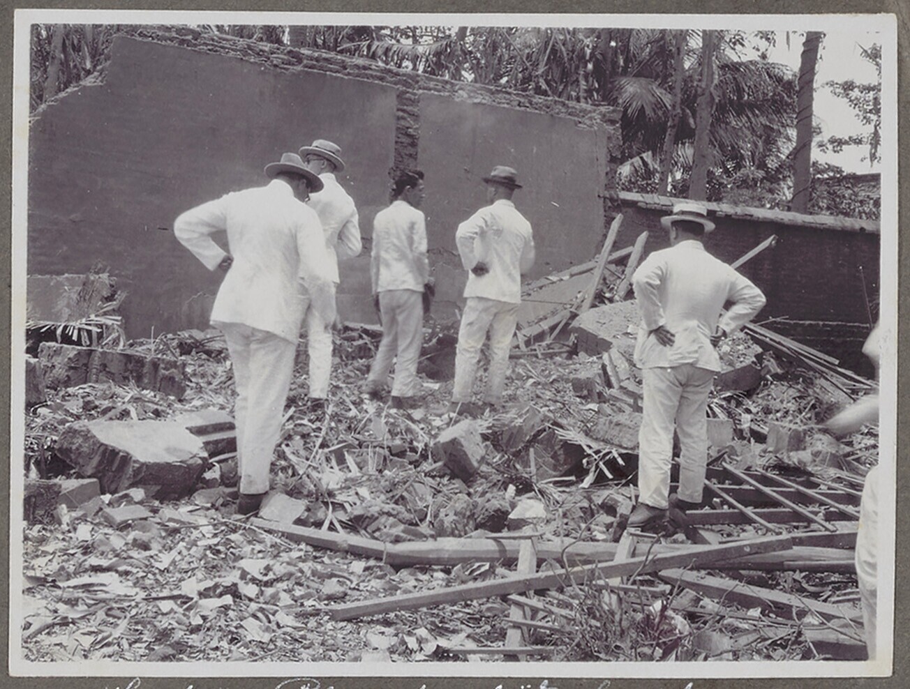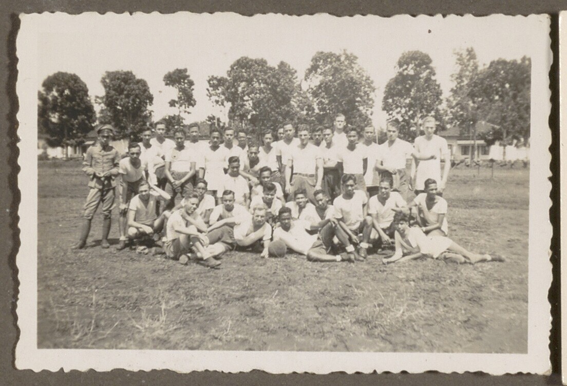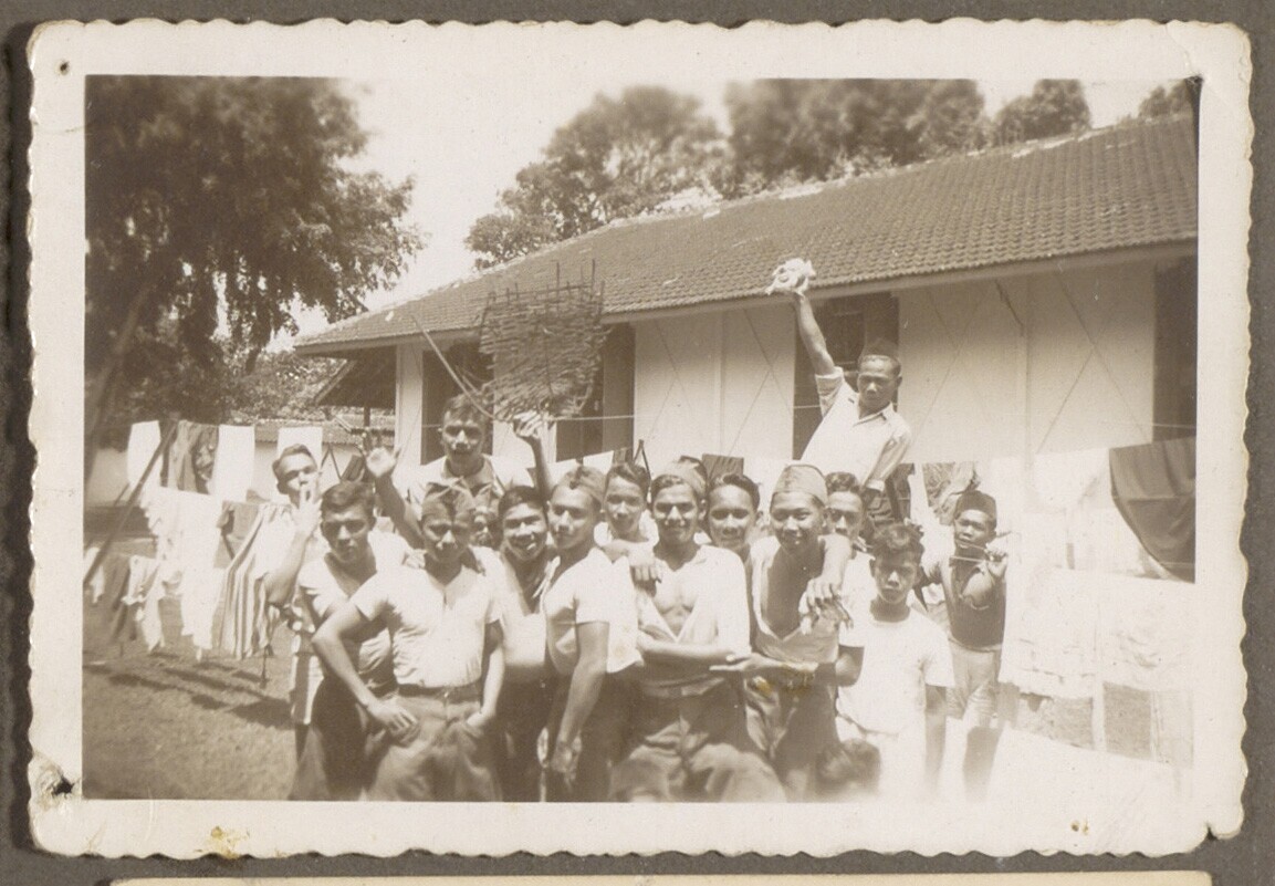 Groep Europese en Javaanse mannen bij het nablussen ...