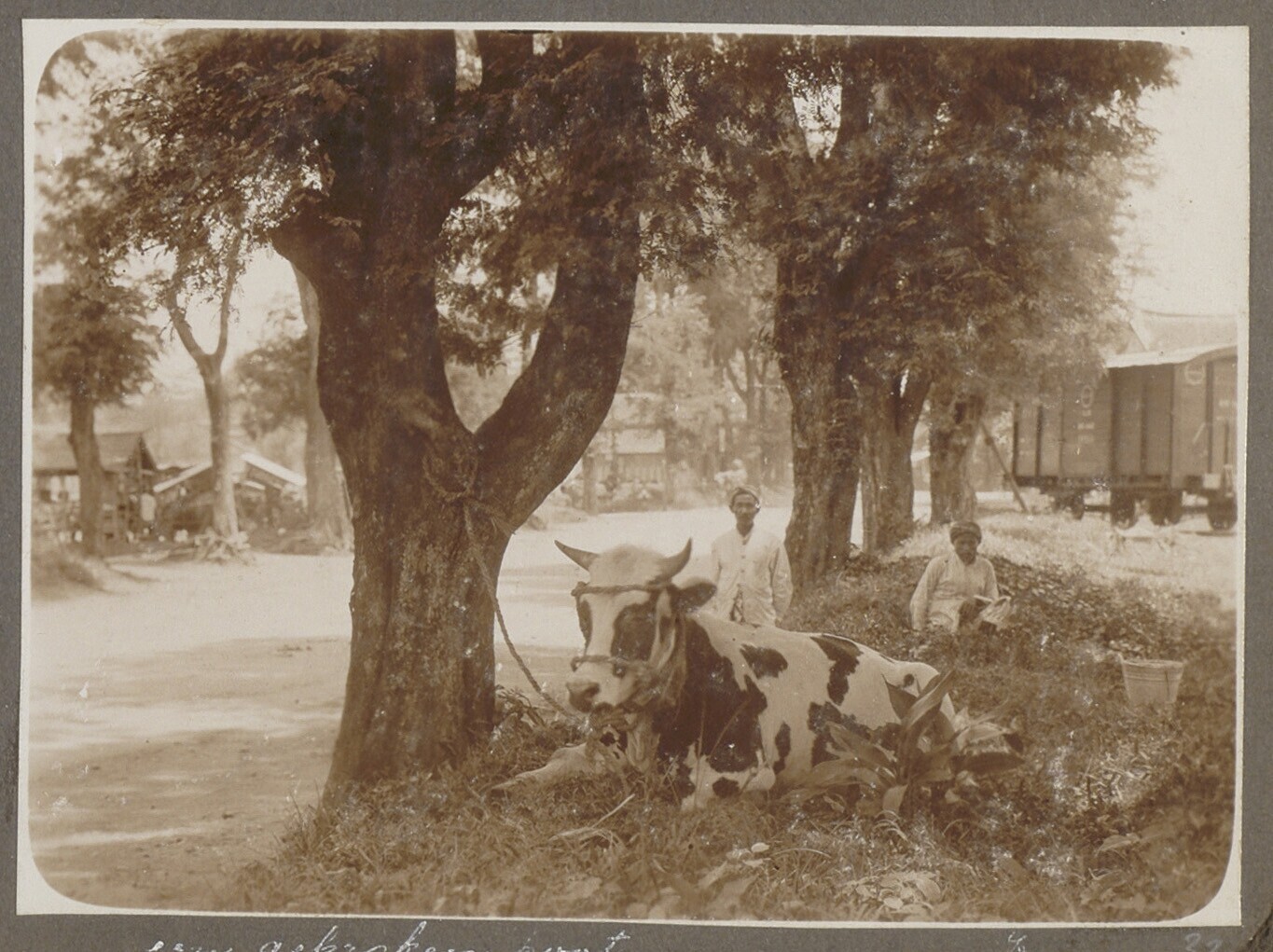Twee Javanen bij de met bananenbladeren toegedekte s...