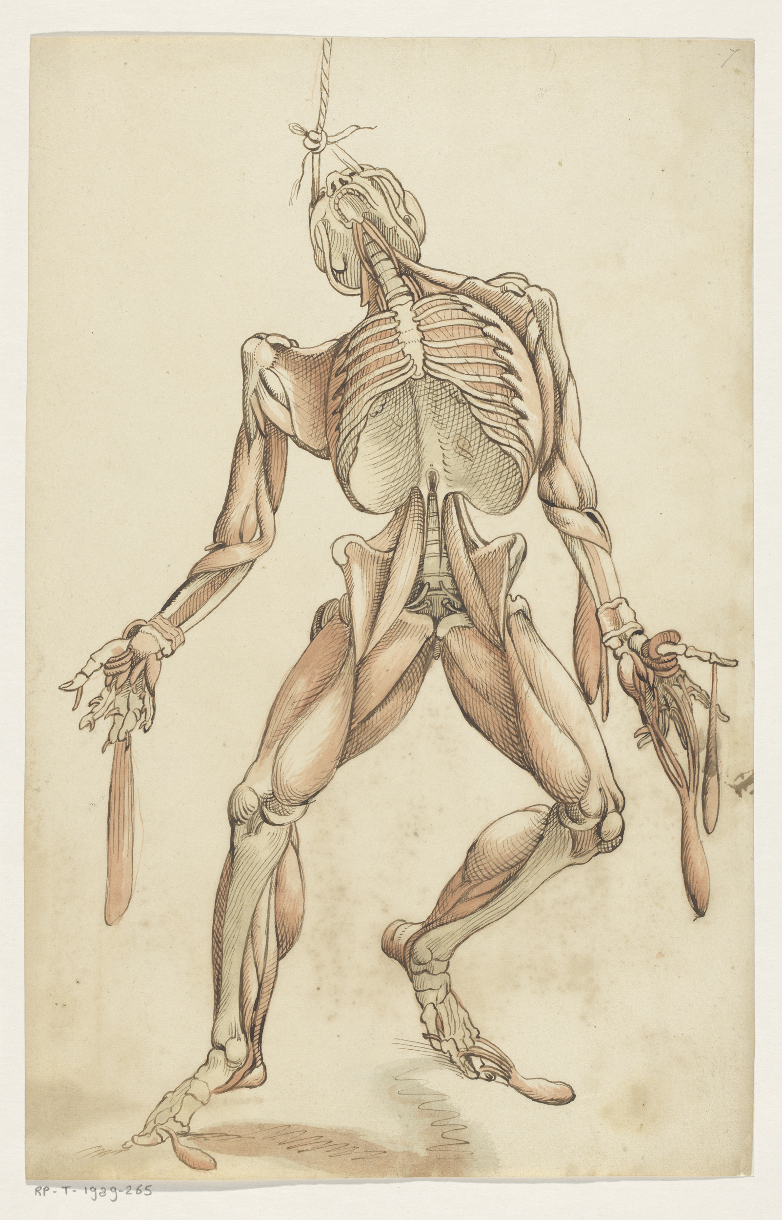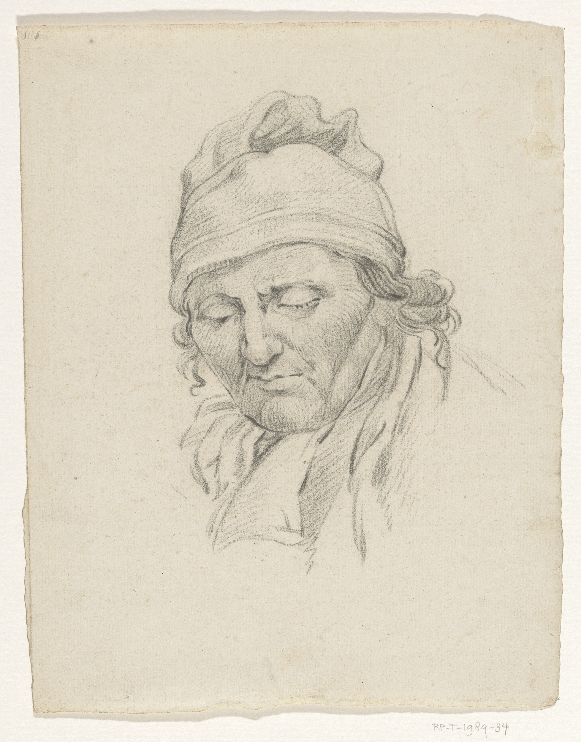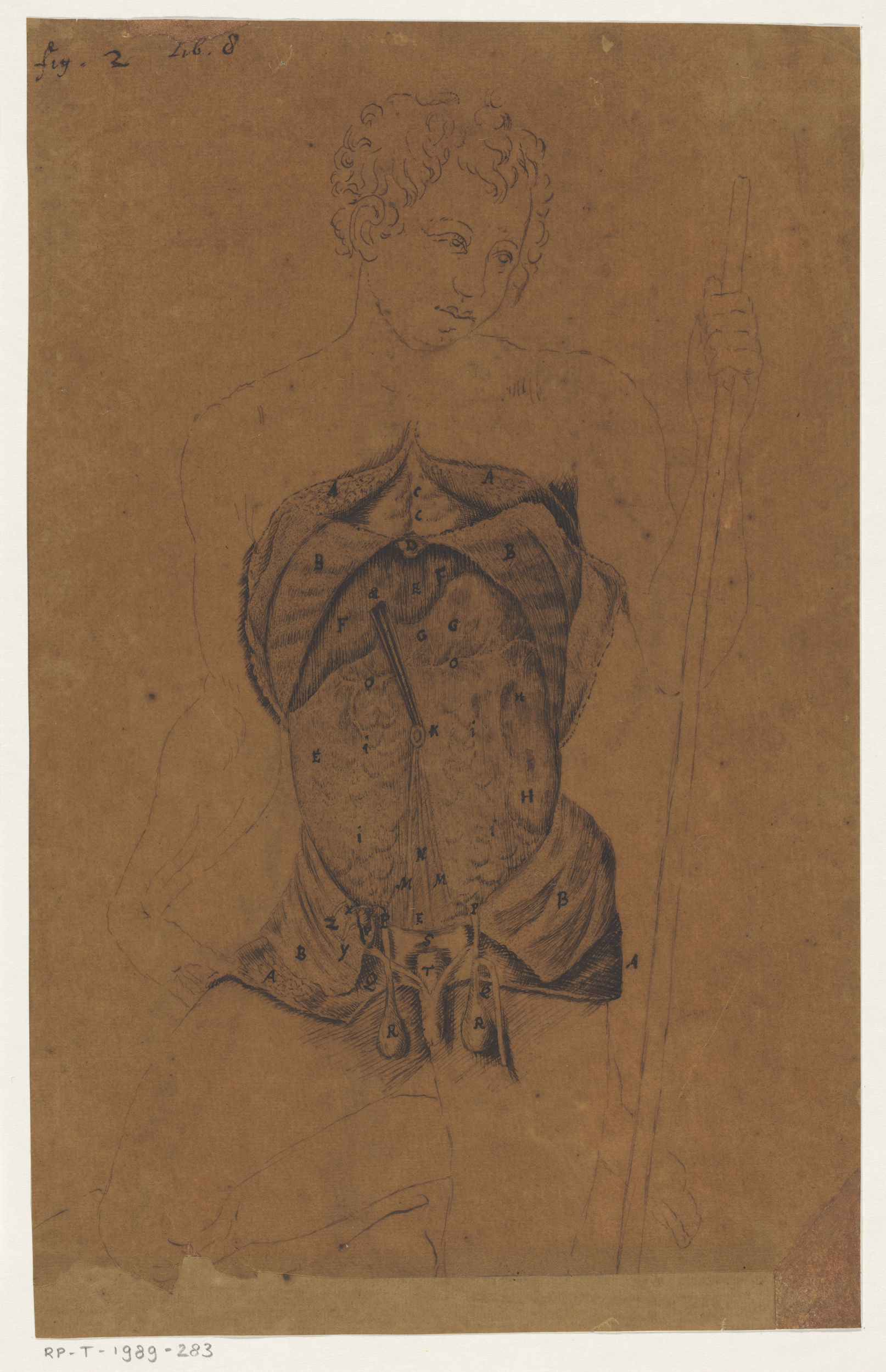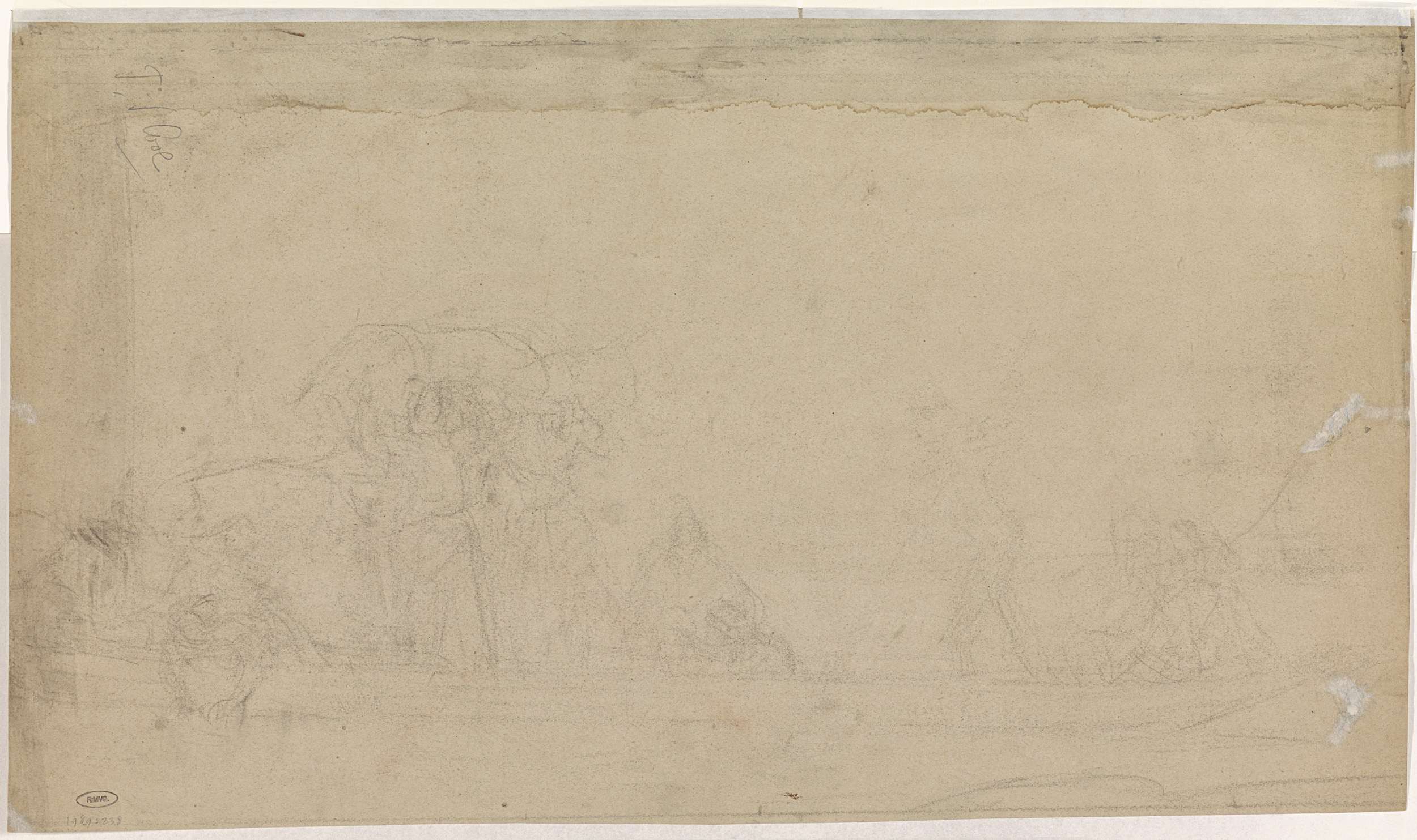 Man met zwaard valt een liggende man aan, terwijl ee...