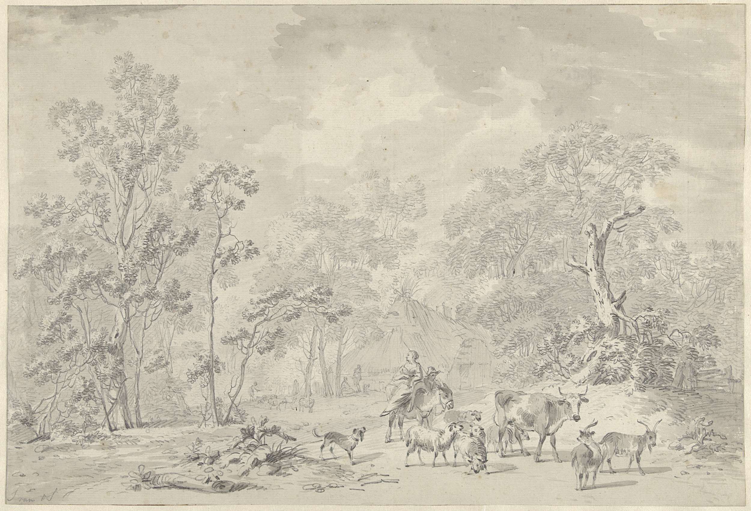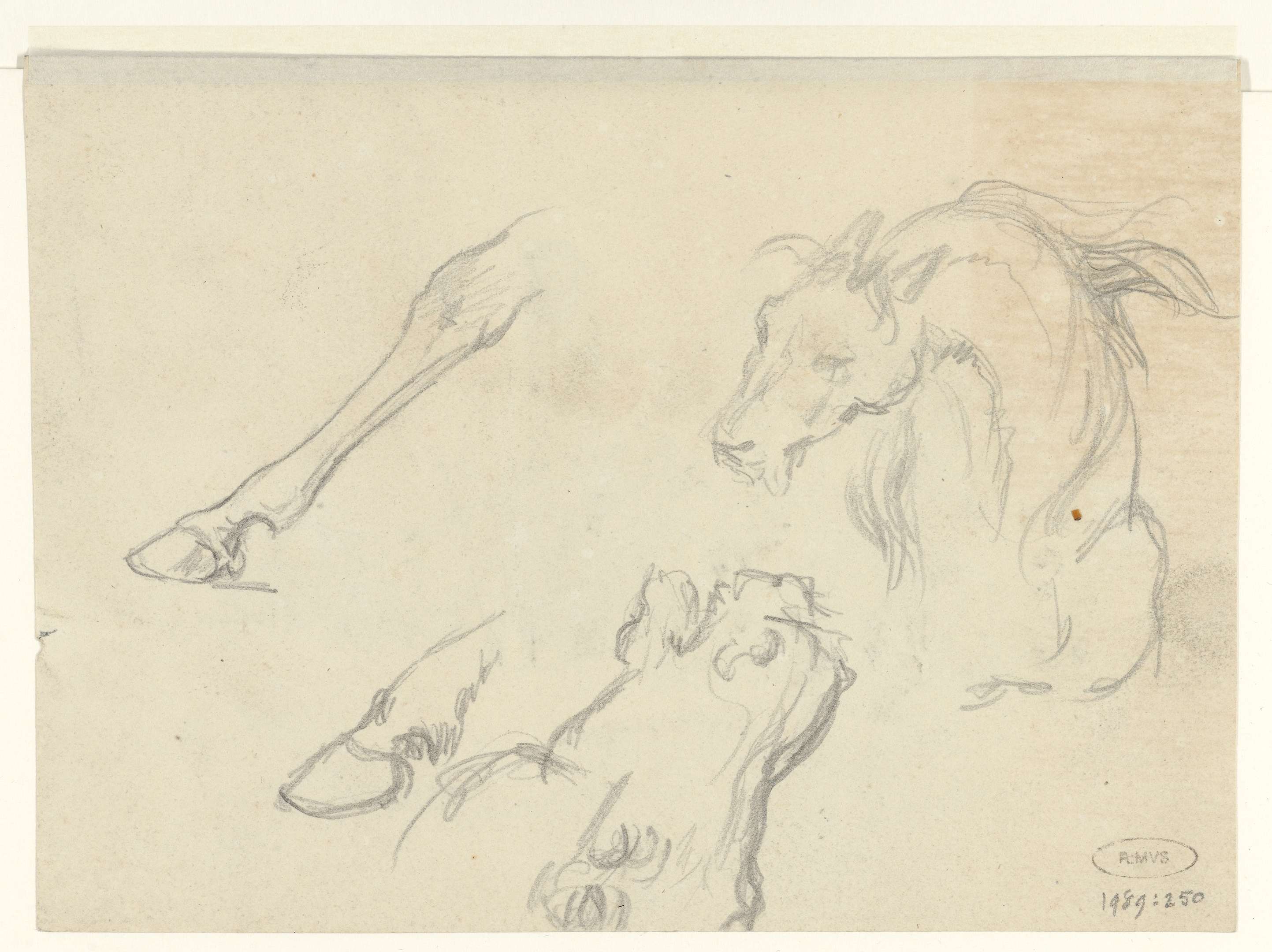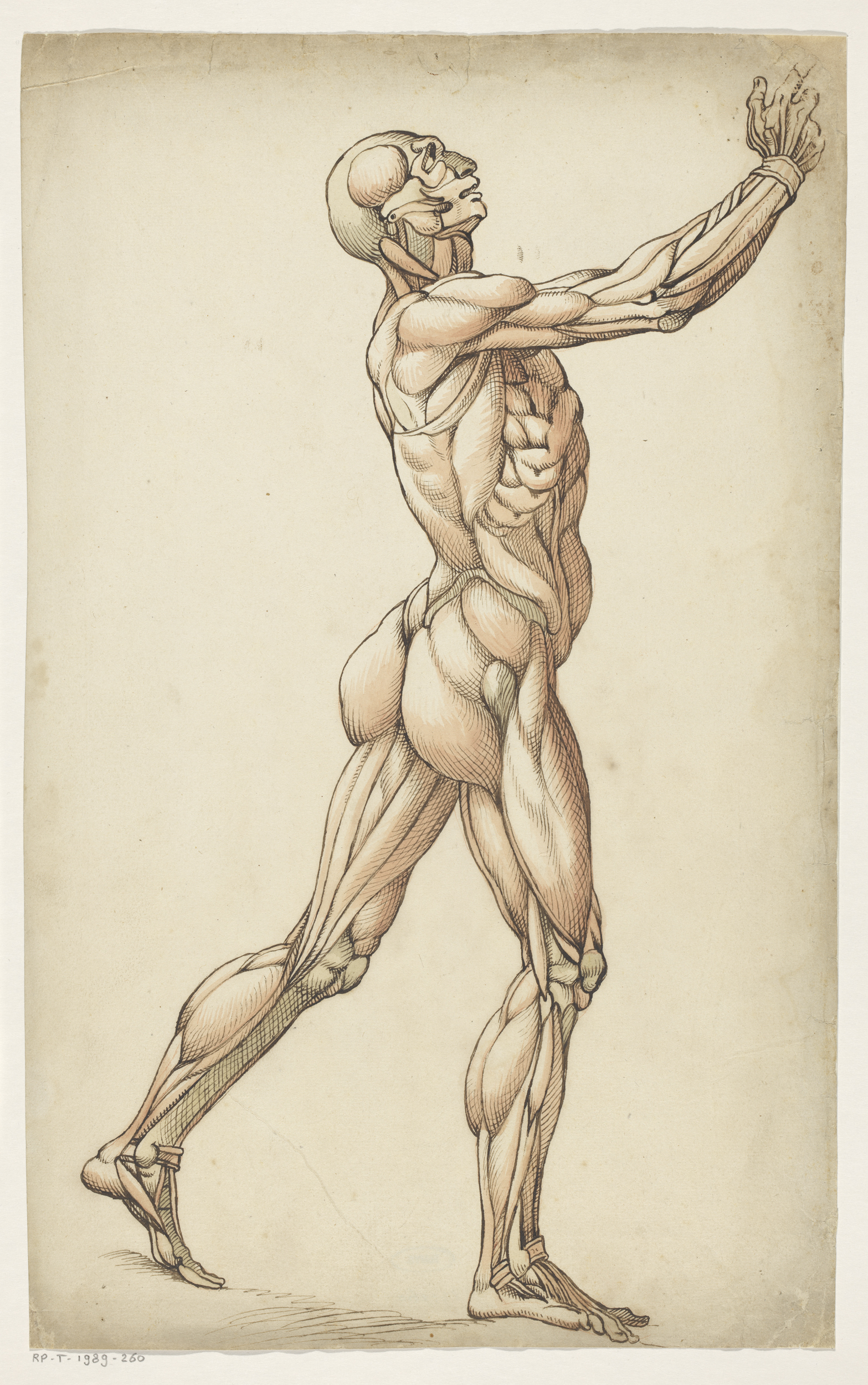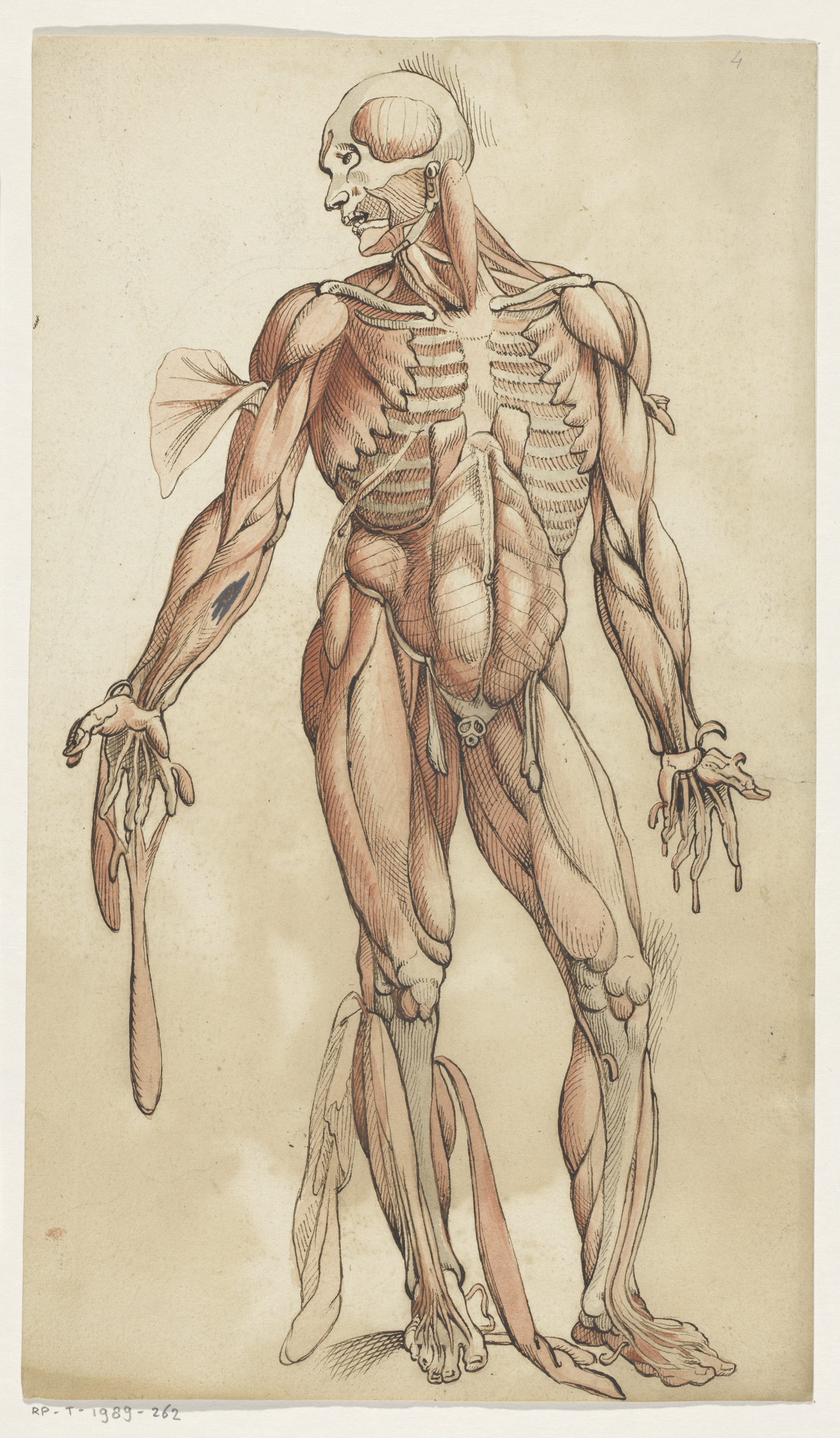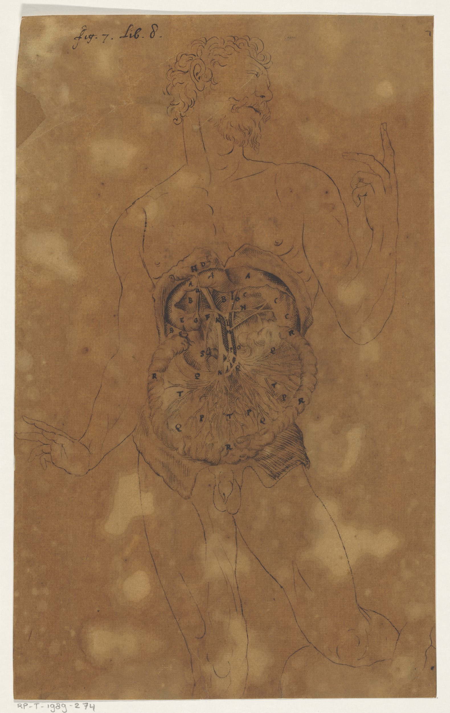 Man met zwaard valt een liggende man aan, terwijl ee...