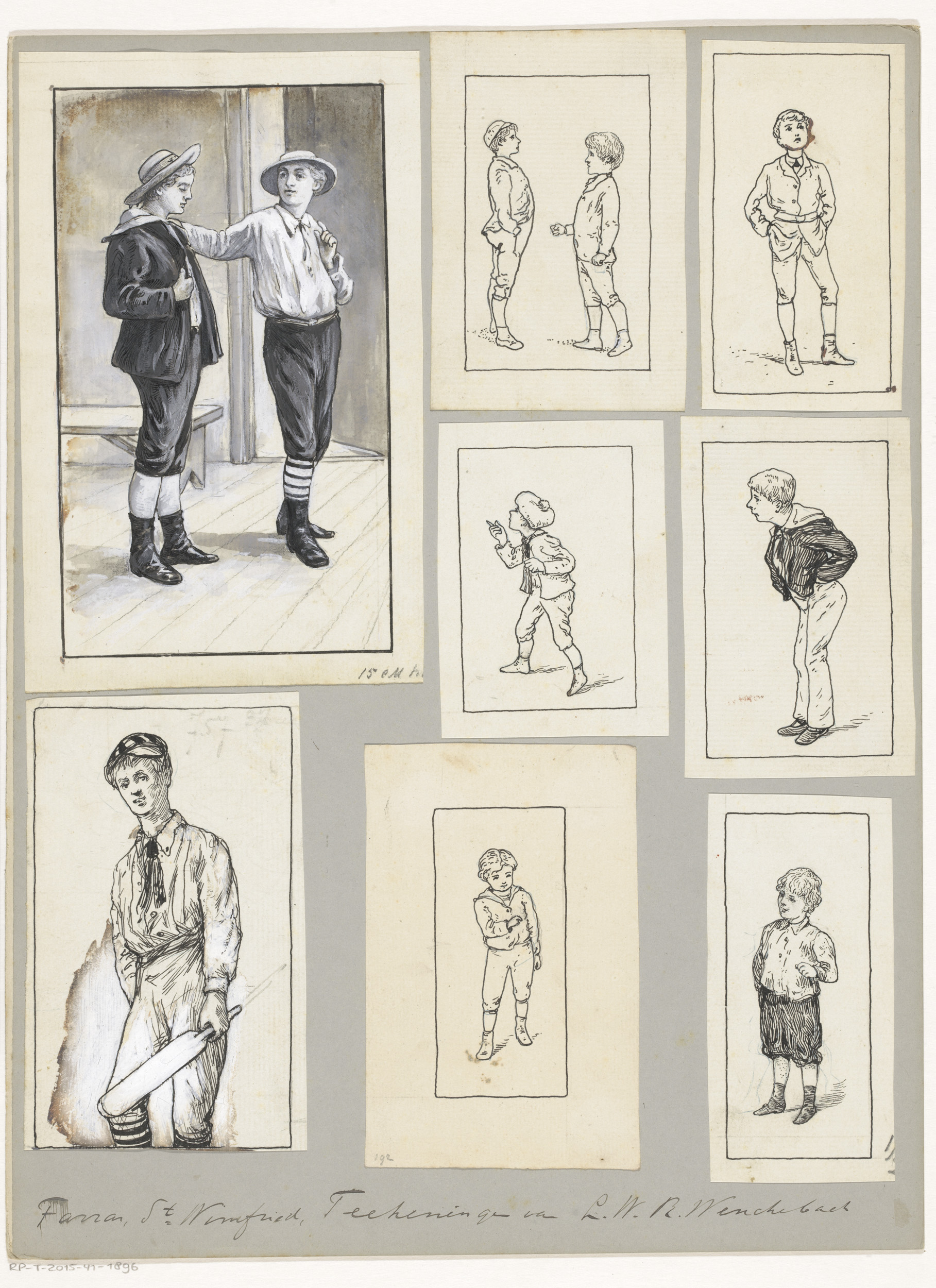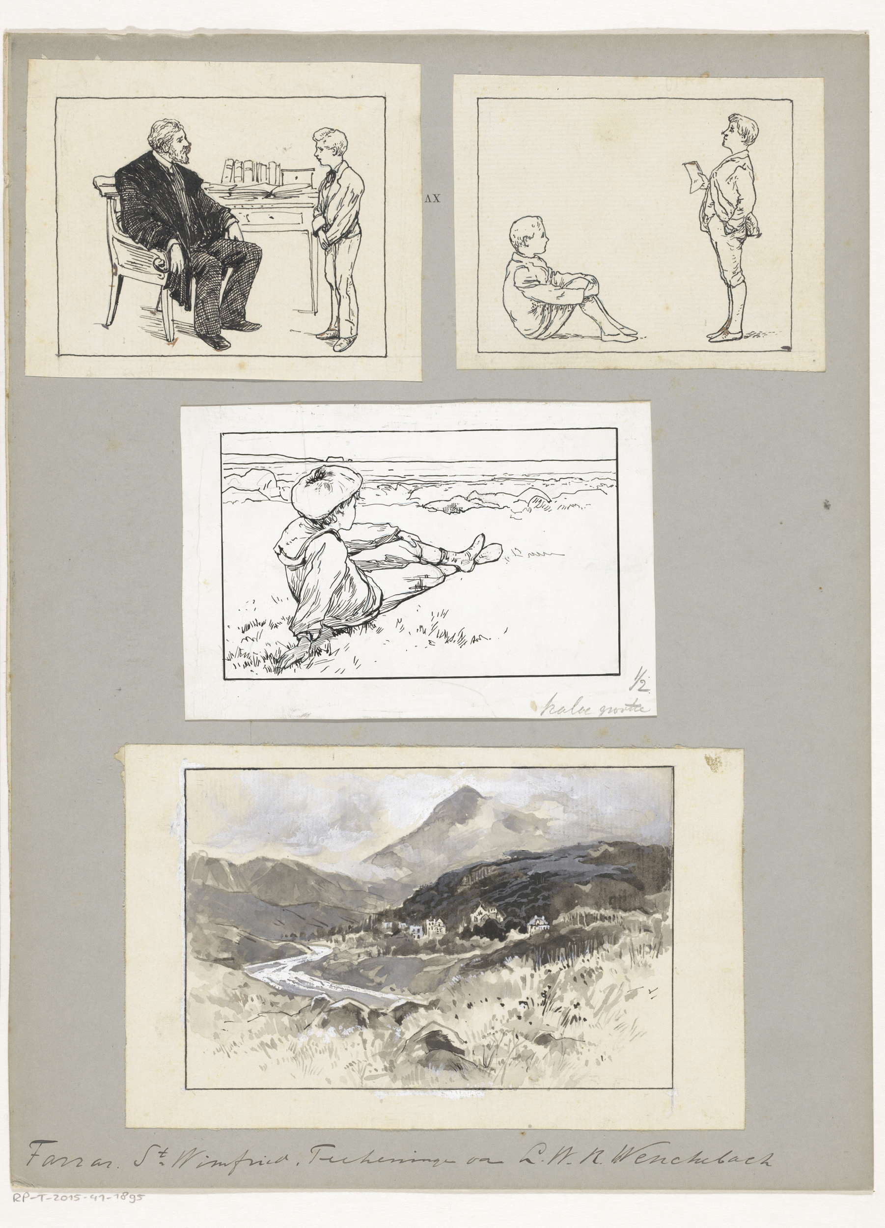 Ontwerpen voor een boekrug en illustraties voor: F.W...