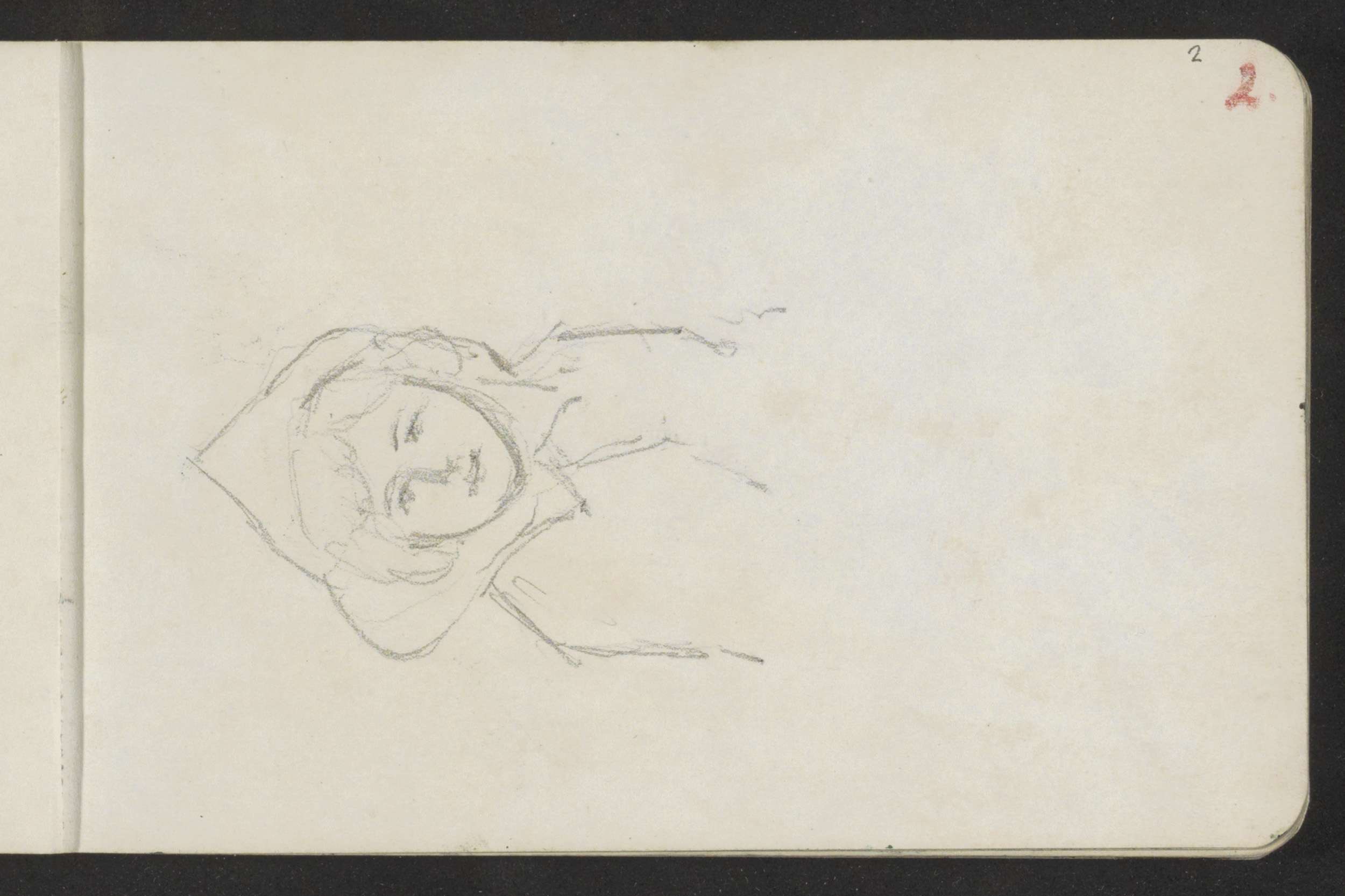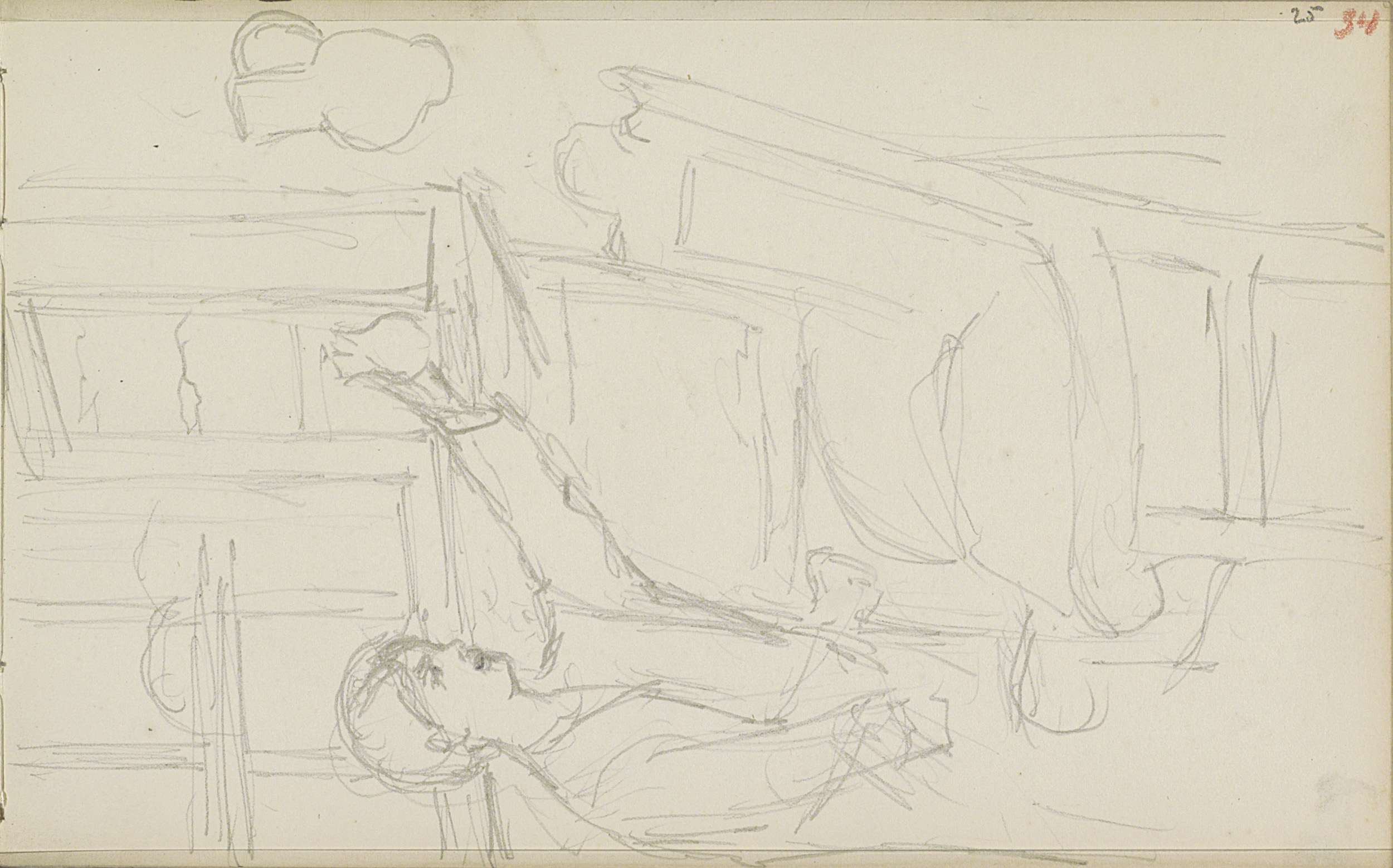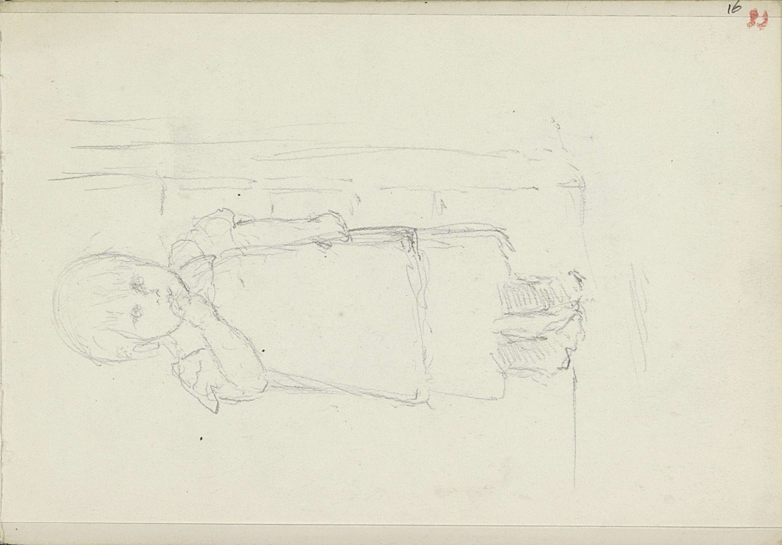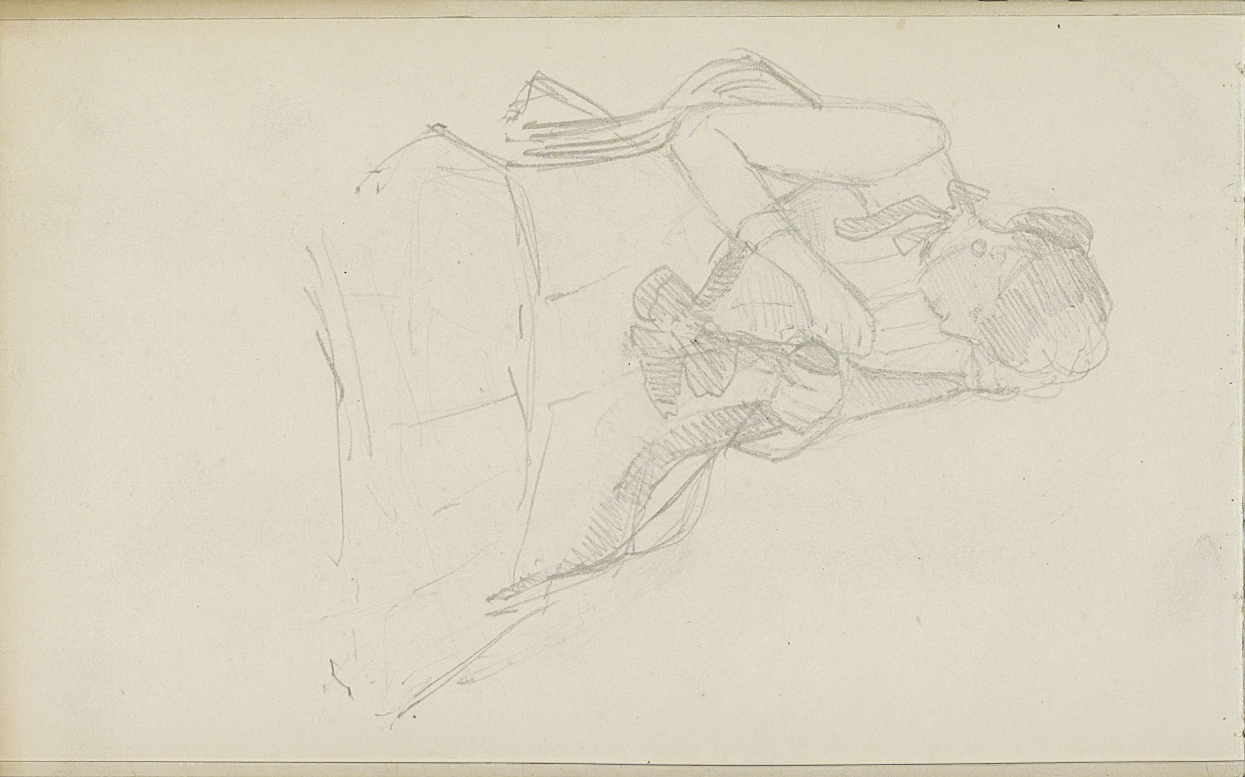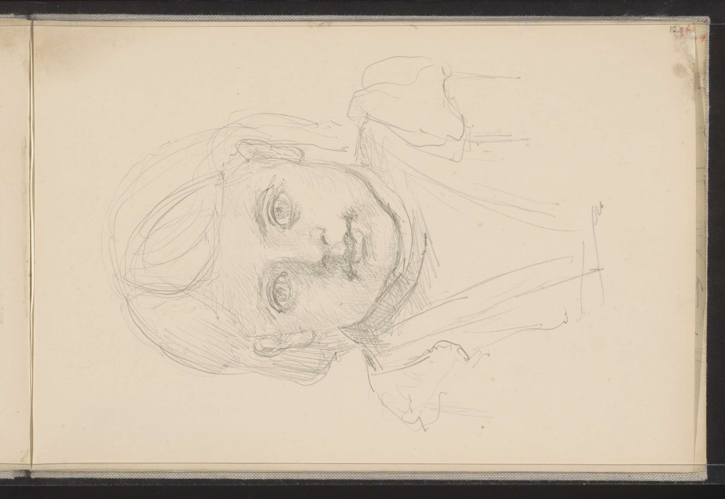 Meisje liggend met gebogen hoofd, vermoedelijk in ee...