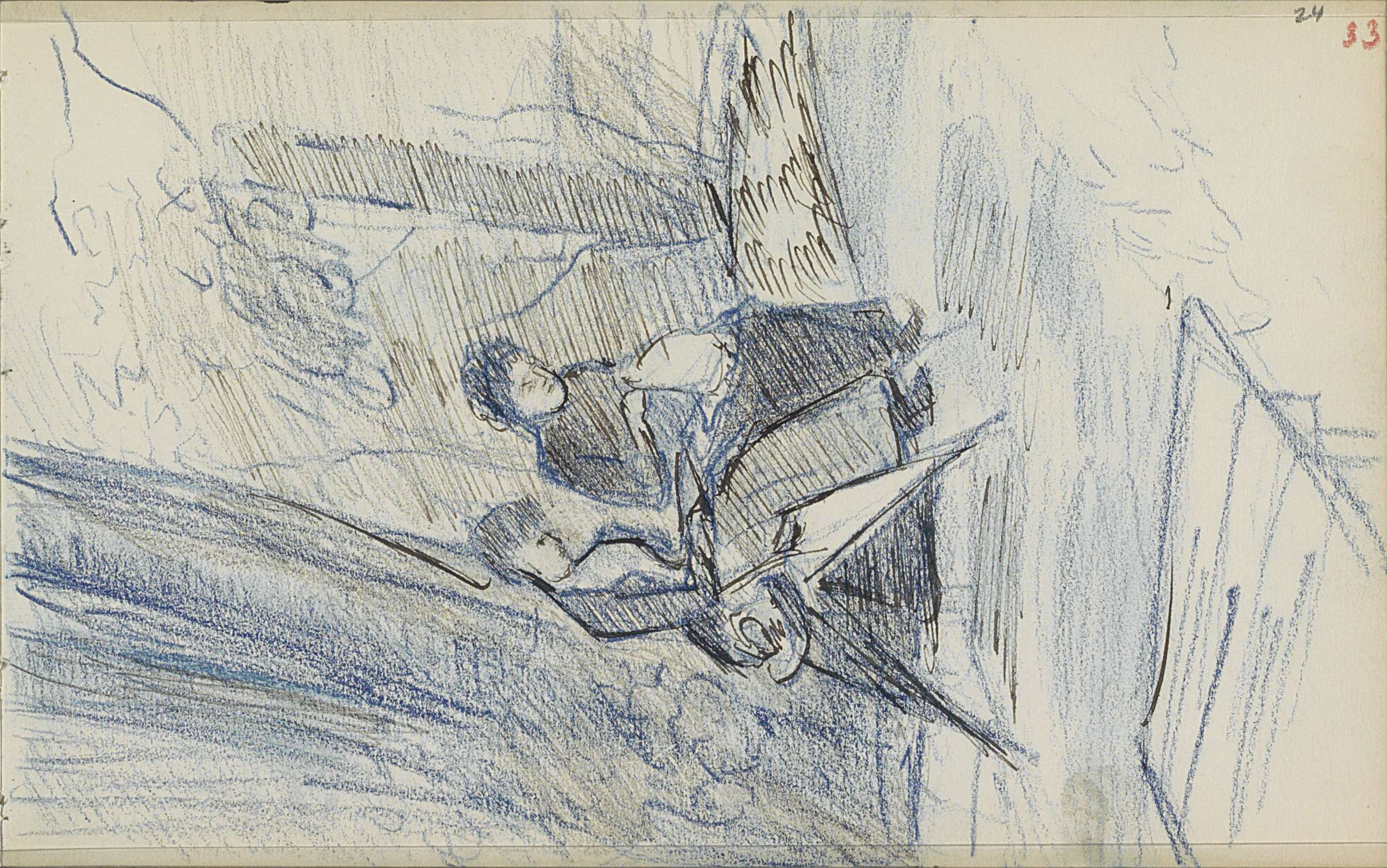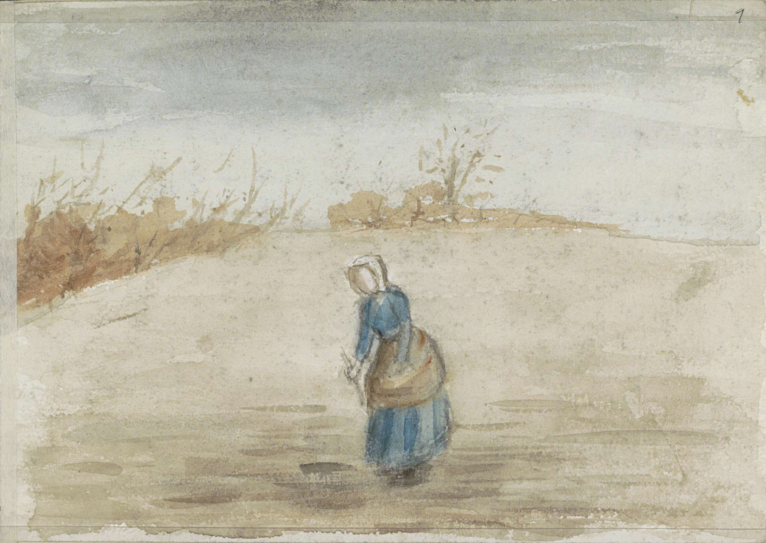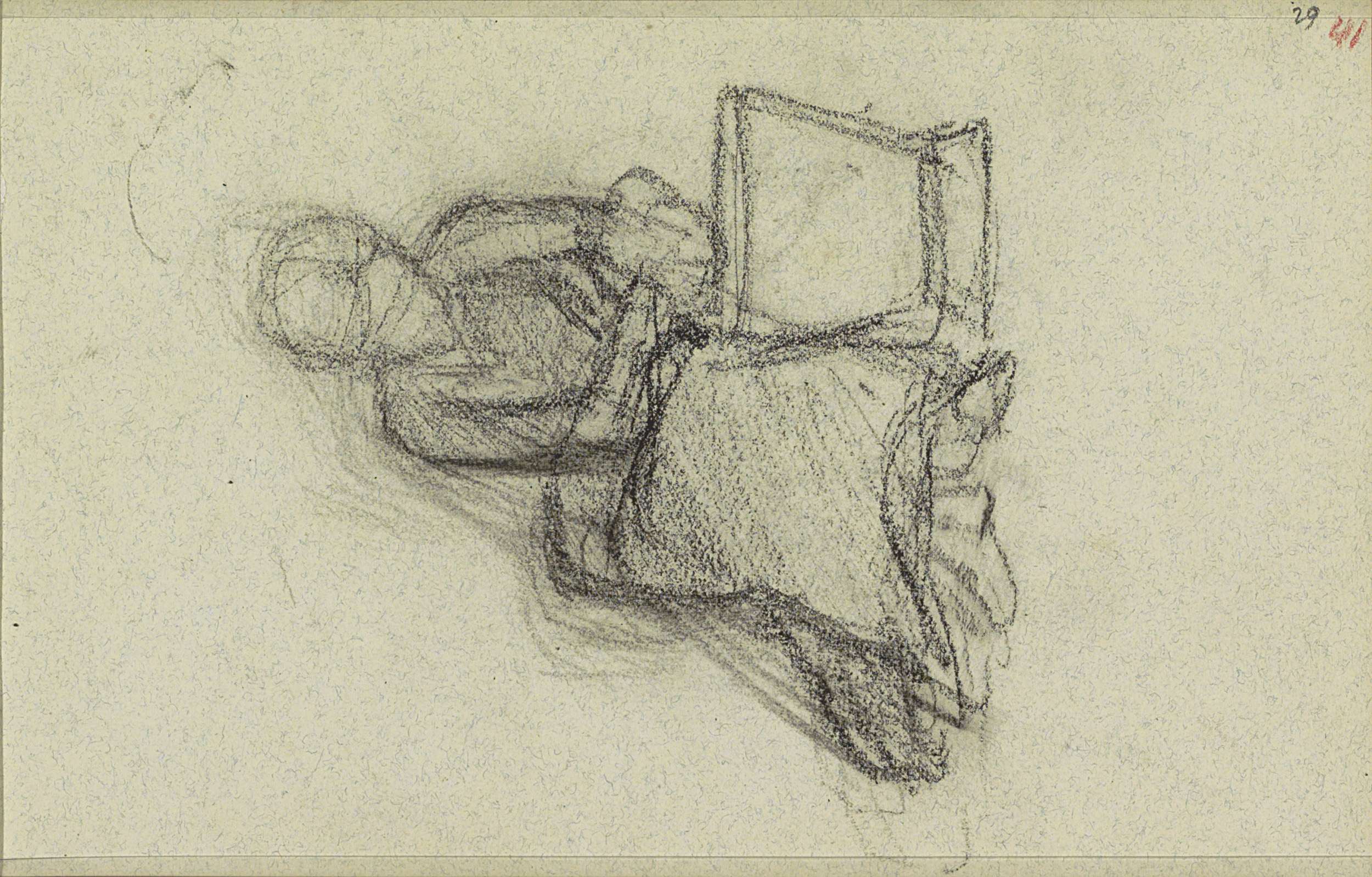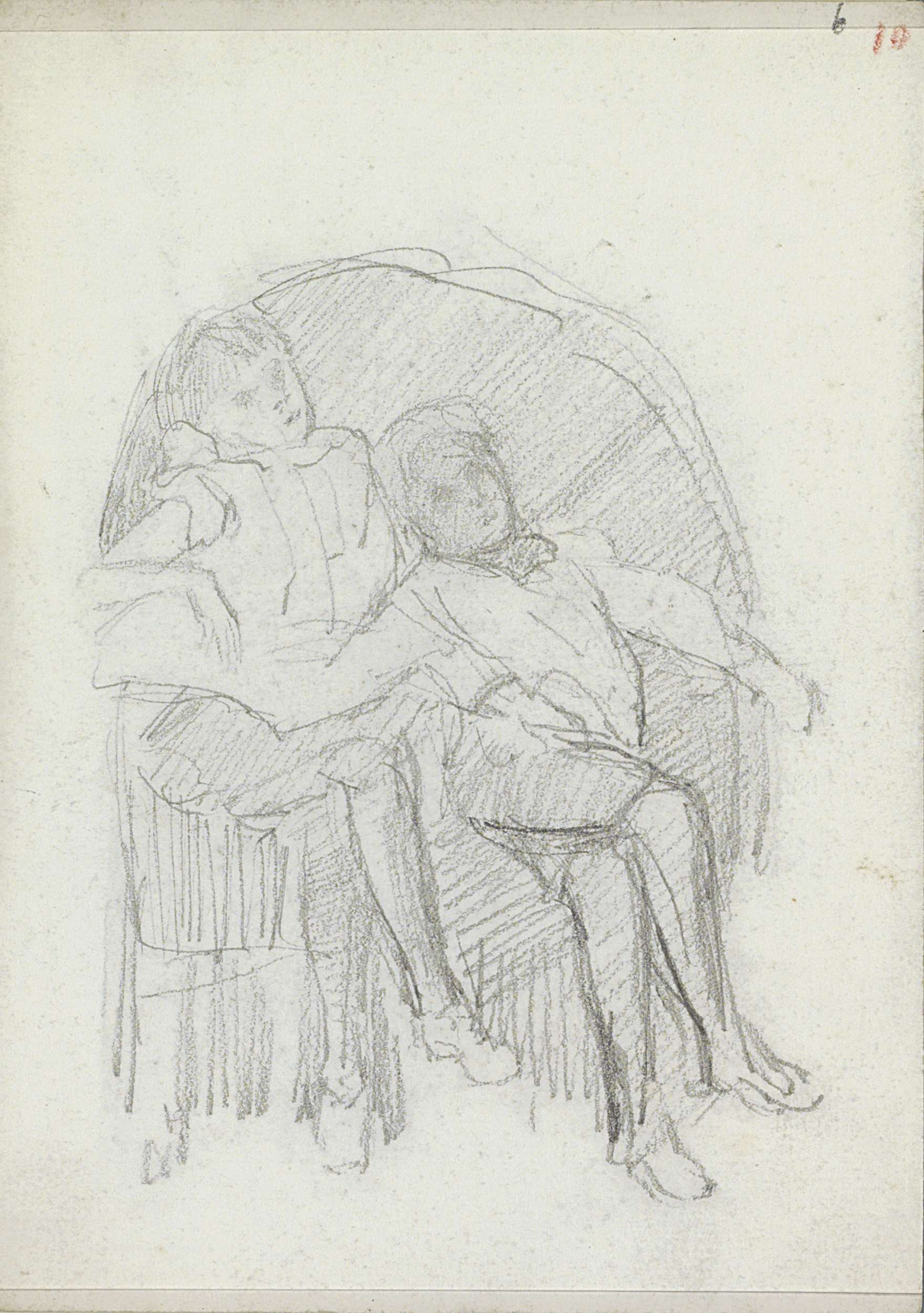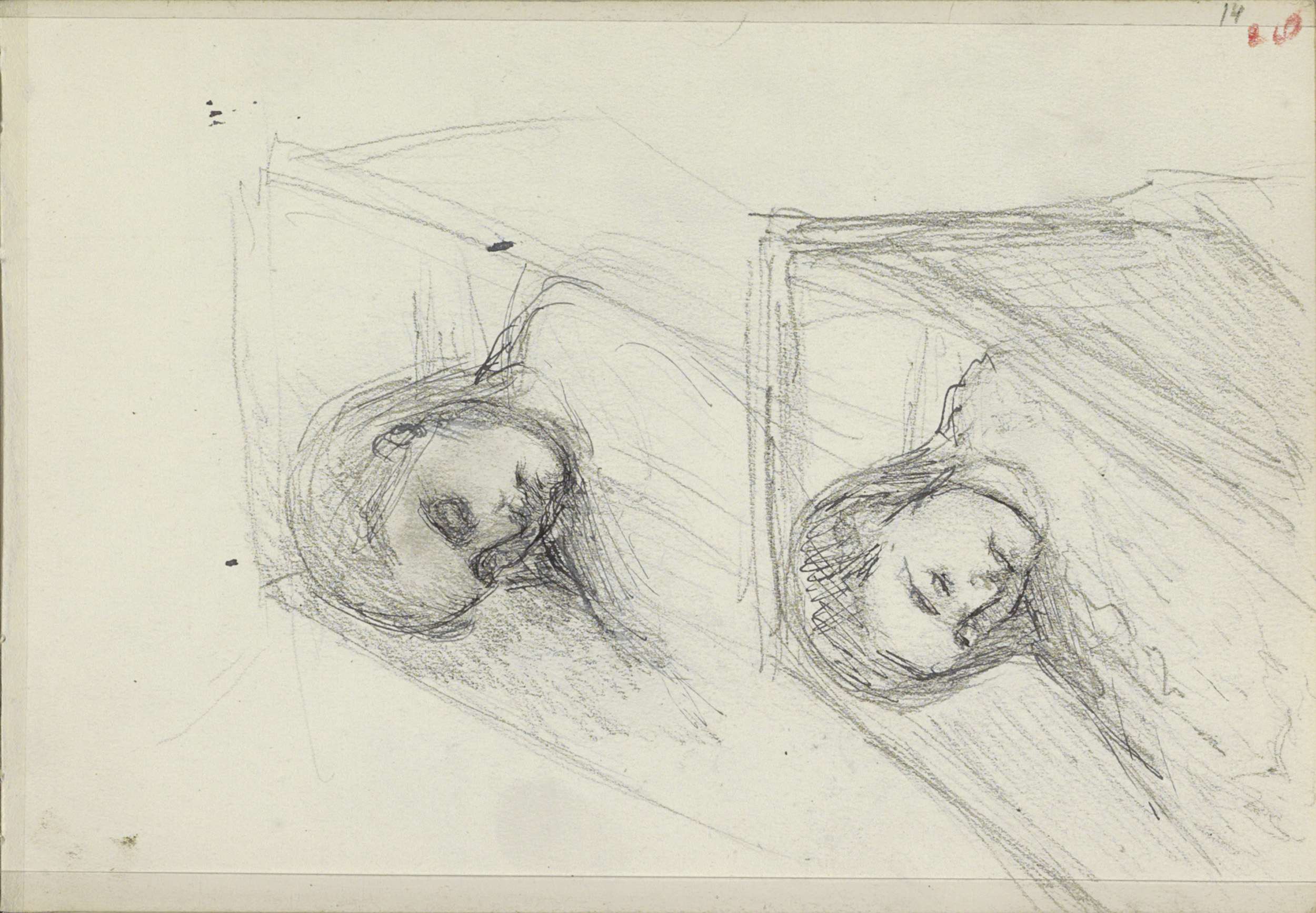 Meisje liggend met gebogen hoofd, vermoedelijk in ee...