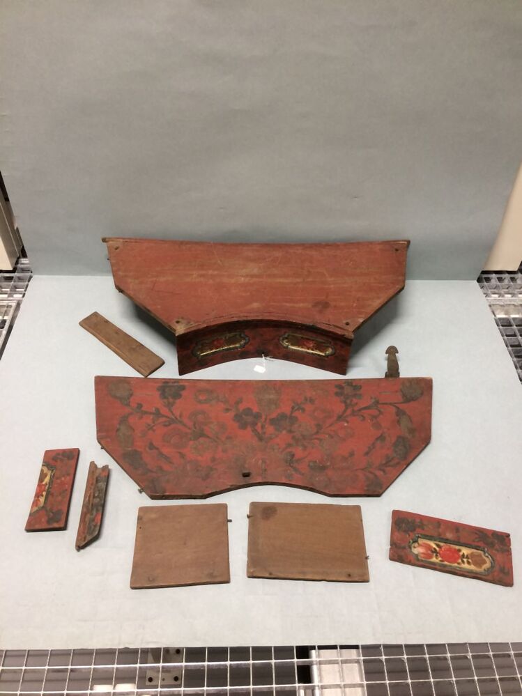 Geverfd eikenhouten sendoakkistje, in acht fragmenten