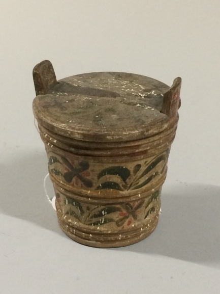 Grijsgroen geverfde budde met deksel