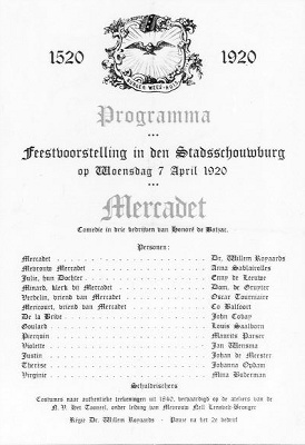 Programma van toneelvoorstelling t.g.v. het 400-jari...