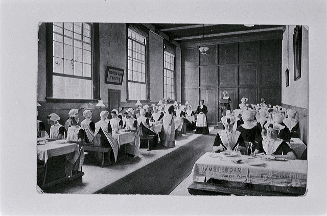 Prentbriefkaart van het Burgerweeshuis - 'Eetzaal me...