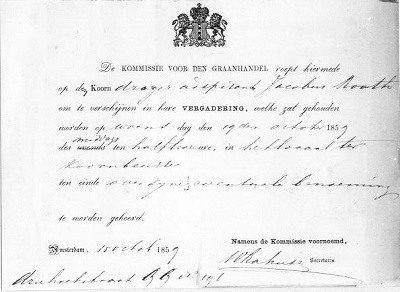 Oproep Jacobus Rooth i.v.m. aanstelling tot koorndrager
