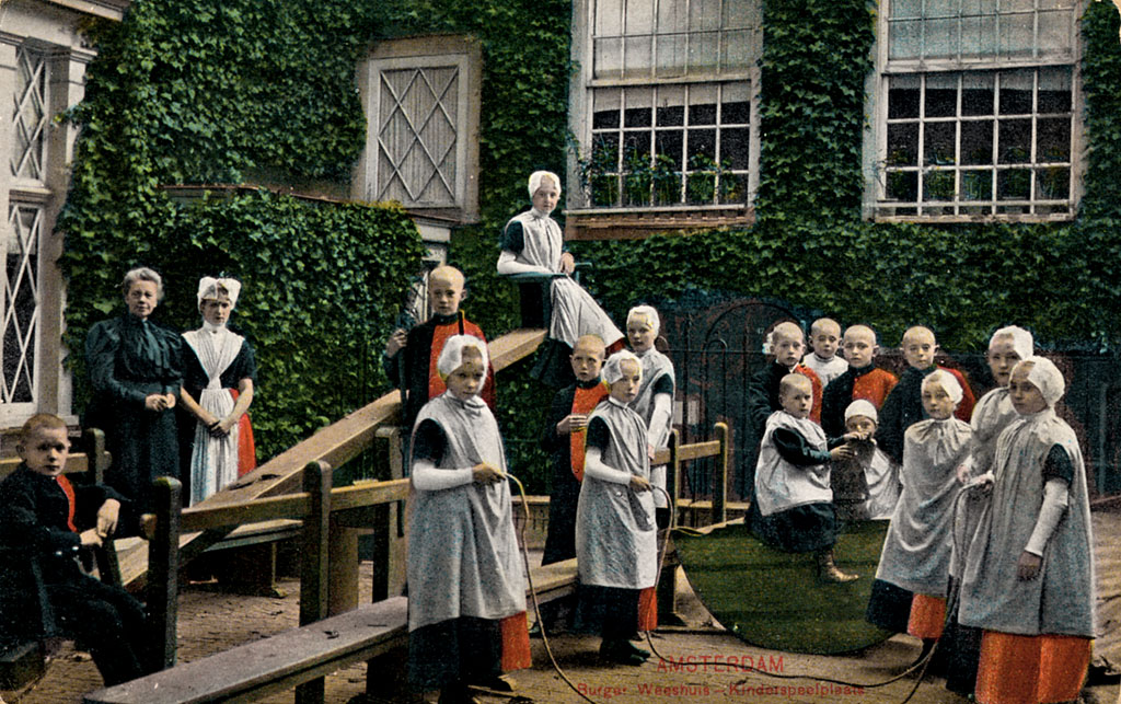 Prentbriefkaart van het Burgerweeshuis - 'Kinderspee...