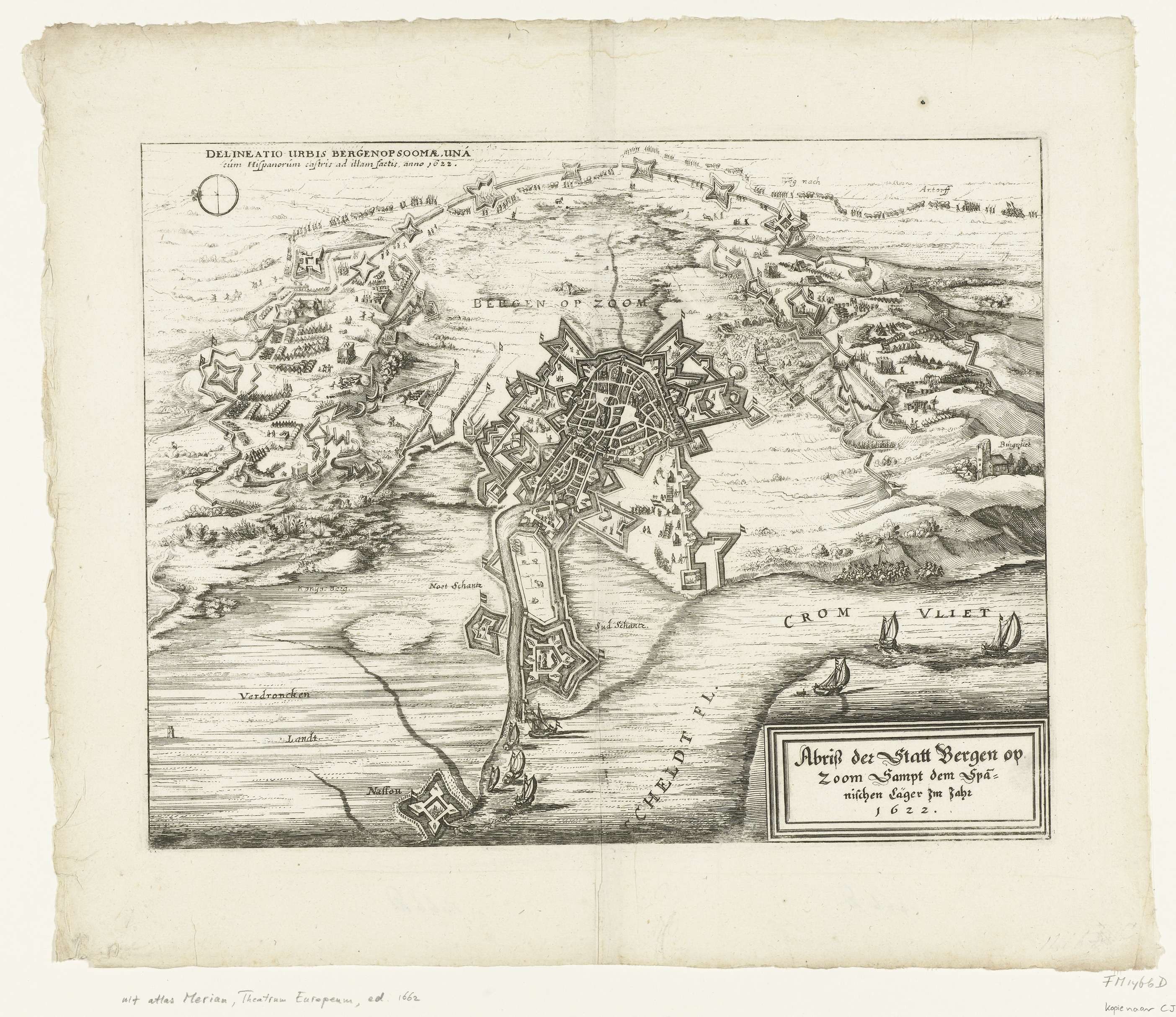 Kaart van het beleg van Bergen op Zoom, 1622