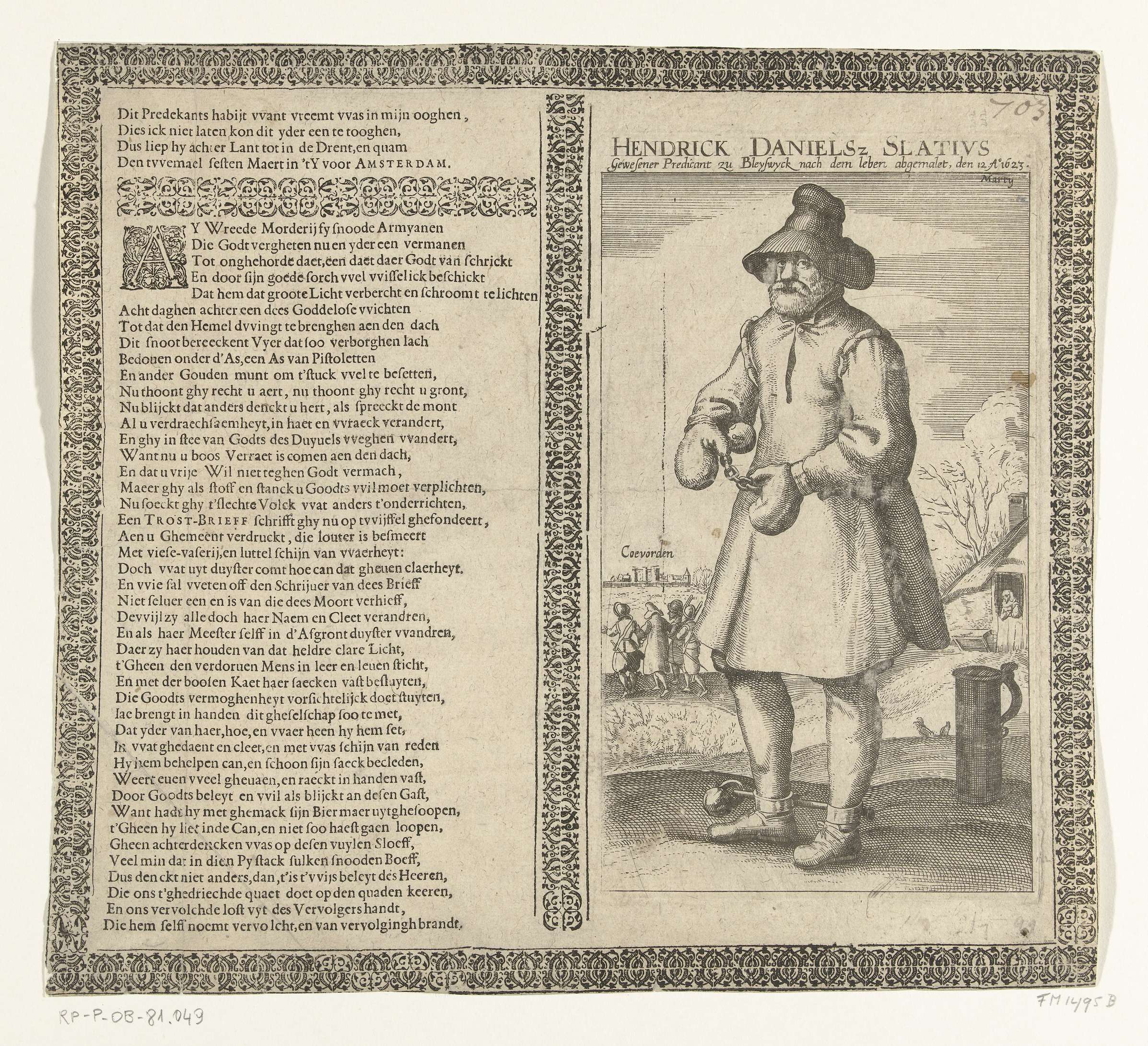 Henricus Slatius, met hand- en voetboeien, 1623