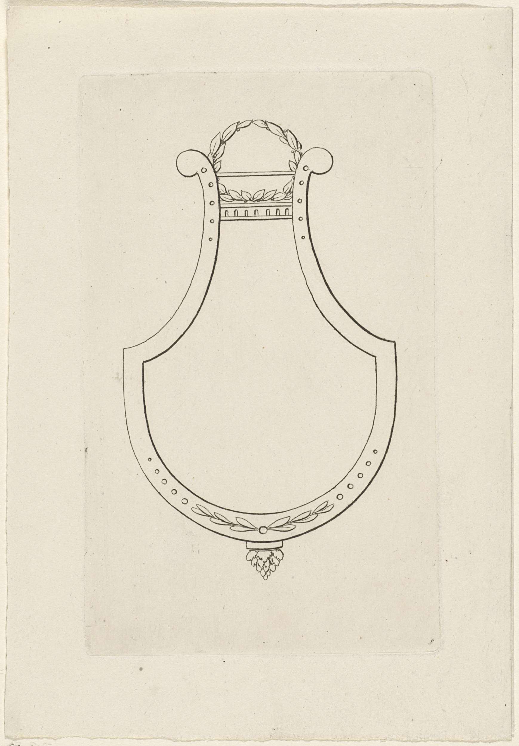 Cartouche in landschap met piramide
