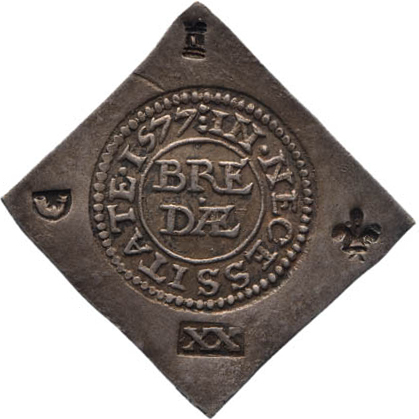 Stuiver (noodmunt) uit Maastricht, tijdens de belege...