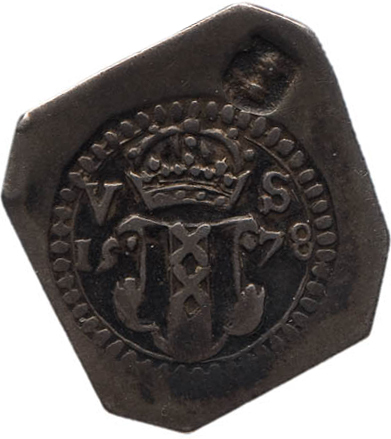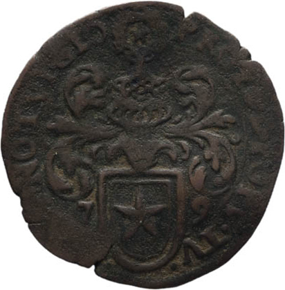 Halve stuiver (noodmunt) [vervalsing] uit Woerden