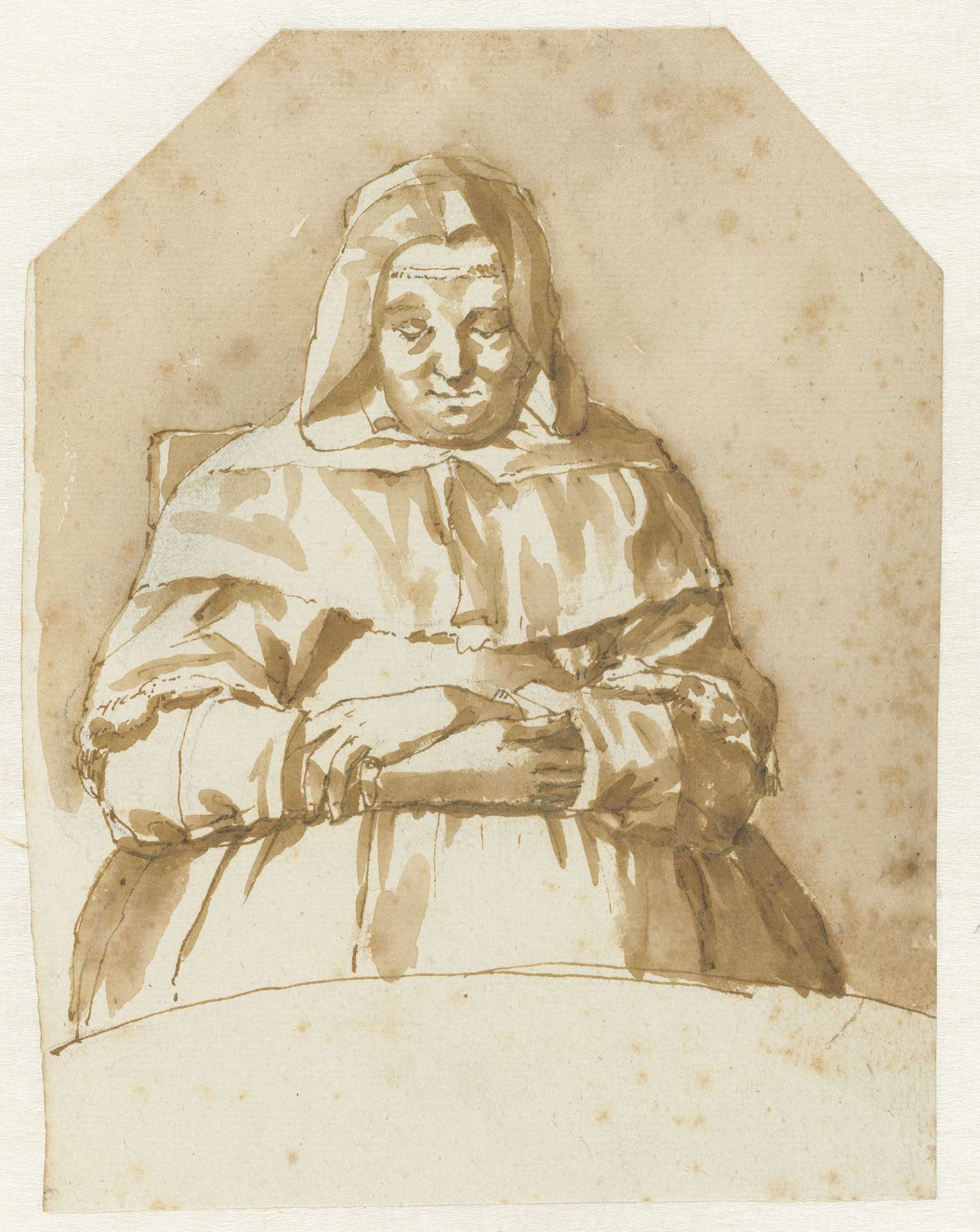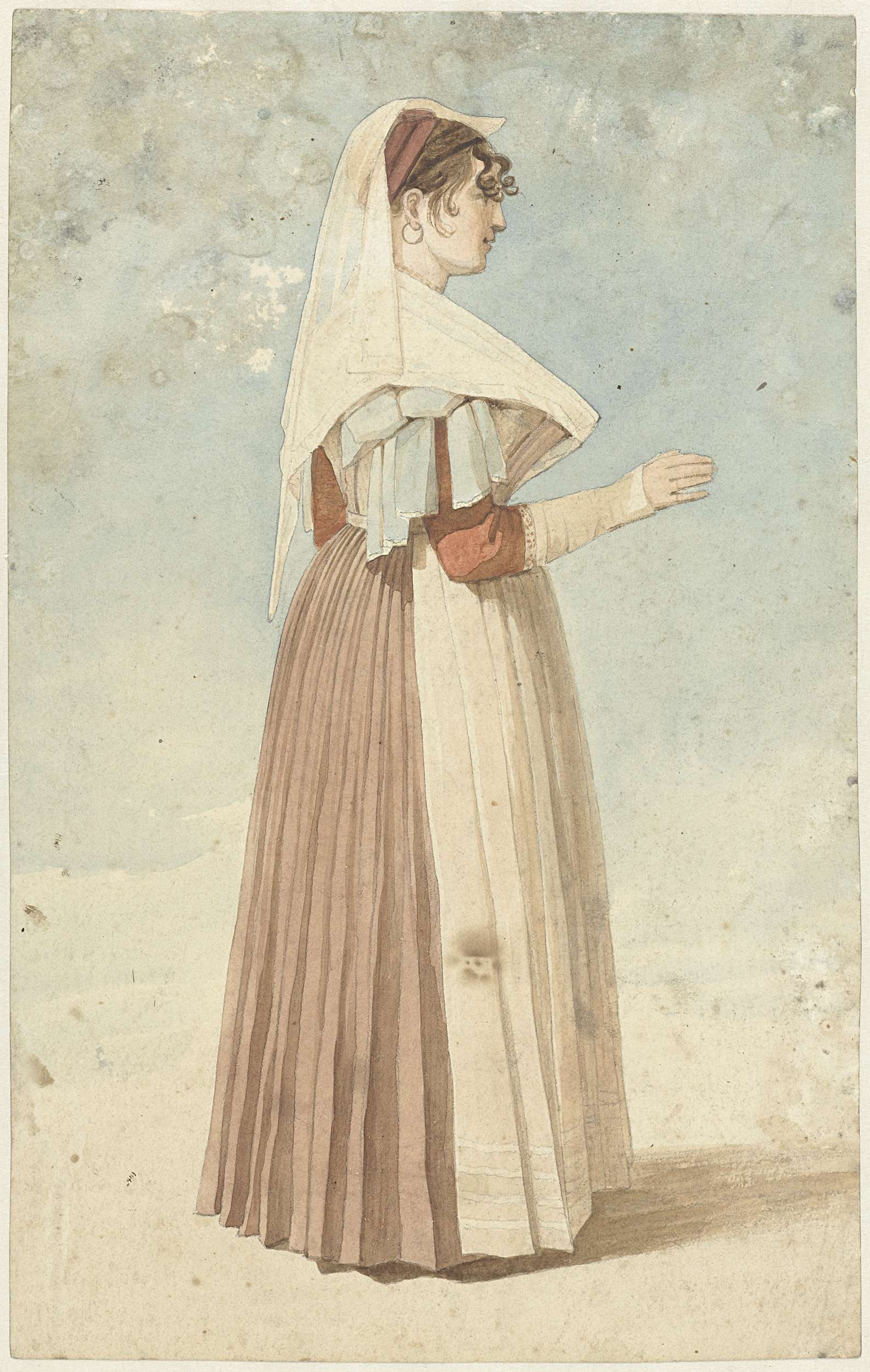 Staande vrouw in Italiaanse klederdracht, naar rechts